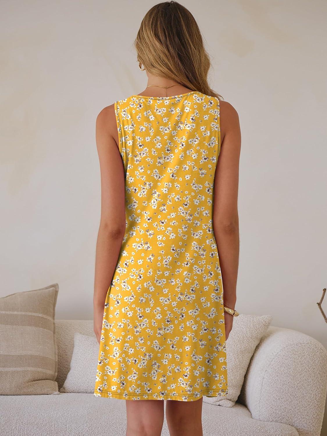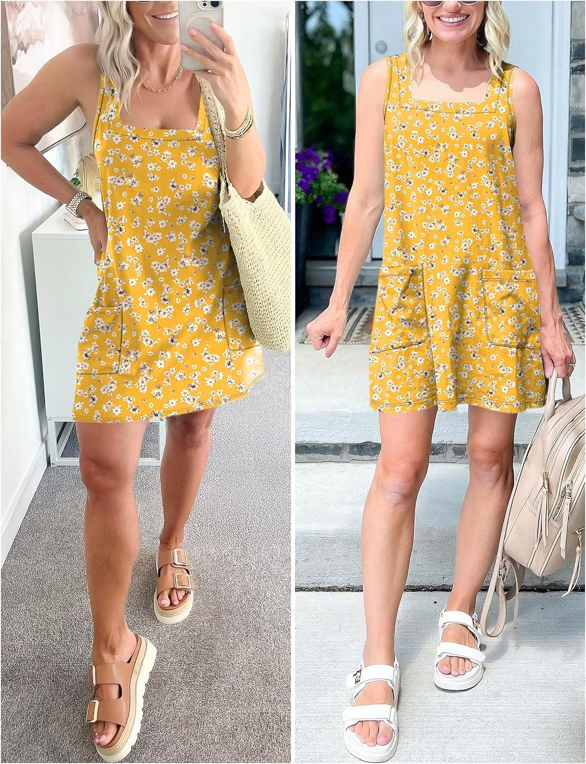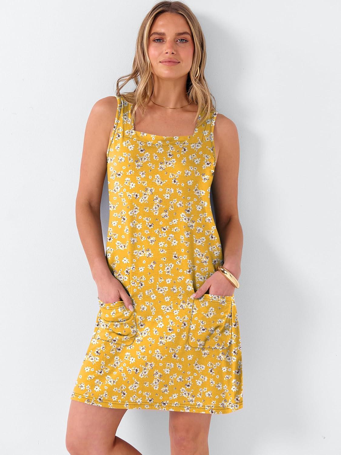 ANRABESS Womens Summer Tank Dress Square Neck Sleeveless Mini Sundress with Pocket 2026 Casual Floral Beach Vacation Outfits(Floral Yellow Red)
