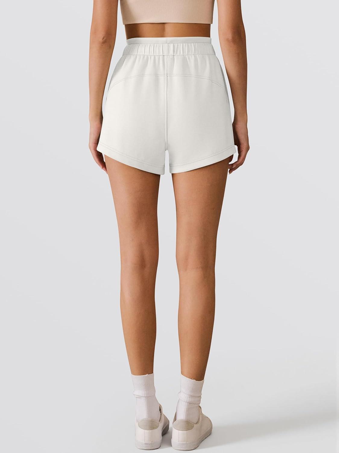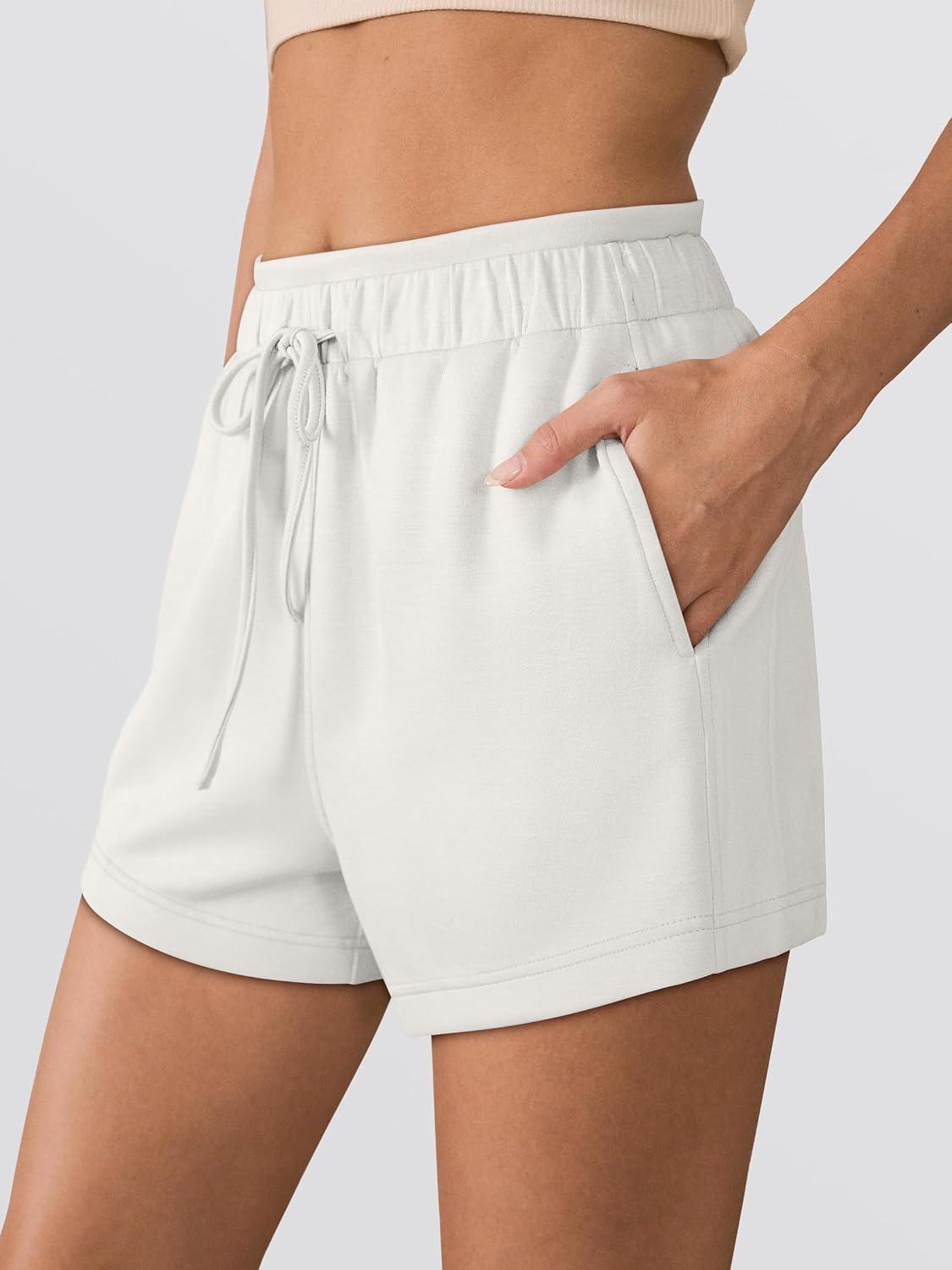 ANRABESS Womens Sweat Shorts 2026 Summer Workout Running Casual Soft High Waist Drawstring Lounge Shorts with Pockets(White)