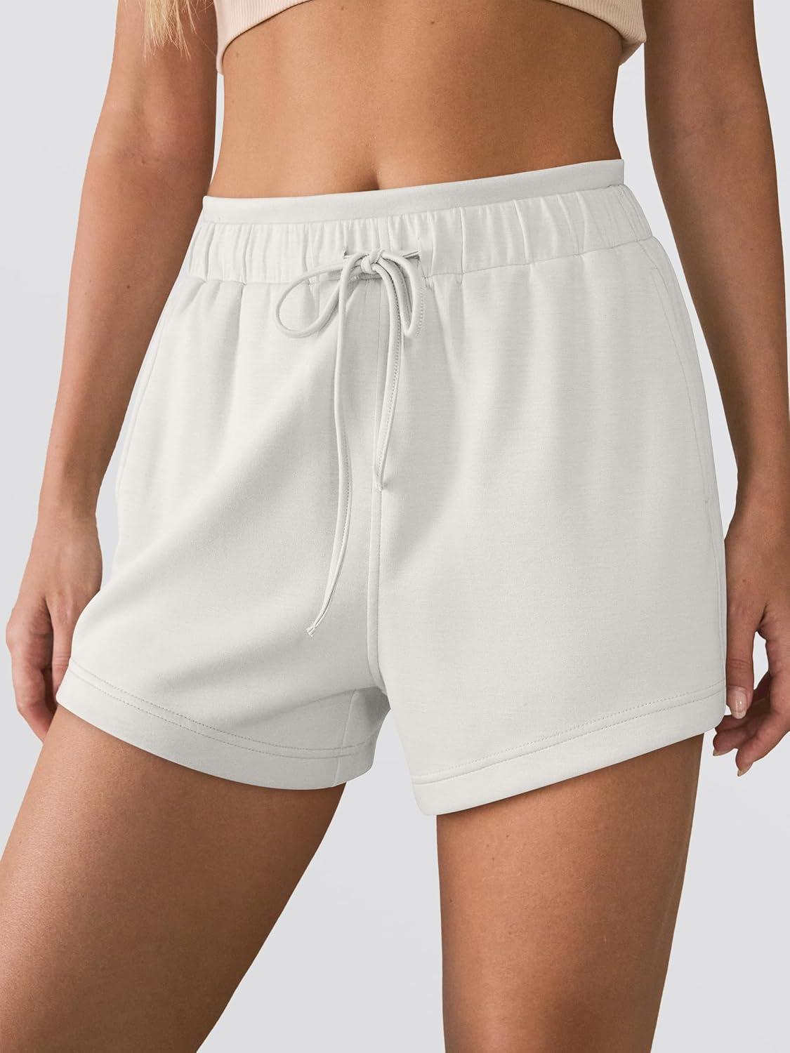 imageANRABESS Womens Sweat Shorts 2026 Summer Workout Running Casual Soft High Waist Drawstring Lounge Shorts with PocketsWhite