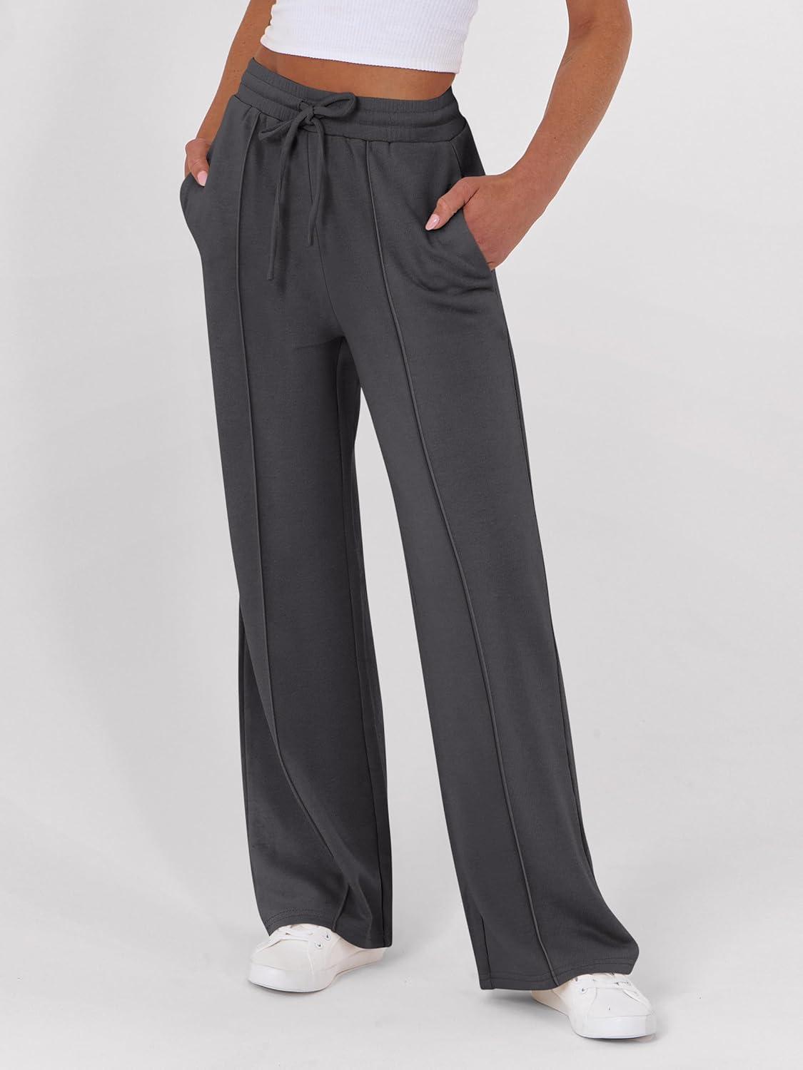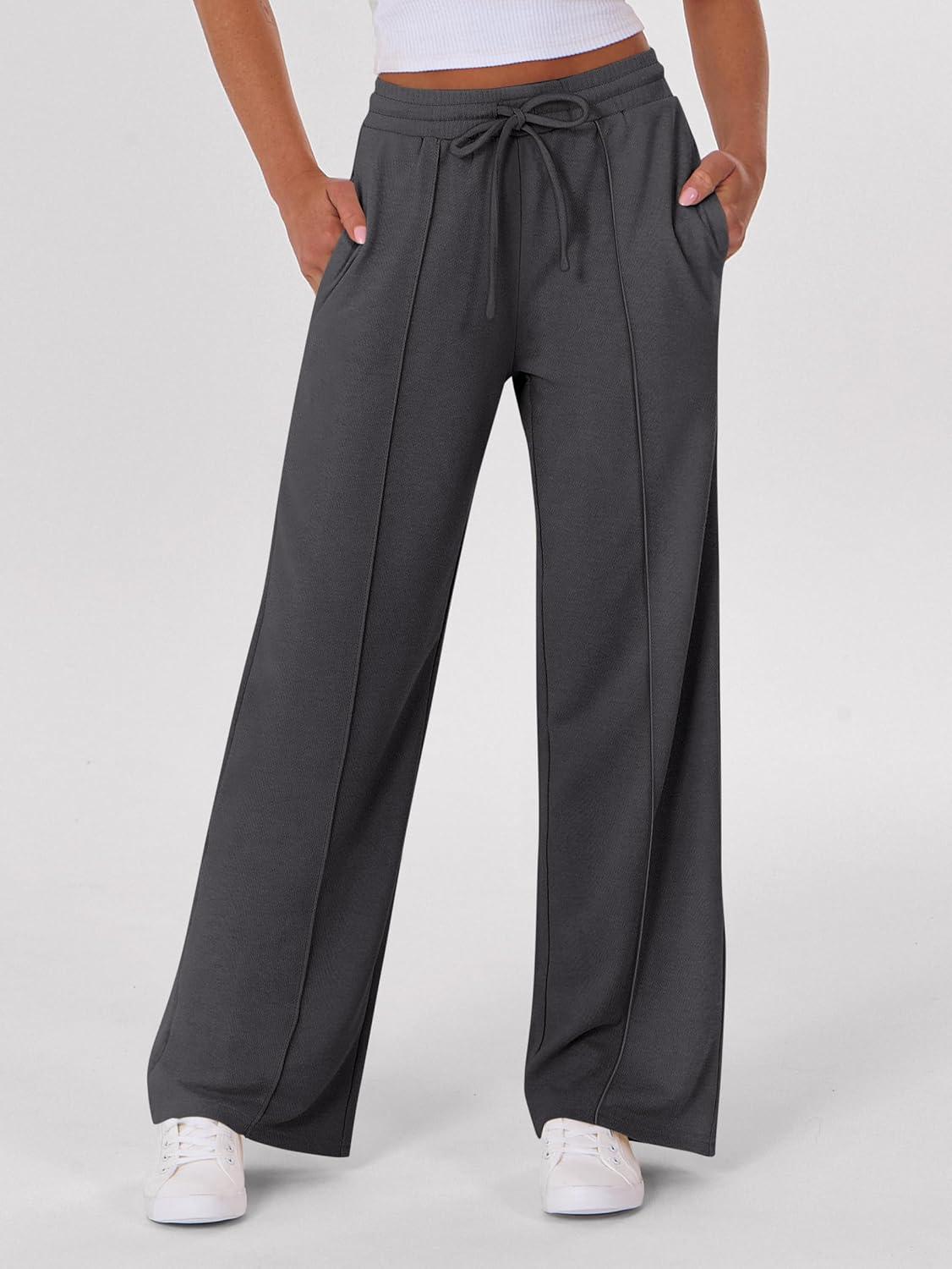 ANRABESS Womens Sweatpants Wide Leg Casual Loose Baggy Lounge Travel Pants 2025 Fall Drawstring Joggers with Pockets(Deep Gray)