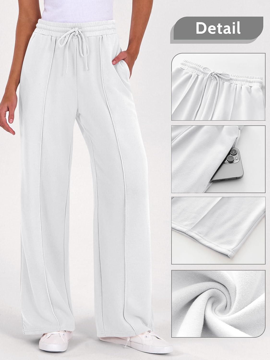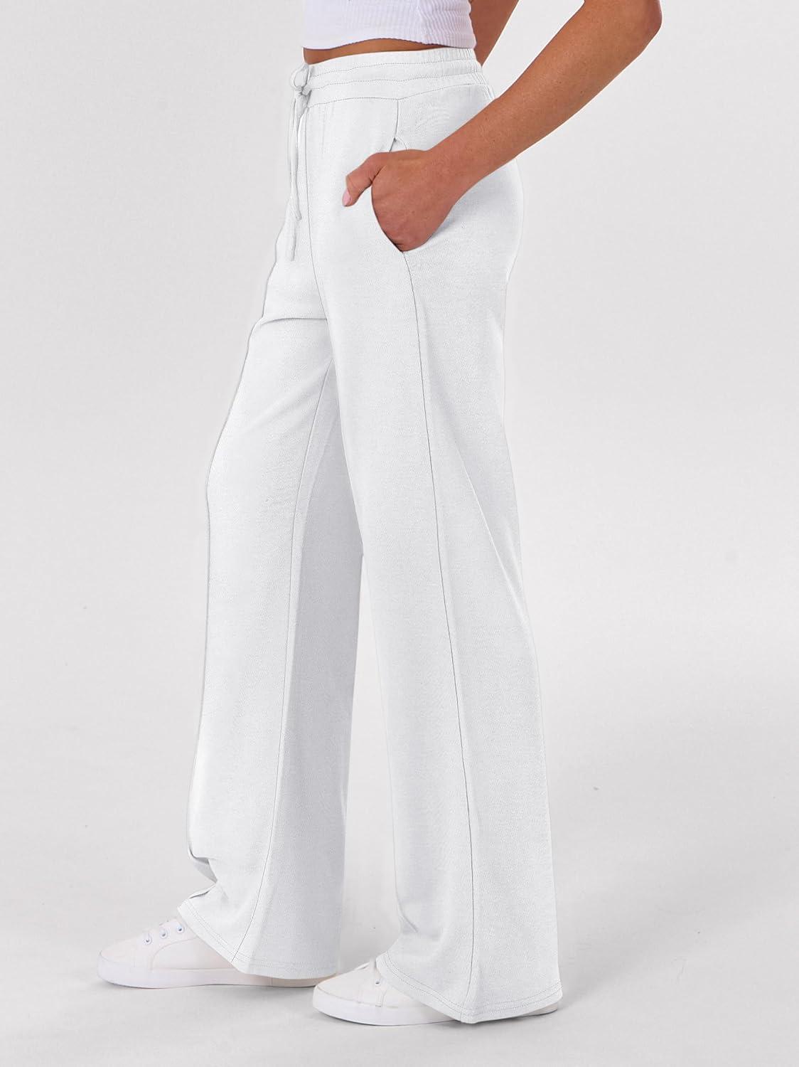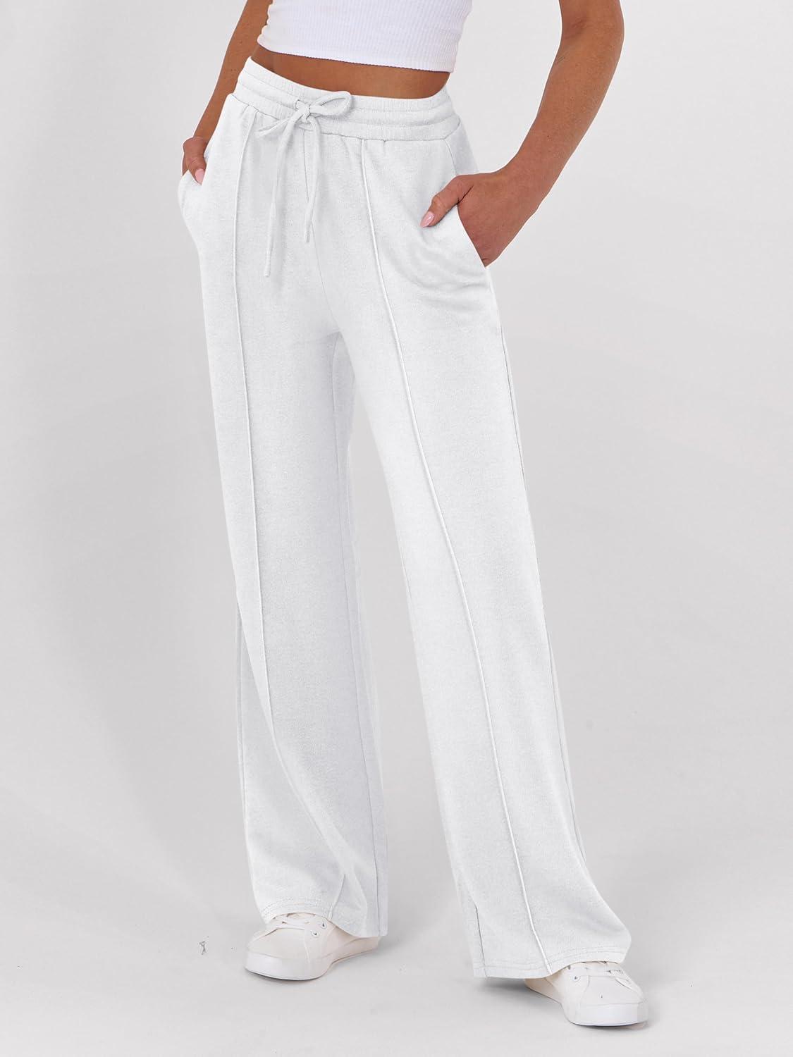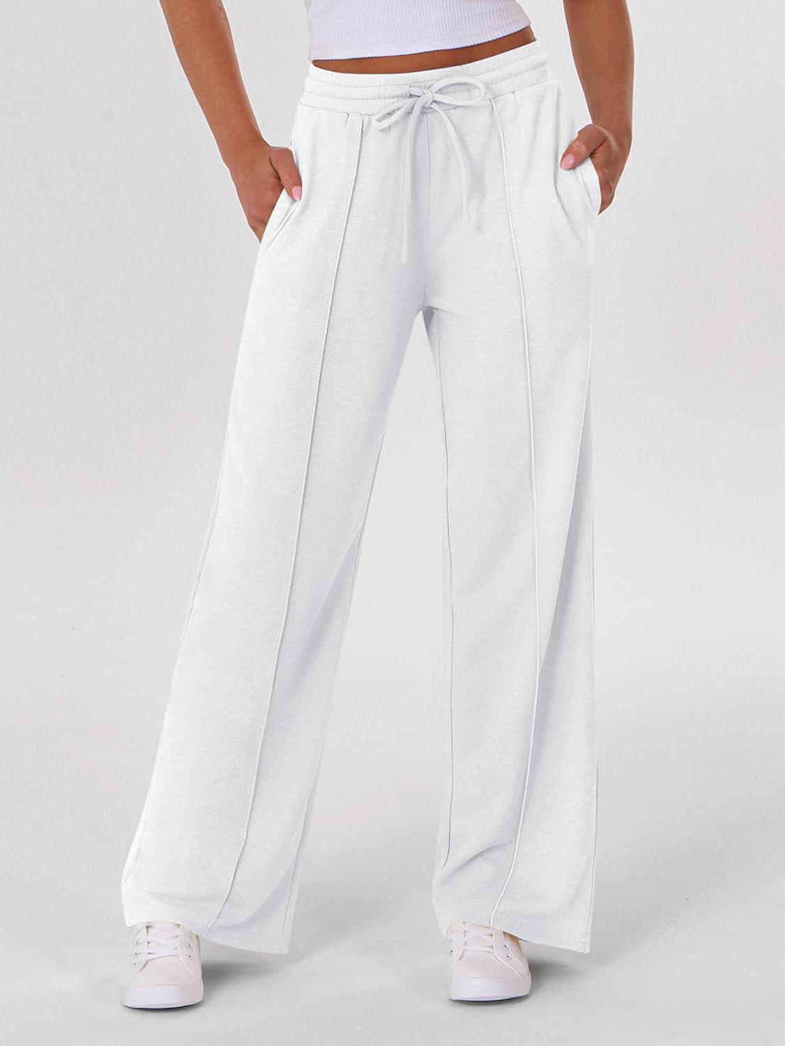 ANRABESS Womens Sweatpants Wide Leg Casual Loose Baggy Lounge Travel Pants 2025 Fall Drawstring Joggers with Pockets(White)