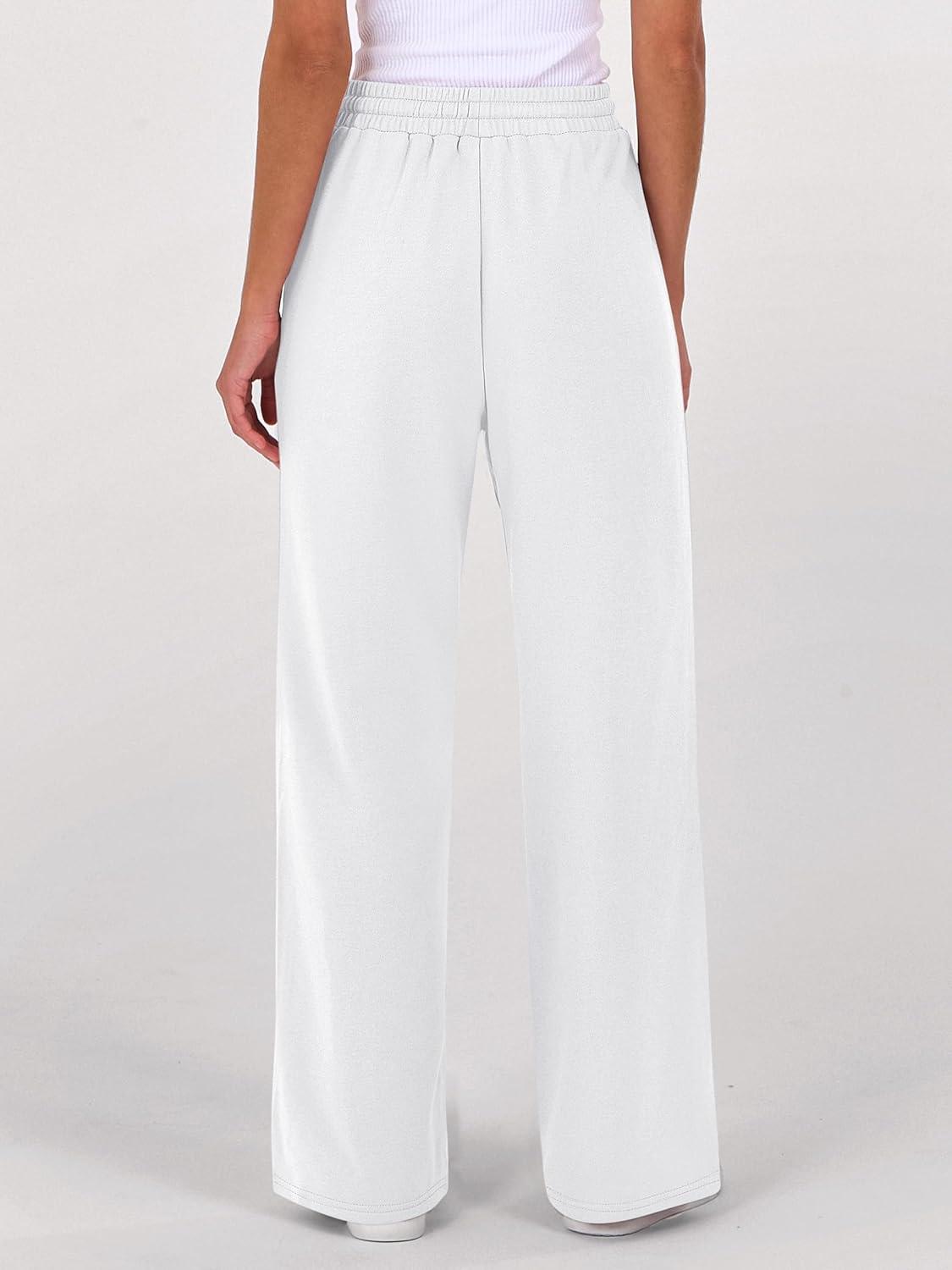 imageANRABESS Womens Sweatpants Wide Leg Casual Loose Baggy Lounge Travel Pants 2025 Fall Drawstring Joggers with PocketsWhite