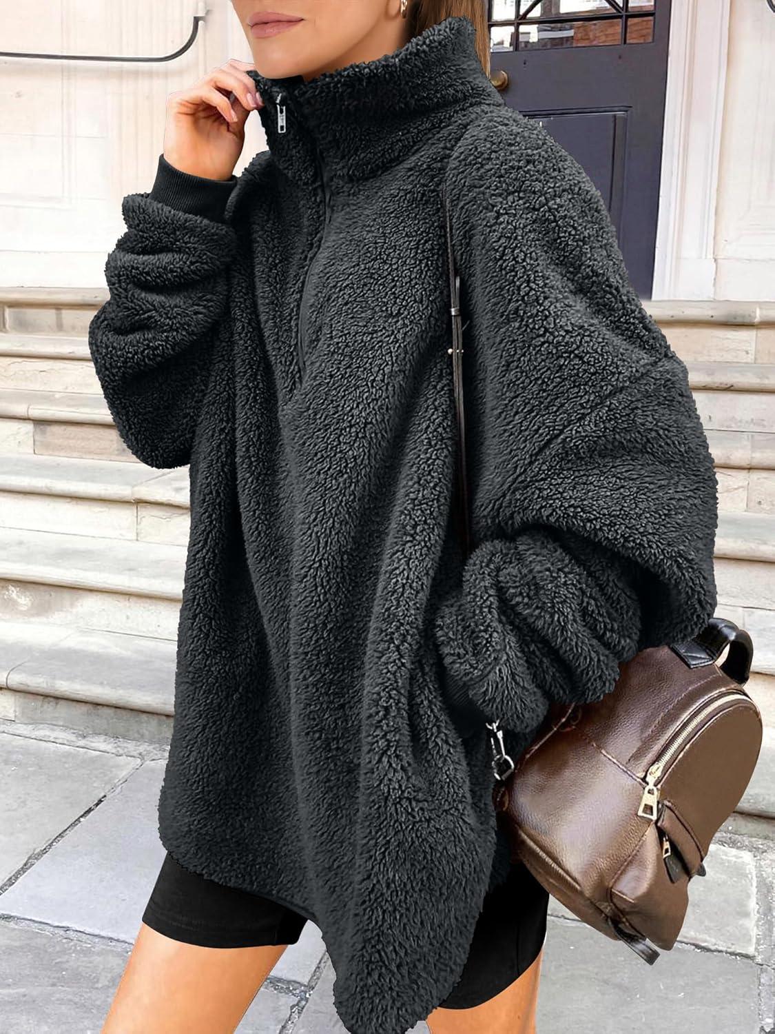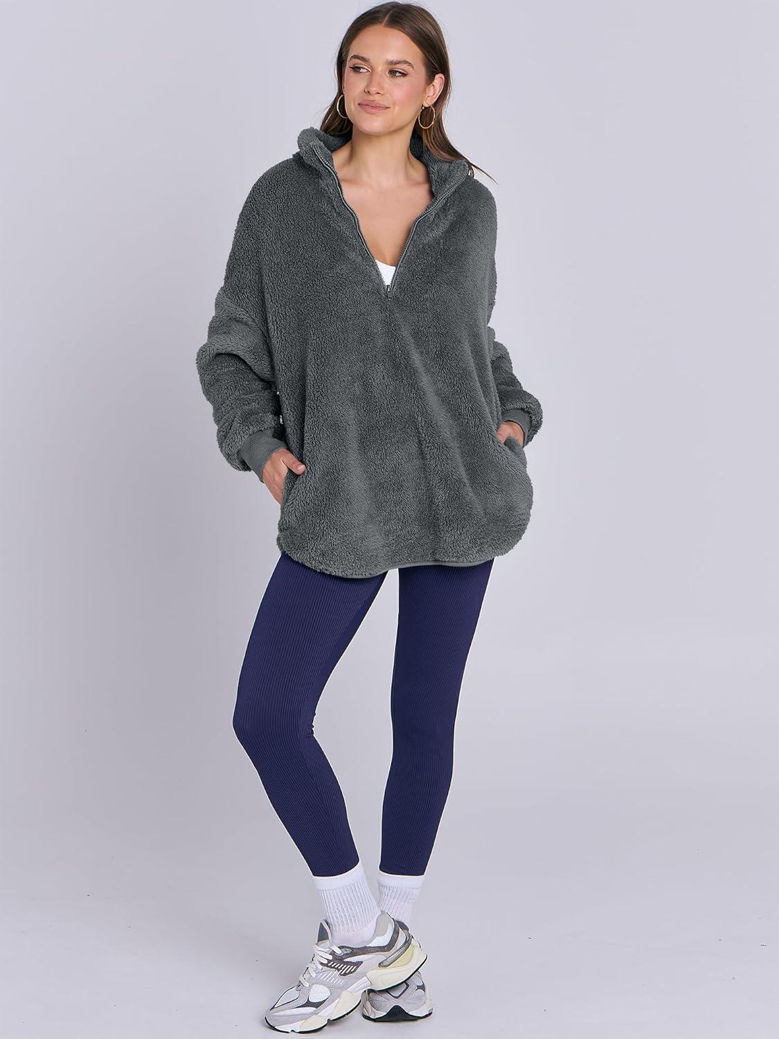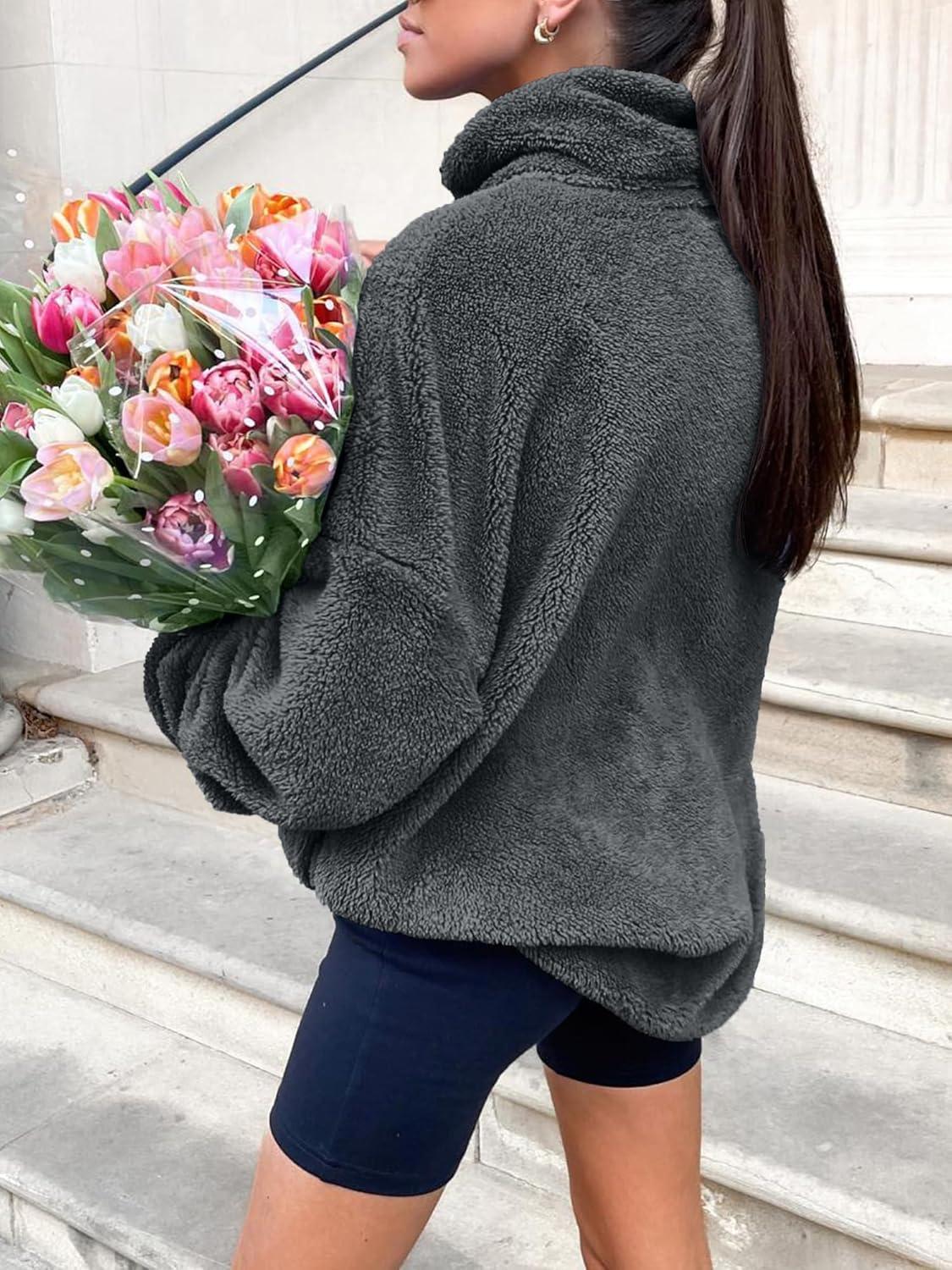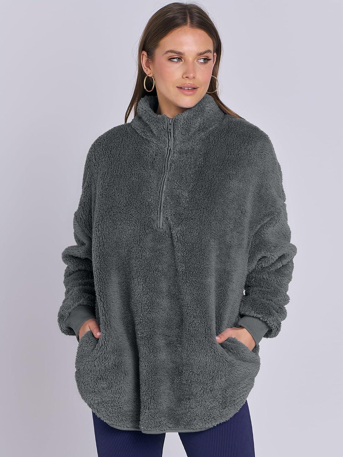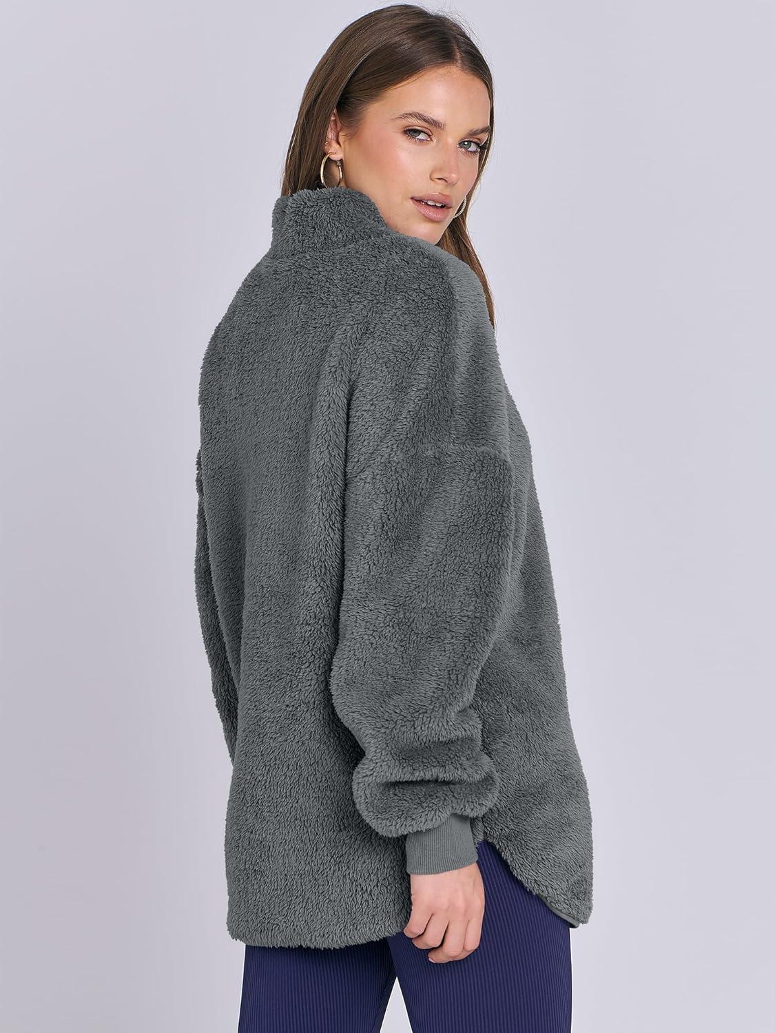 ANRABESS Women's Sweatshirt Sherpa Fuzzy Fleece Zip Up Hoodies Cozy Pullover Soft Sweaters Tops 2025 Fall Trendy Clothes(Deep Grey)