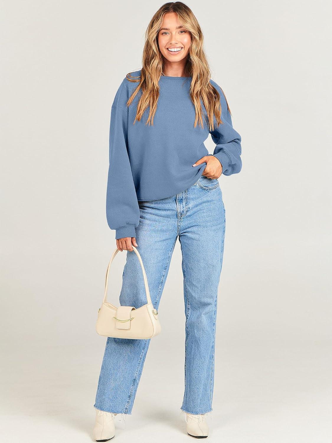 ANRABESS Womens Sweatshirts Crewneck Fleece Oversized Pullover Sweaters Fall Winter Cute Tops Teen Girls Preppy Clothes 2025(Indigo Blue)