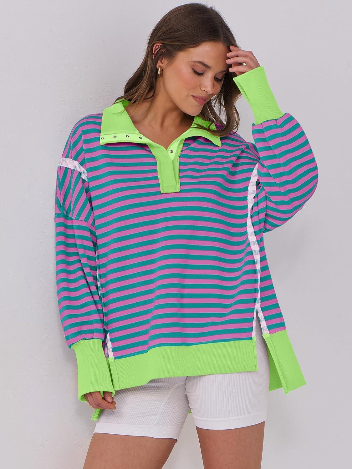 imageANRABESS Womens Sweatshirts Oversized Casual Loose Button Up Henley Pullover Top High Low Split 2025 Fall Fashion OutfitsPink Green