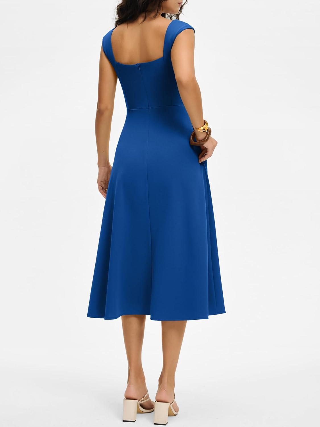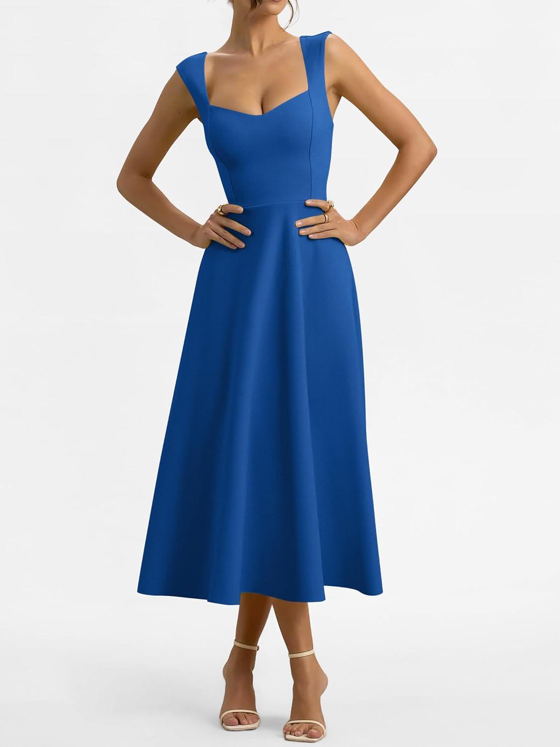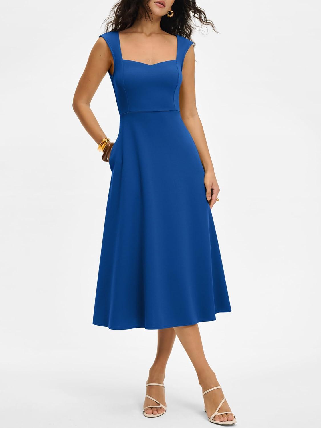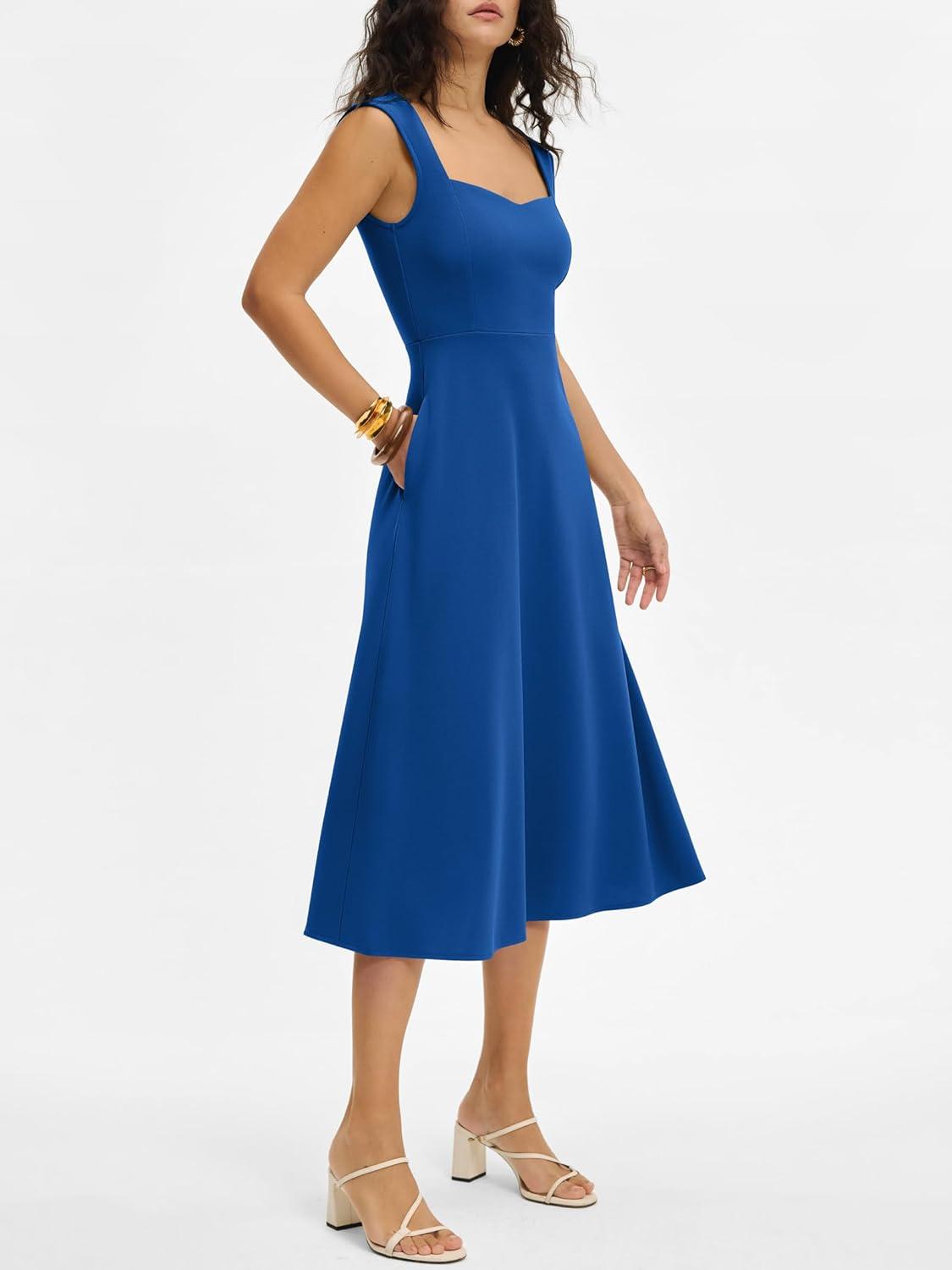 ANRABESS Womens Sweetheart Neck Sleeveless Midi Dress 2026 Summer Formal Wedding Guest Party Cocktail Dresses with Pockets(Blue)