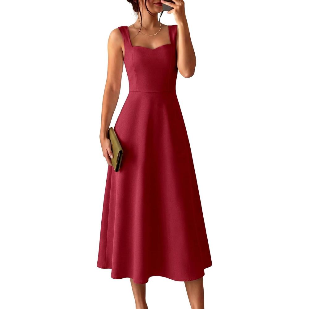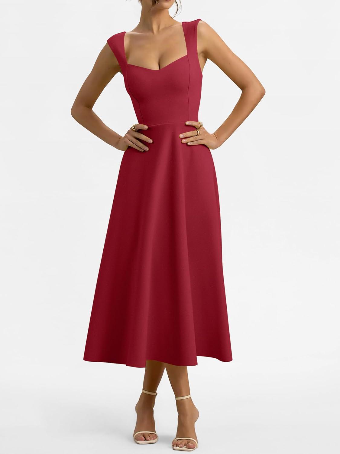 Be the first to review “ANRABESS Womens Sweetheart Neck Sleeveless Midi Dress 2026 Summer Formal Wedding Guest Party Cocktail Dresses with Pockets(Red)”