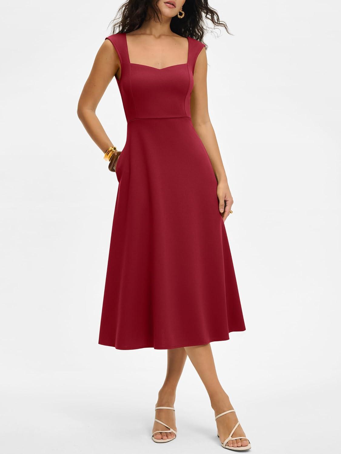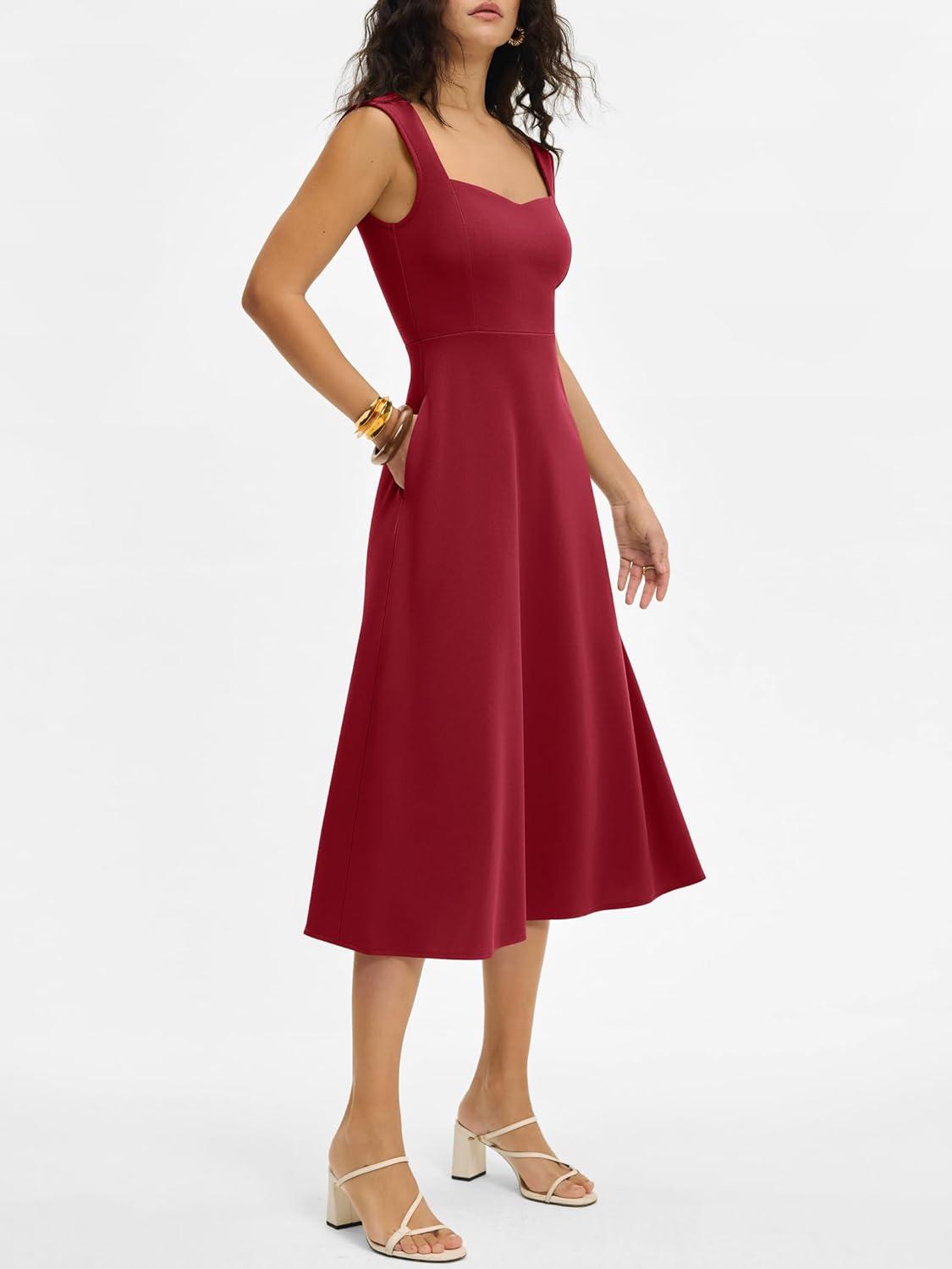 ANRABESS Womens Sweetheart Neck Sleeveless Midi Dress 2026 Summer Formal Wedding Guest Party Cocktail Dresses with Pockets(Red)