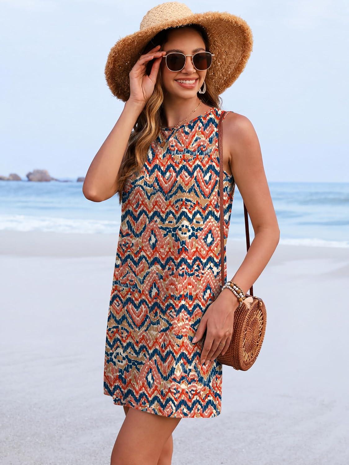 ANRABESS Womens Swimsuit Cover Up 2026 Summer Eyelet Sleeveless Beach Dresses Swimwear Bathing Suit Coverup Vacation Clothes(Orange Blue Diamonds)
