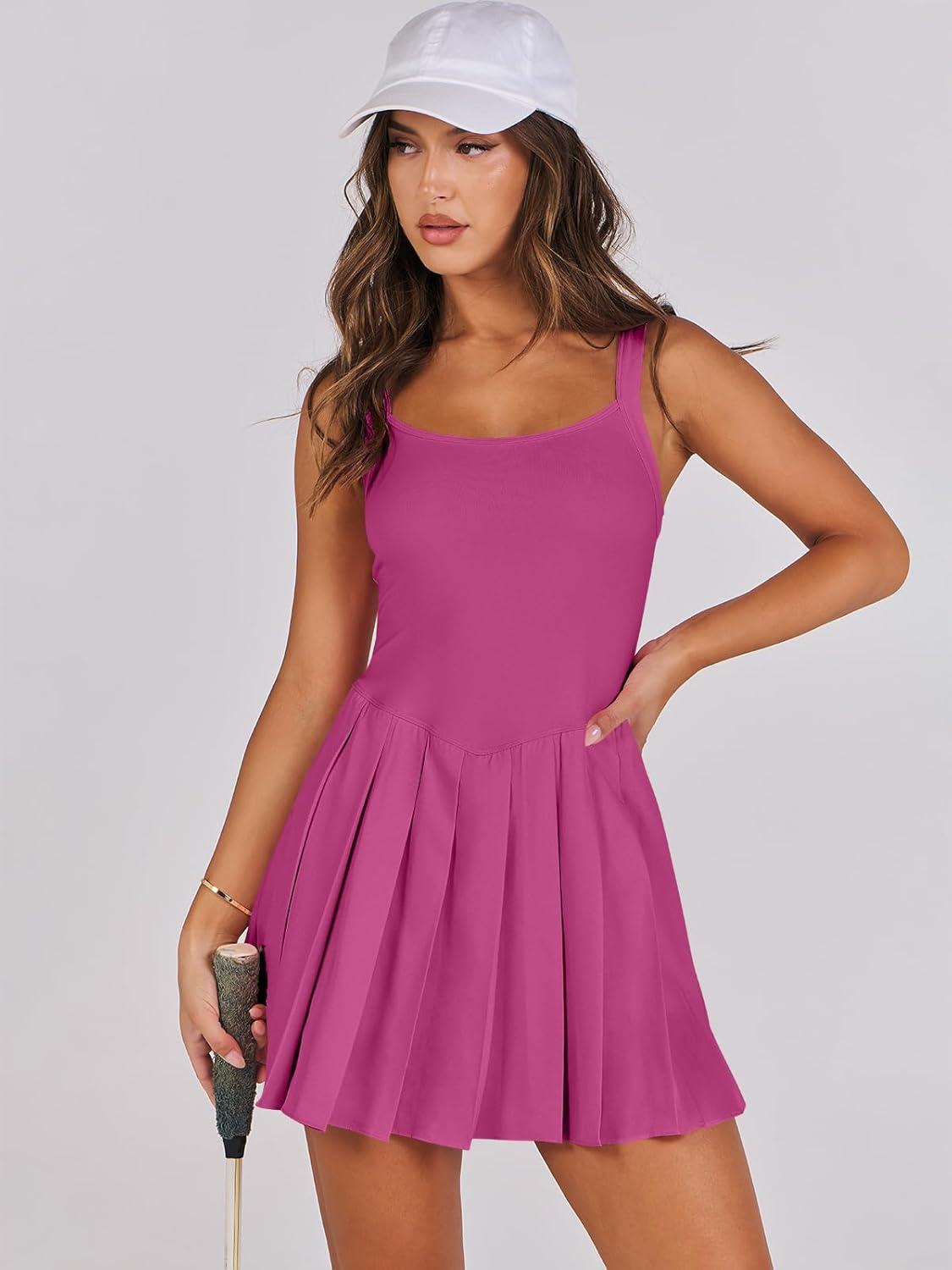ANRABESS Women's Tennis Athletic Pleated Summer Mini Dress 2026 Golf Workout Build in Shorts Casual Romper Short Sundress(Rose)