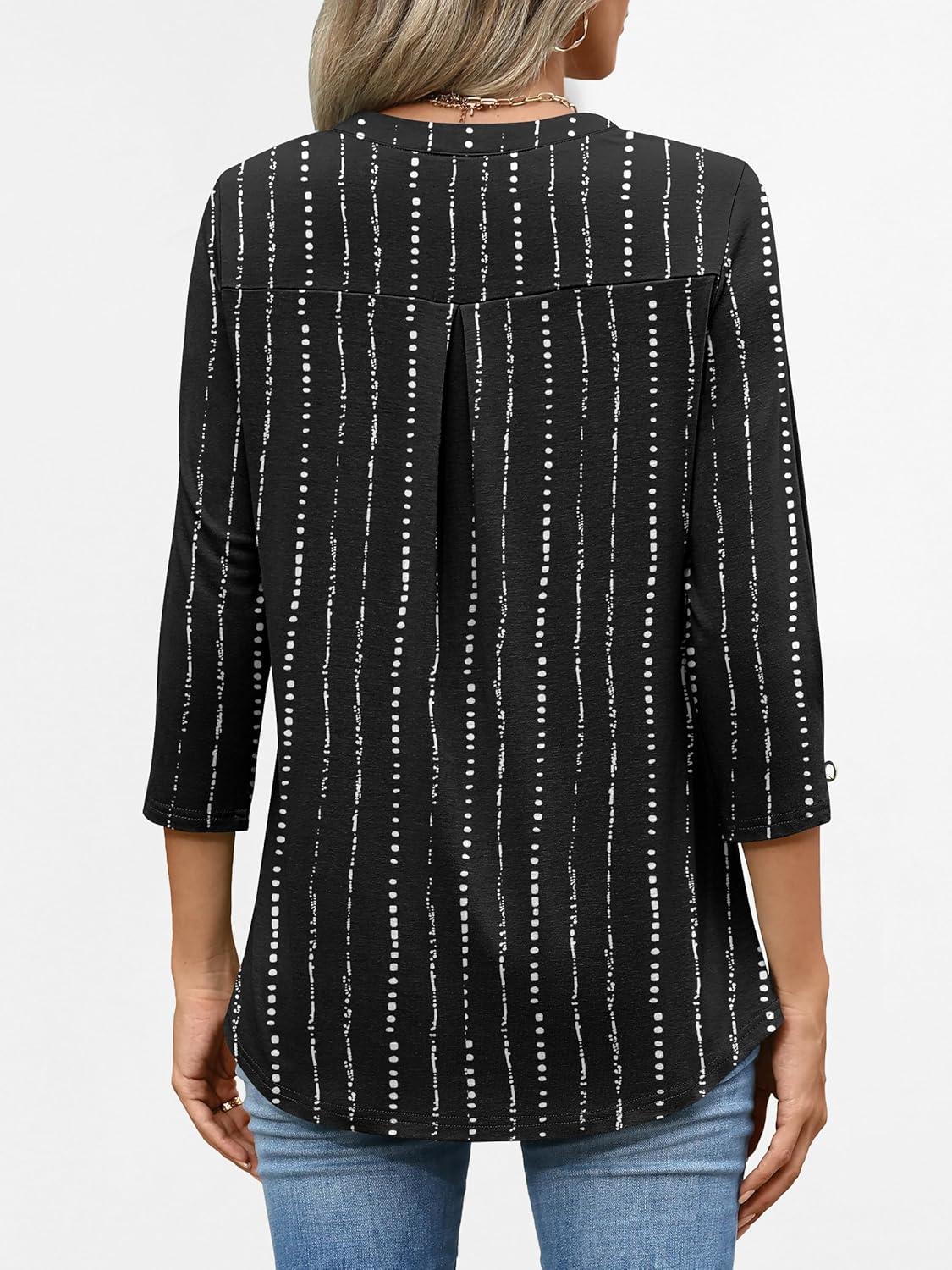 ANRABESS Womens Tops 3/4 Length Sleeve Shirts Business Casual Dressy Blouses 2025 Fall Work Tunic Tee TShirts Office Outfits(Black White Strip)