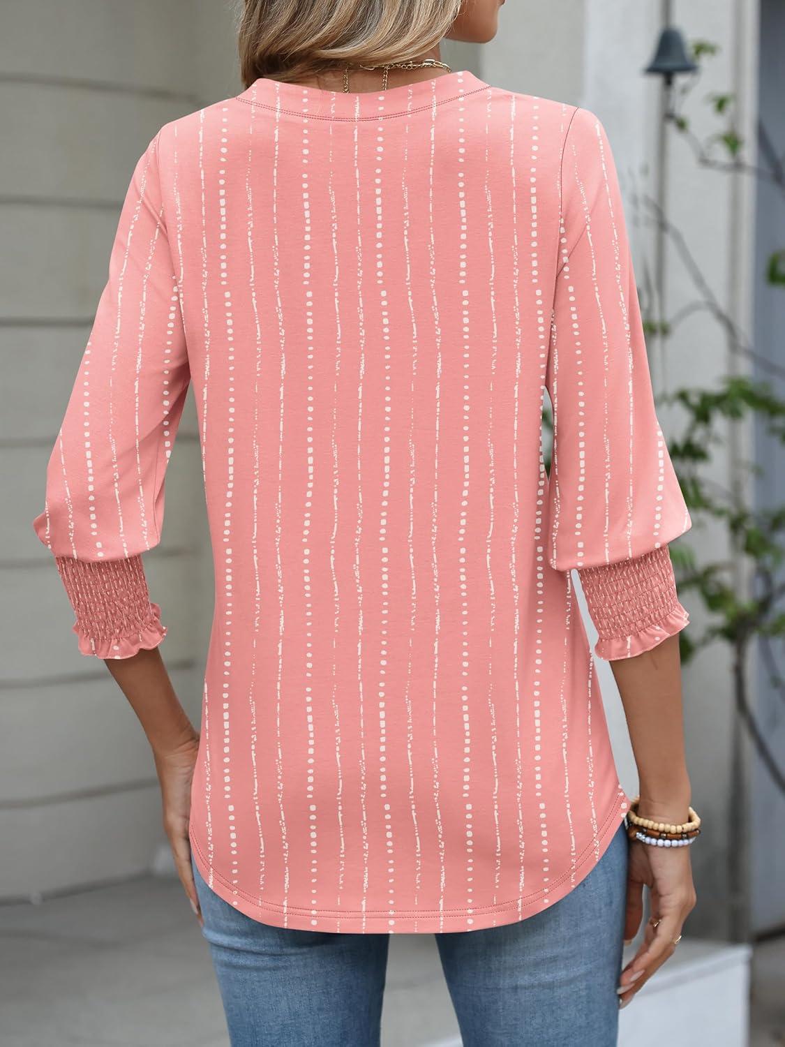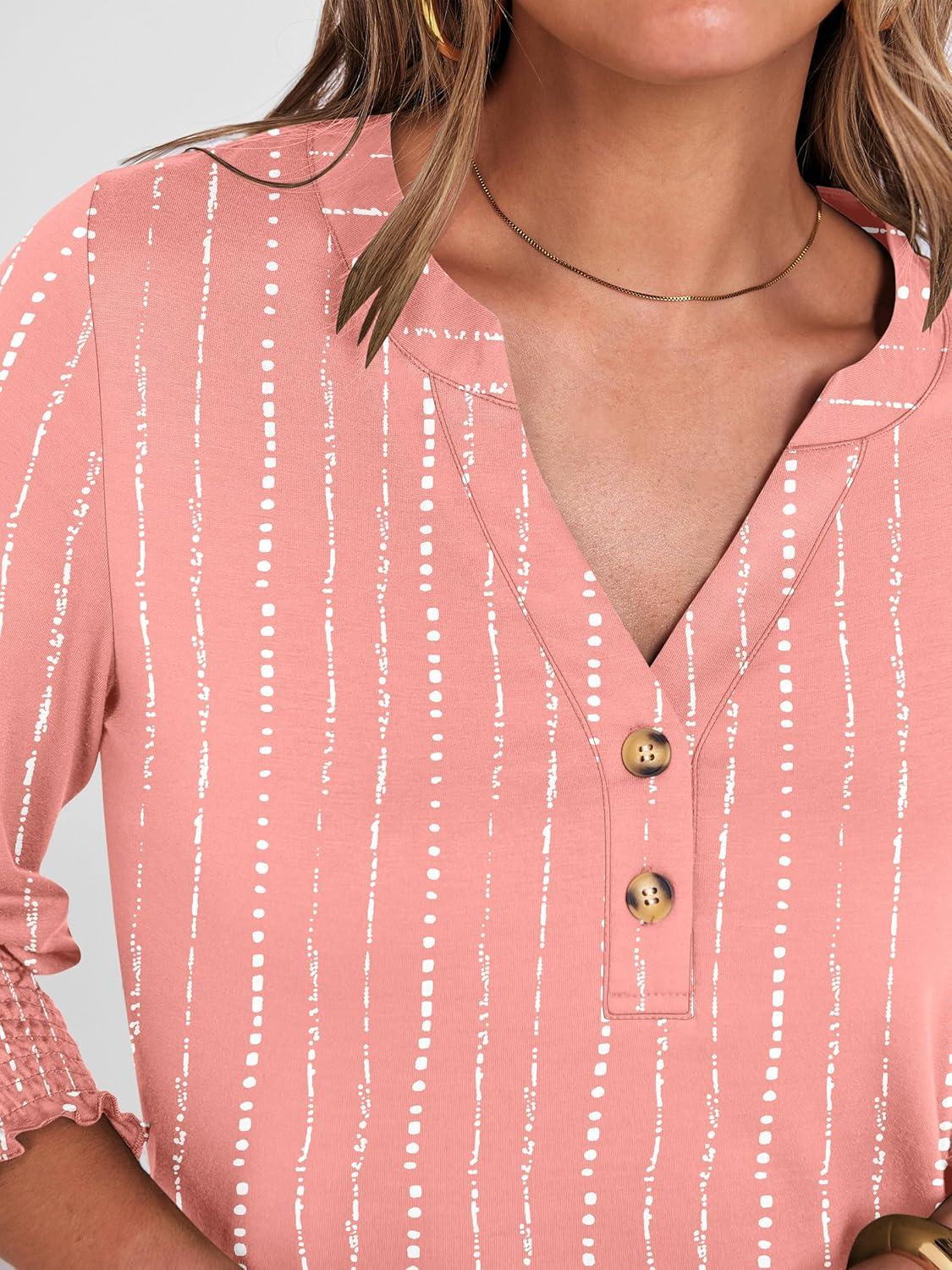 ANRABESS Womens Tops 3/4 Sleeve Henley V Neck Soft Blouses Dressy Casual Work Business Shirts 2026 Spring Fashion Clothes(Coral White Stripe)