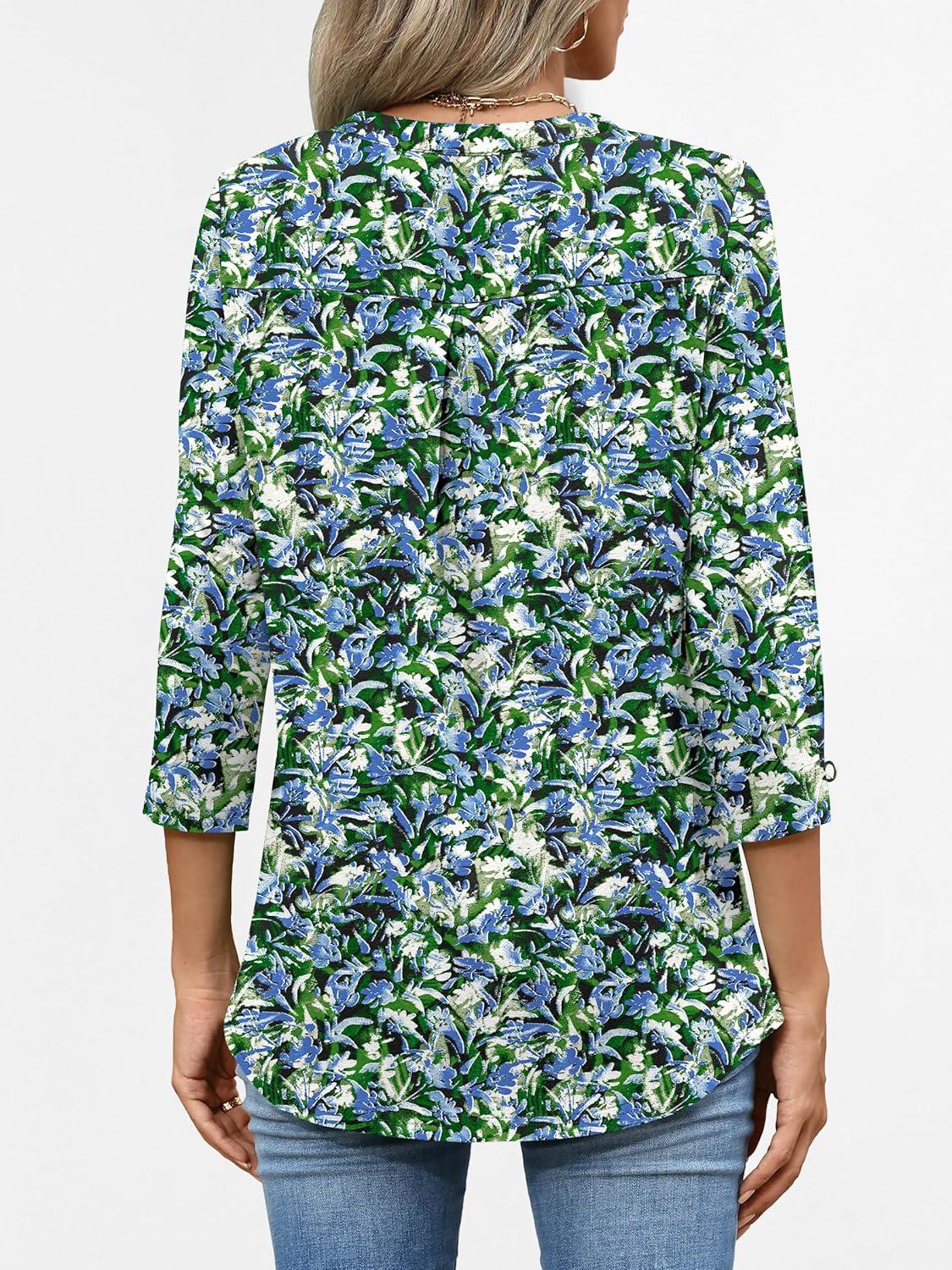 ANRABESS Womens Tops Business Dressy Casual Blouses 3/4 Length Sleeve Shirts 2026 Fall Work Tunic Tee TShirts Office Outfits(Blue Green Floral)