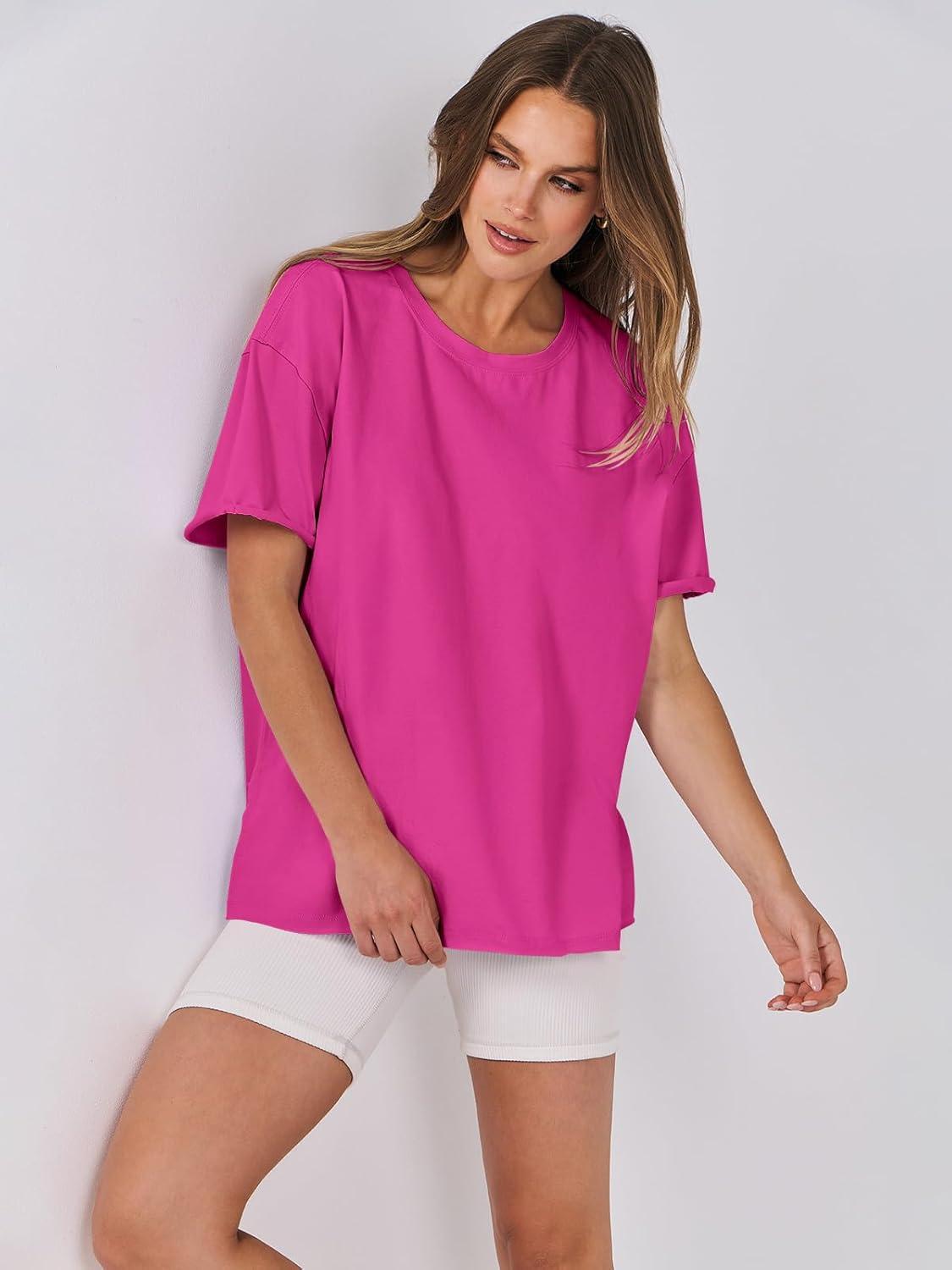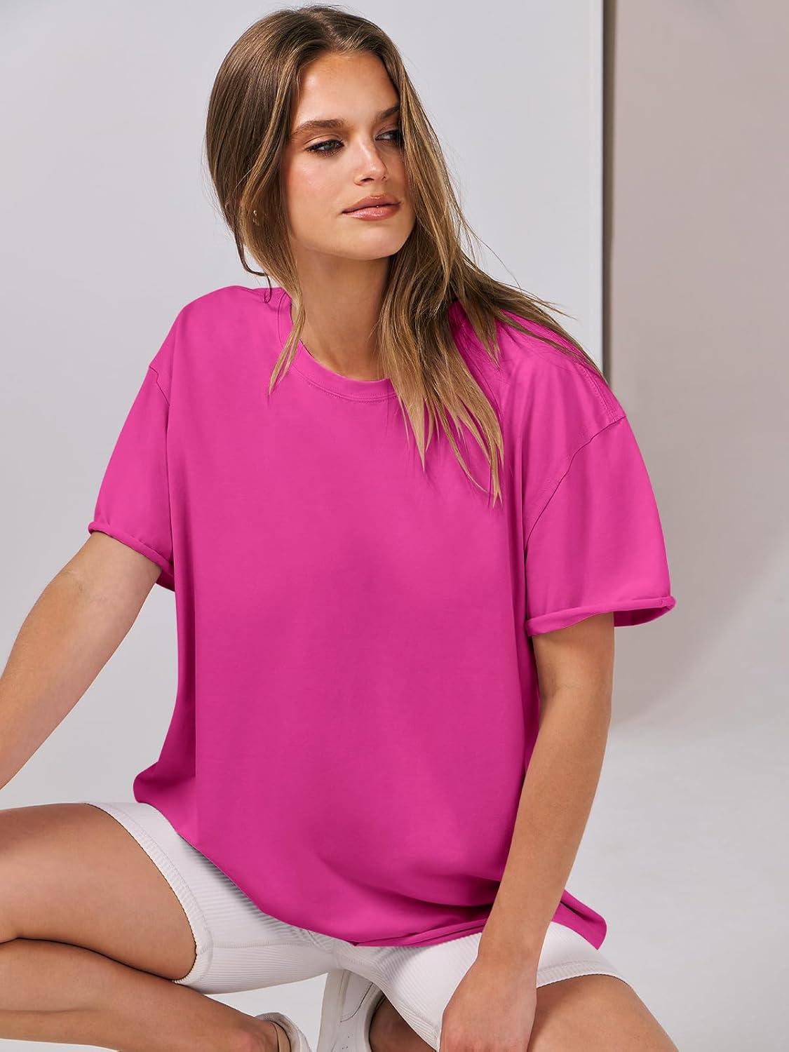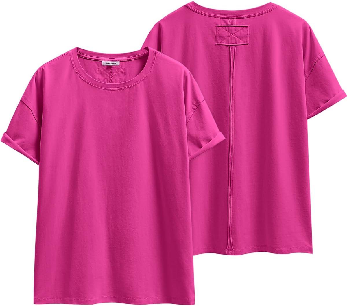 ANRABESS Womens Tops Oversized T Shirts Loose Fit Short Sleeve Crewneck Summer Casual 2025 Trendy Boxy Tee Blouse(Hot Pink)