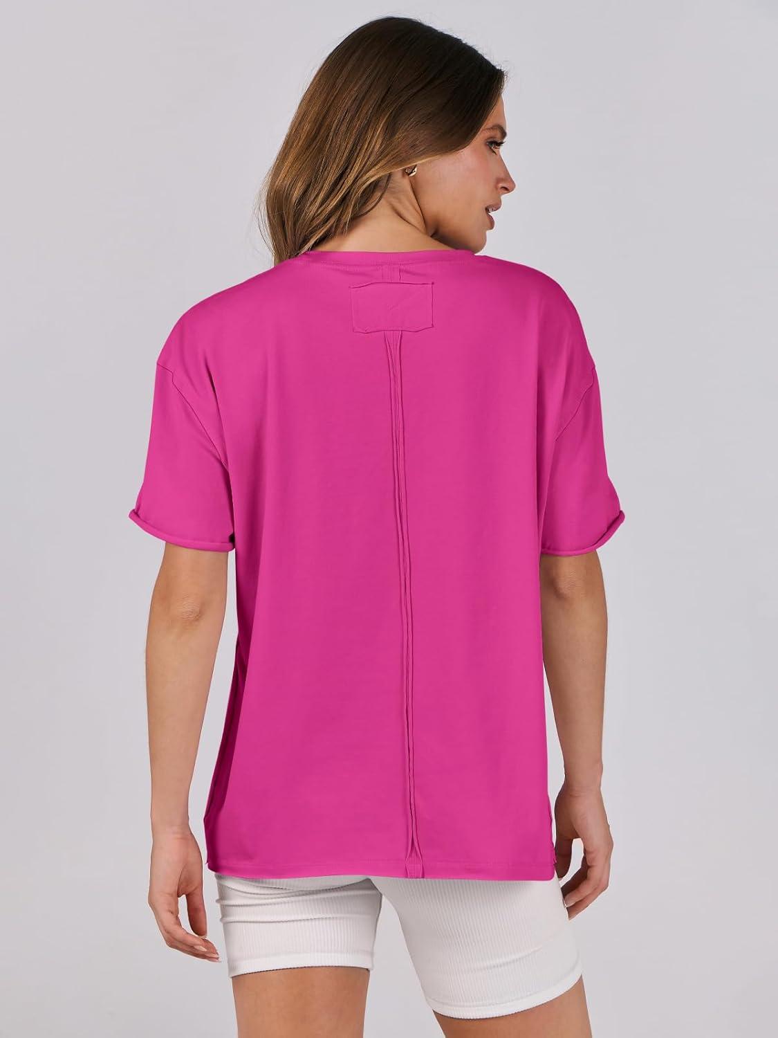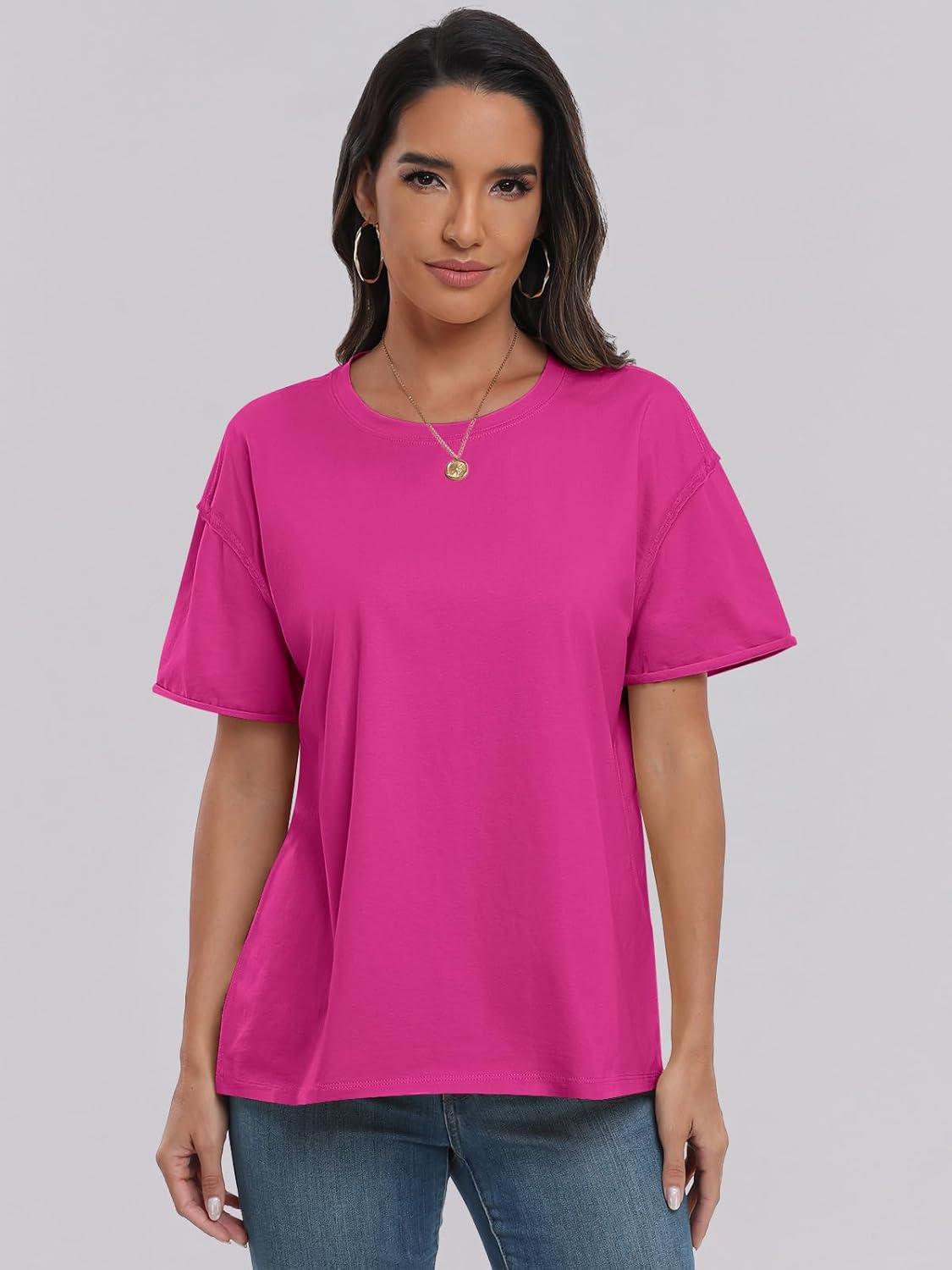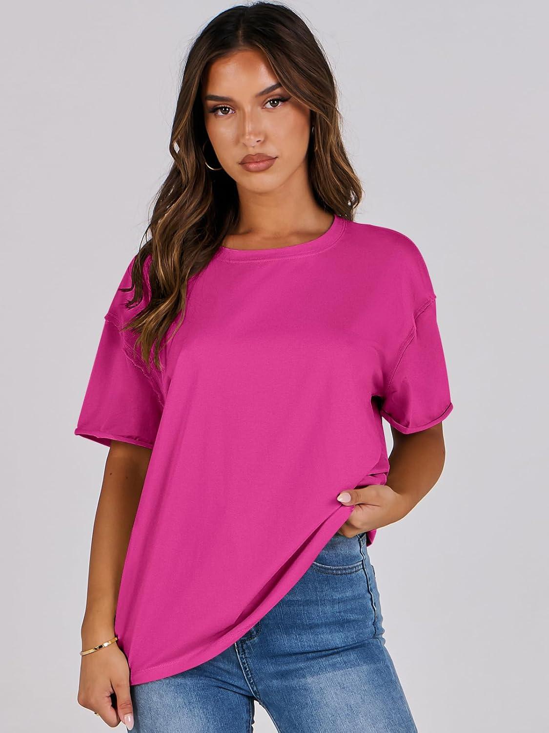 ANRABESS Womens Tops Oversized T Shirts Loose Fit Short Sleeve Crewneck Summer Casual 2025 Trendy Boxy Tee Blouse(Hot Pink)