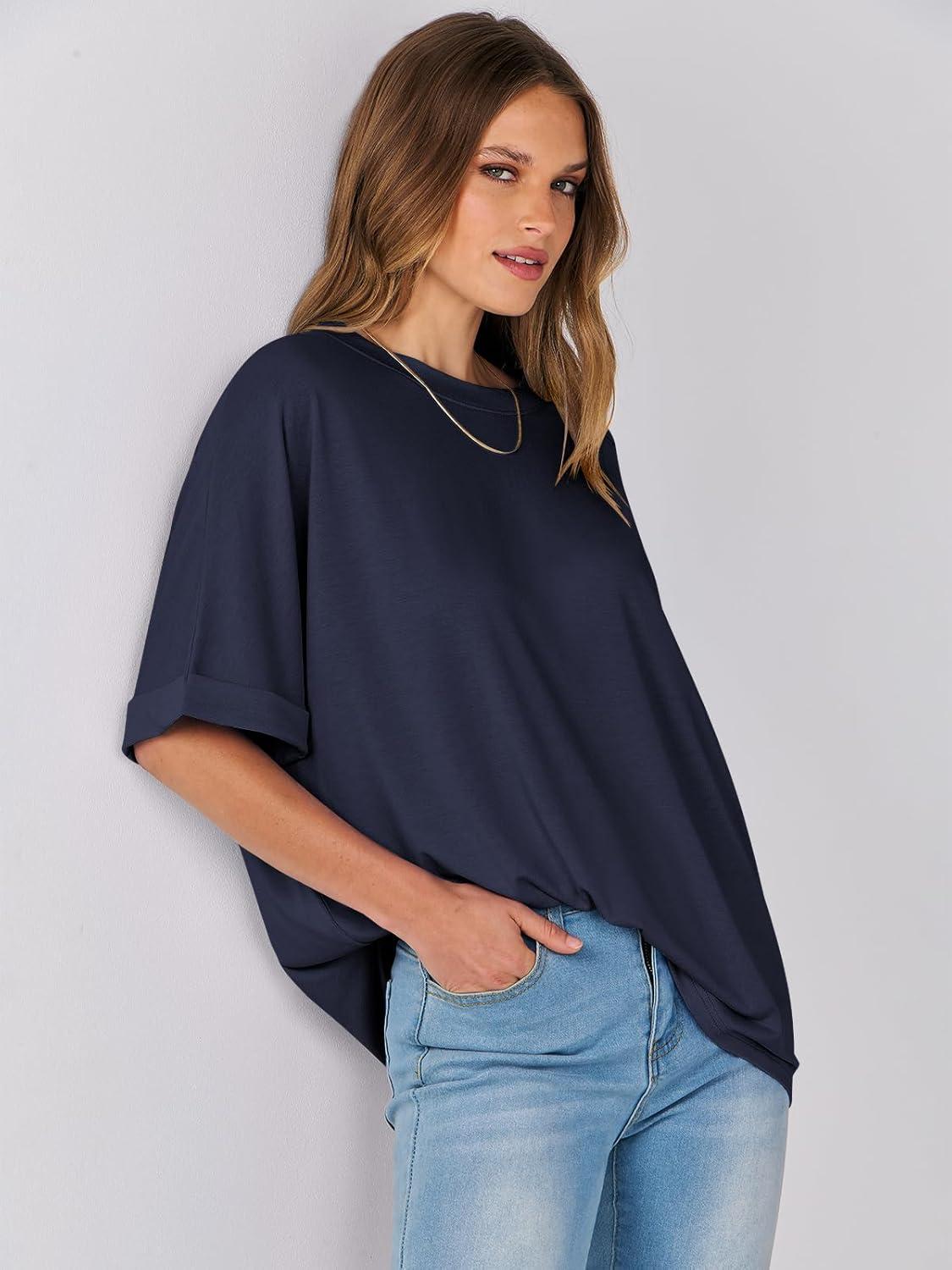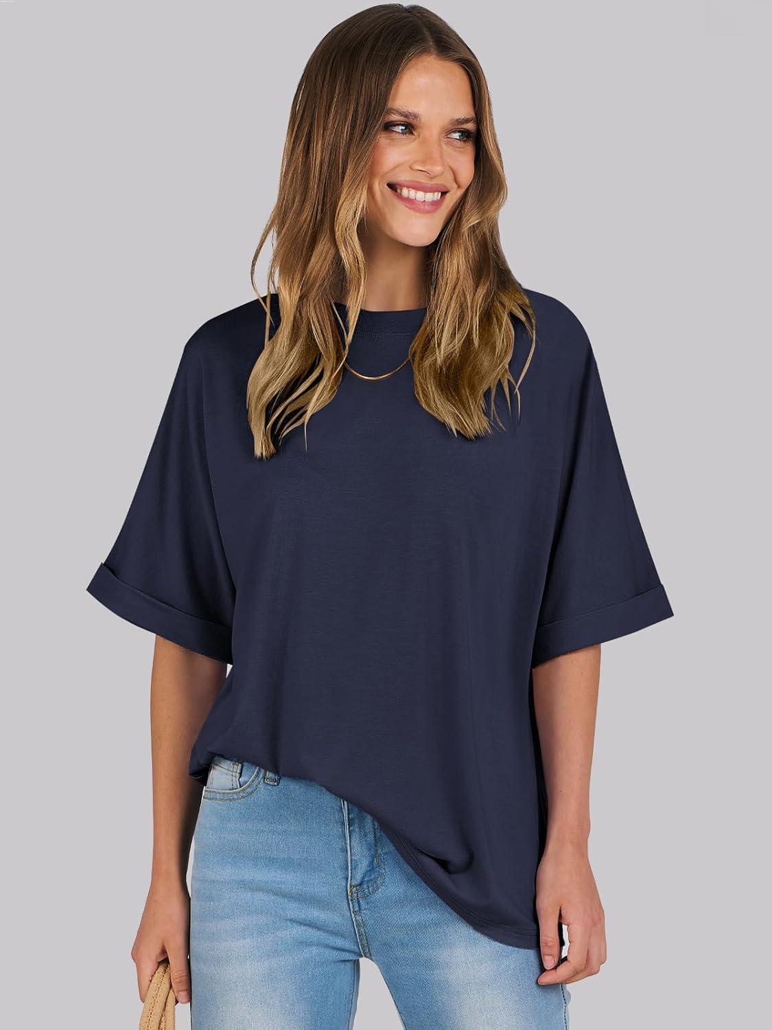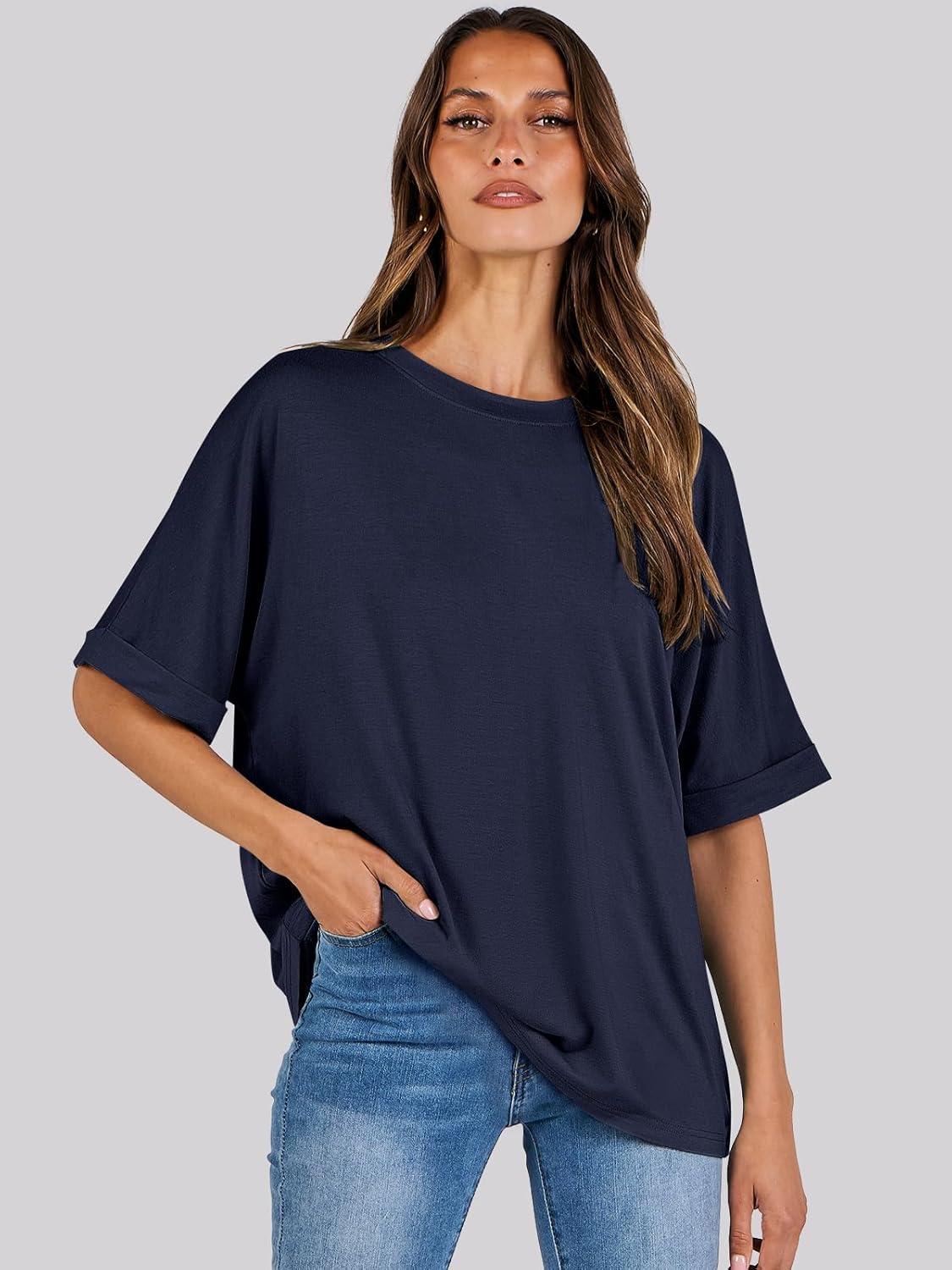 ANRABESS Womens Tops Oversized T Shirts Short Sleeve Crewneck Summer Casual Loose Basic Tee Shirt 2025 Trendy Fashion Clothes(Navy Blue)