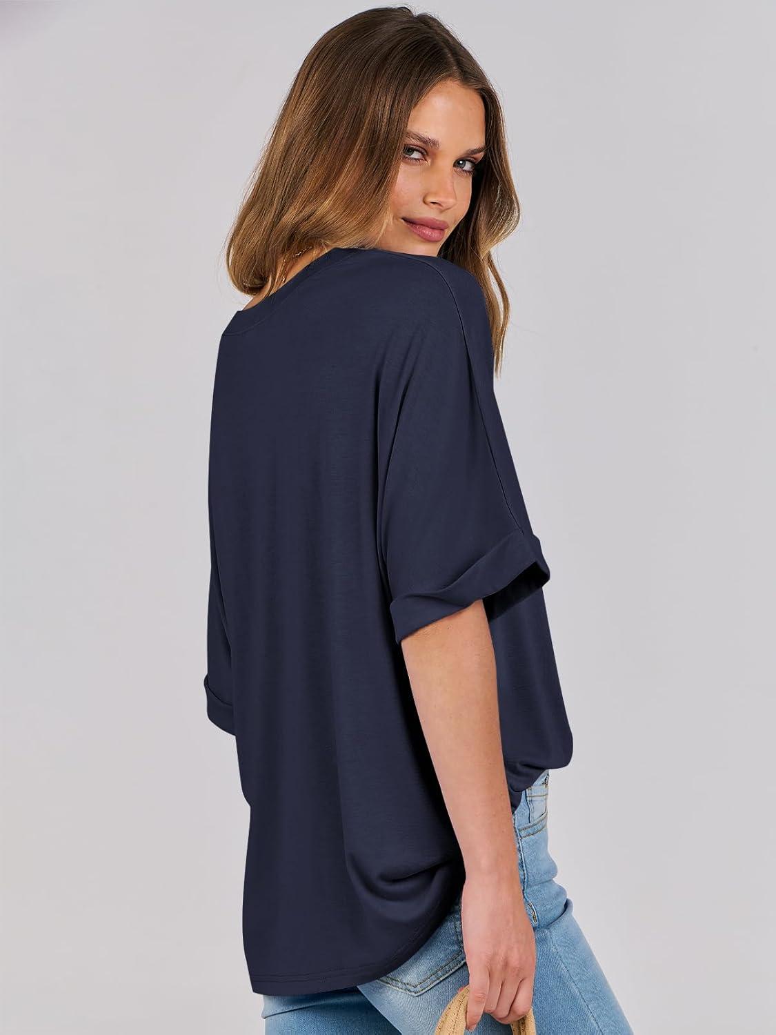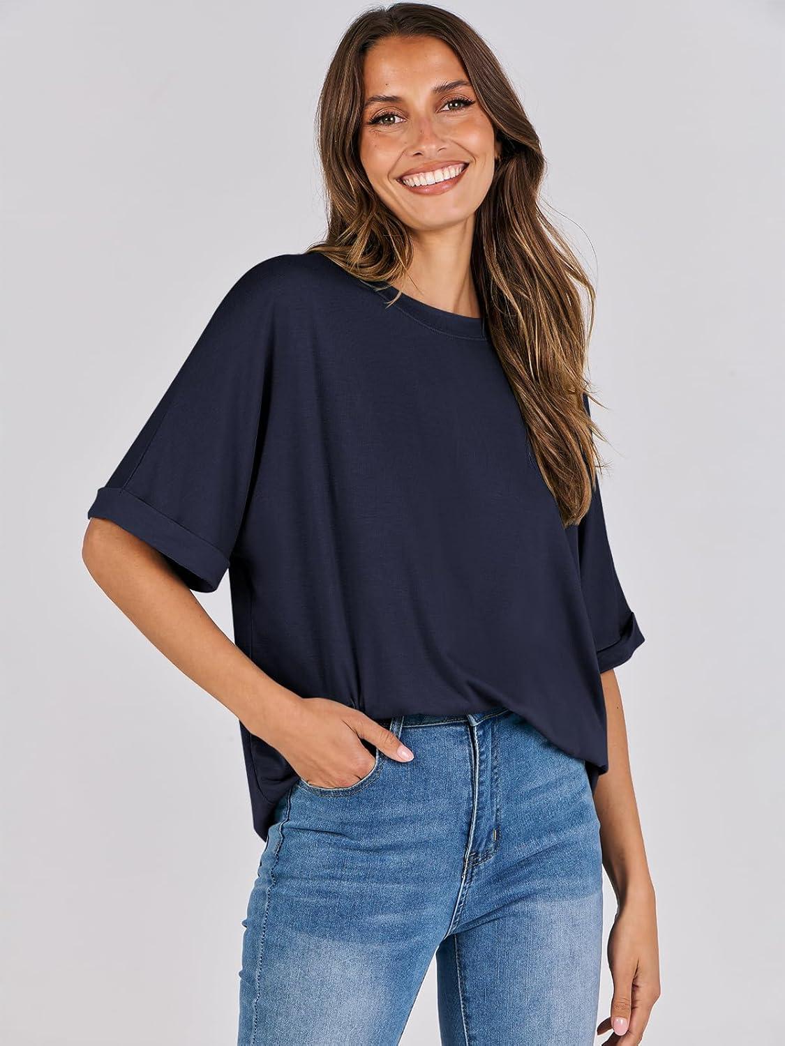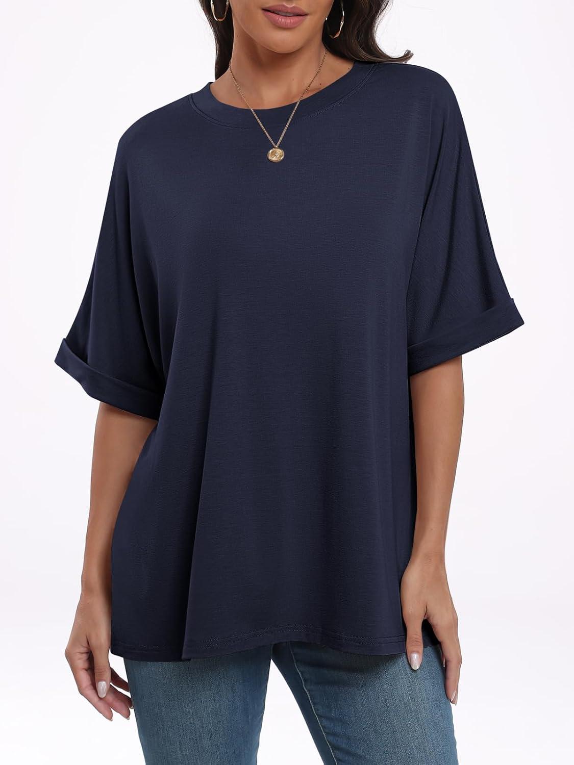 ANRABESS Womens Tops Oversized T Shirts Short Sleeve Crewneck Summer Casual Loose Basic Tee Shirt 2025 Trendy Fashion Clothes(Navy Blue)