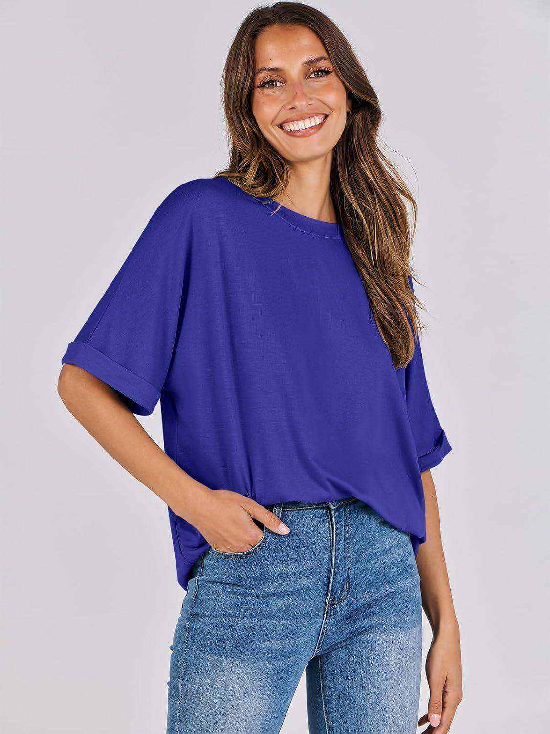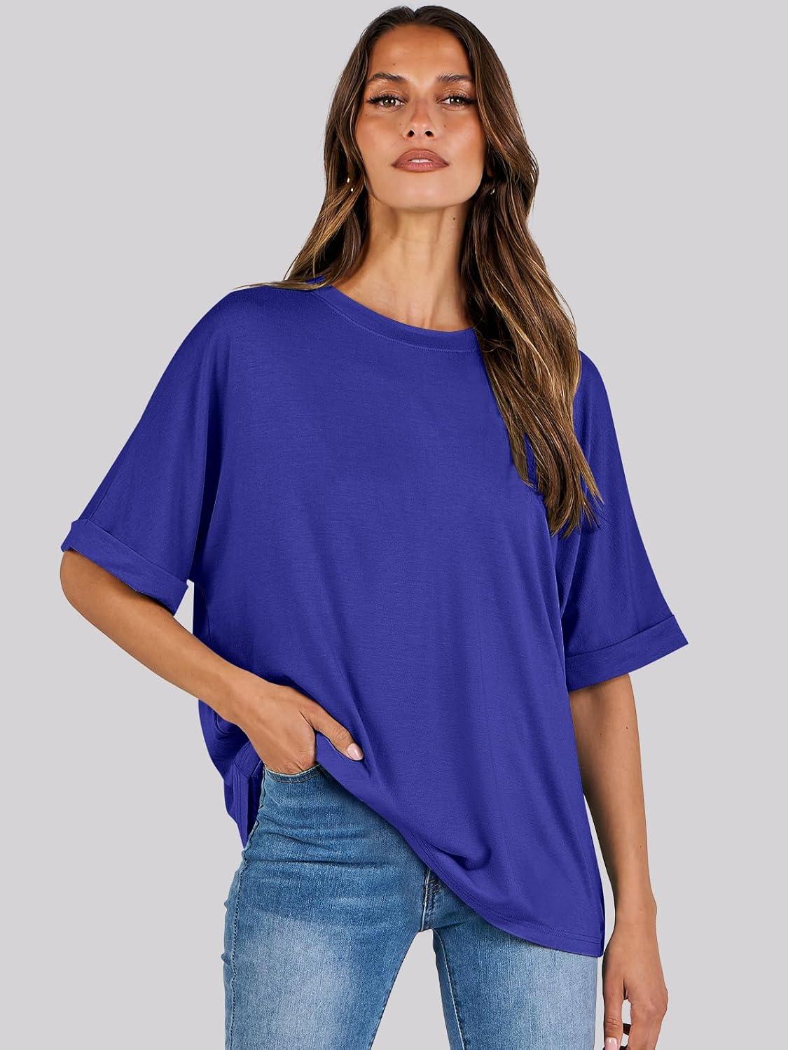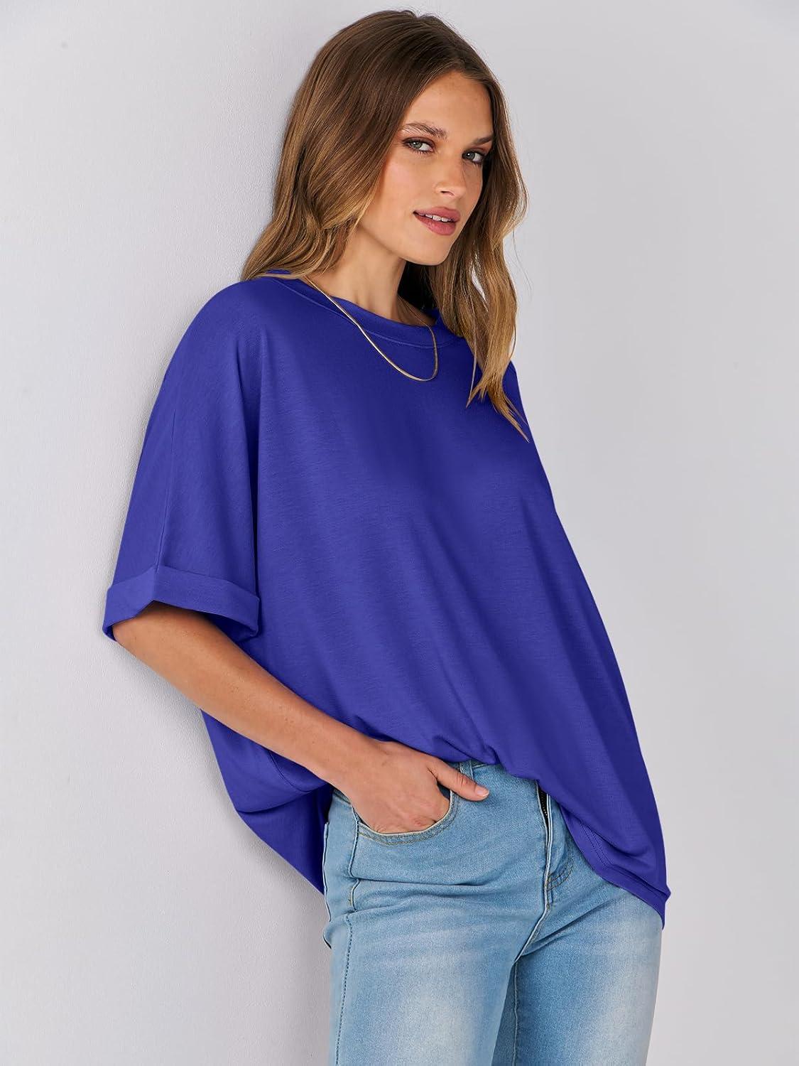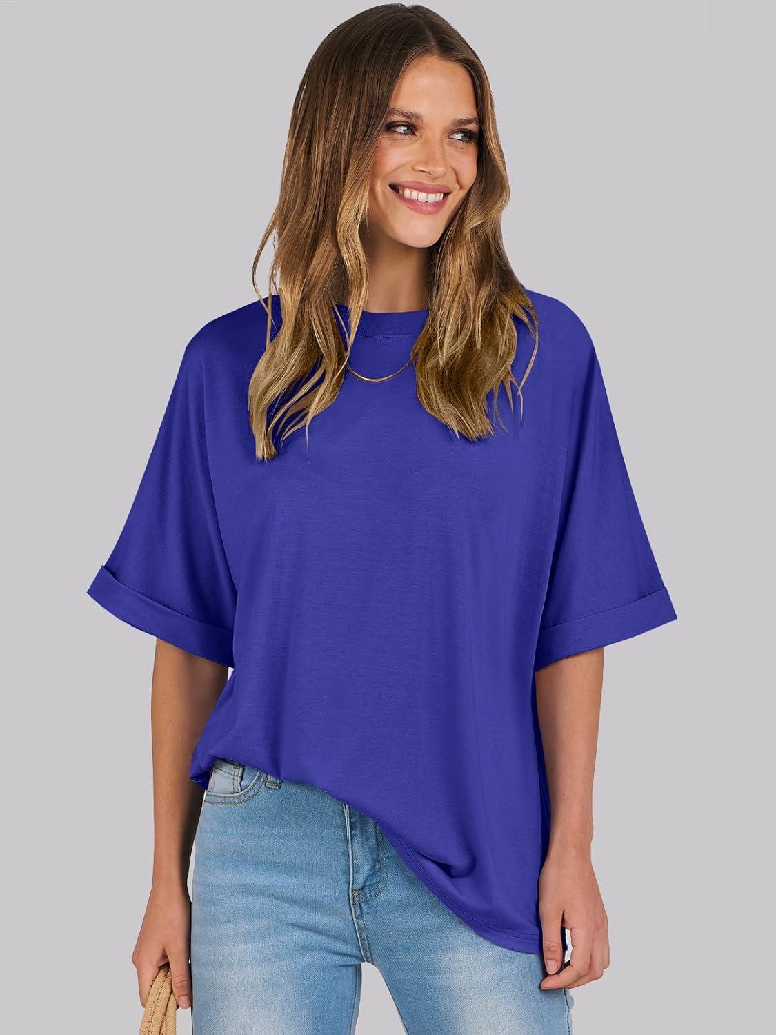 ANRABESS Womens Tops Oversized T Shirts Short Sleeve Crewneck Summer Casual Loose Basic Tee Shirt 2025 Trendy Fashion Clothes(Royal Blue)