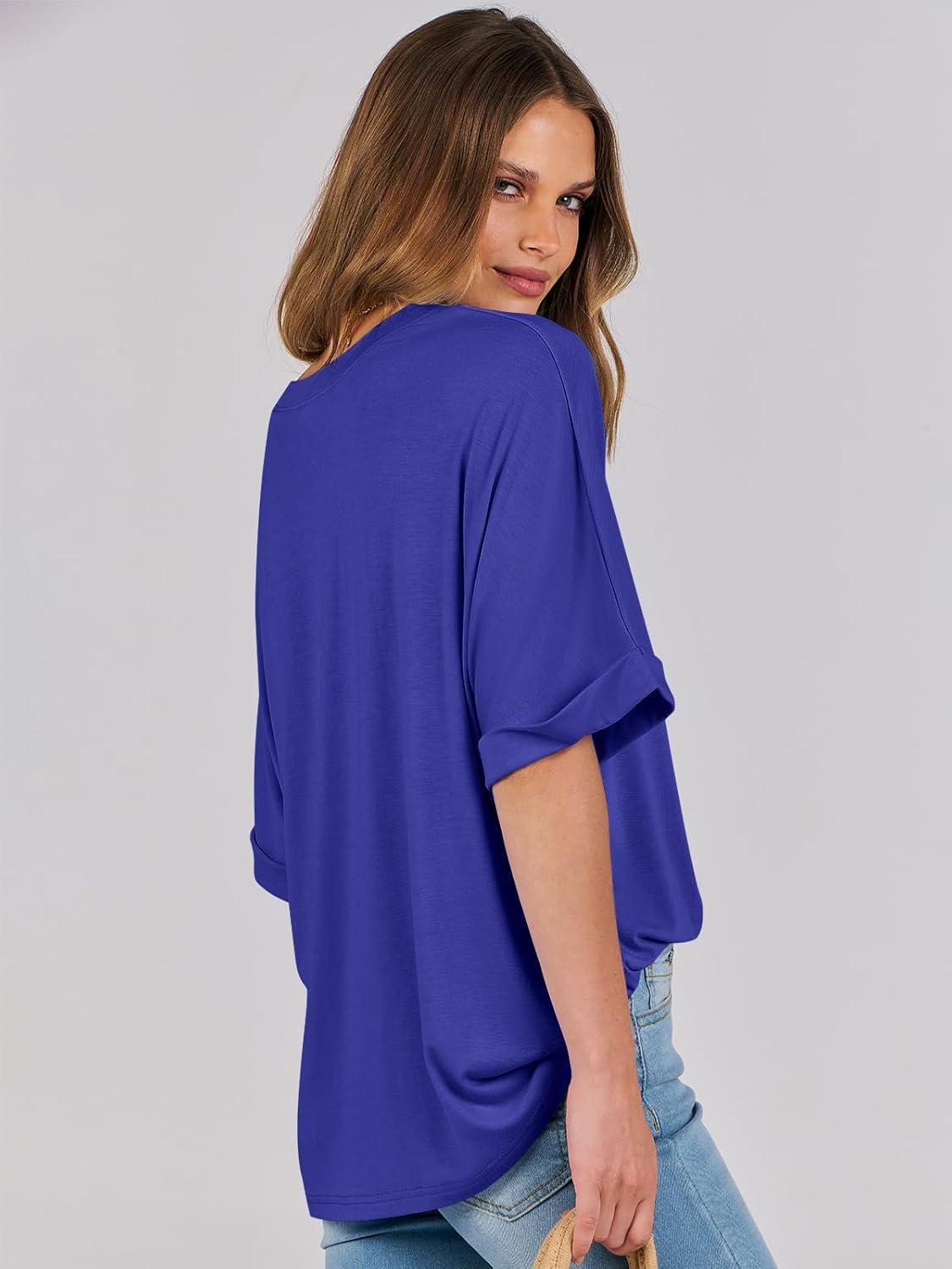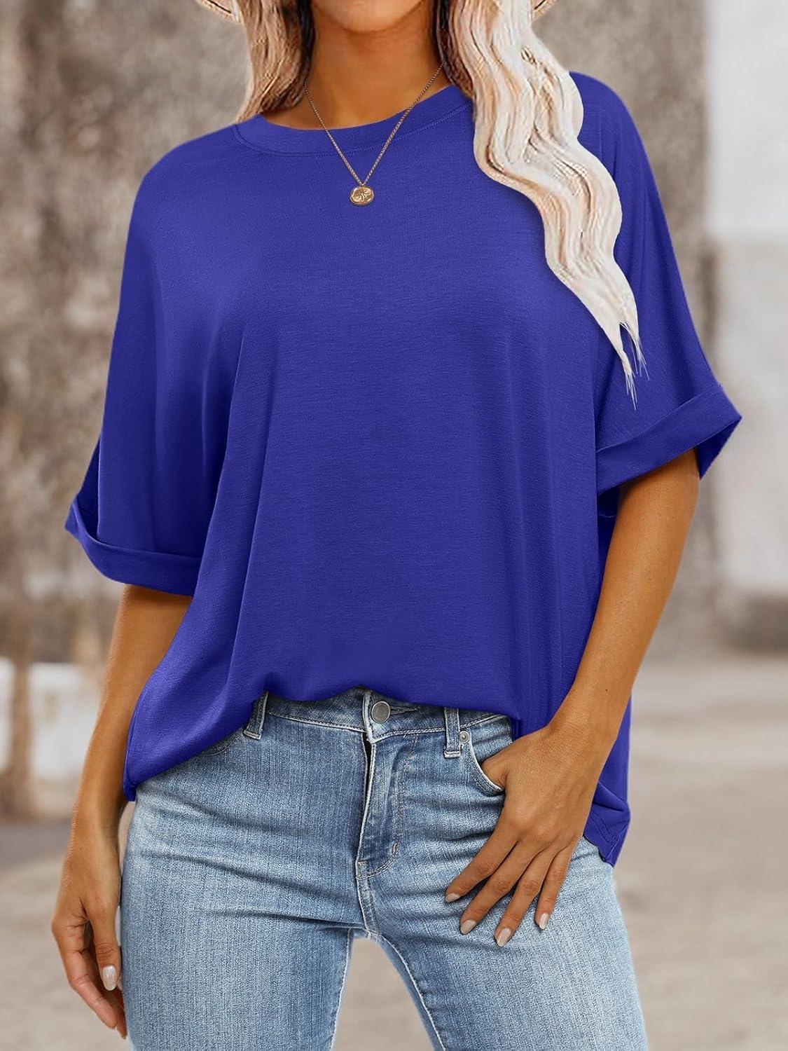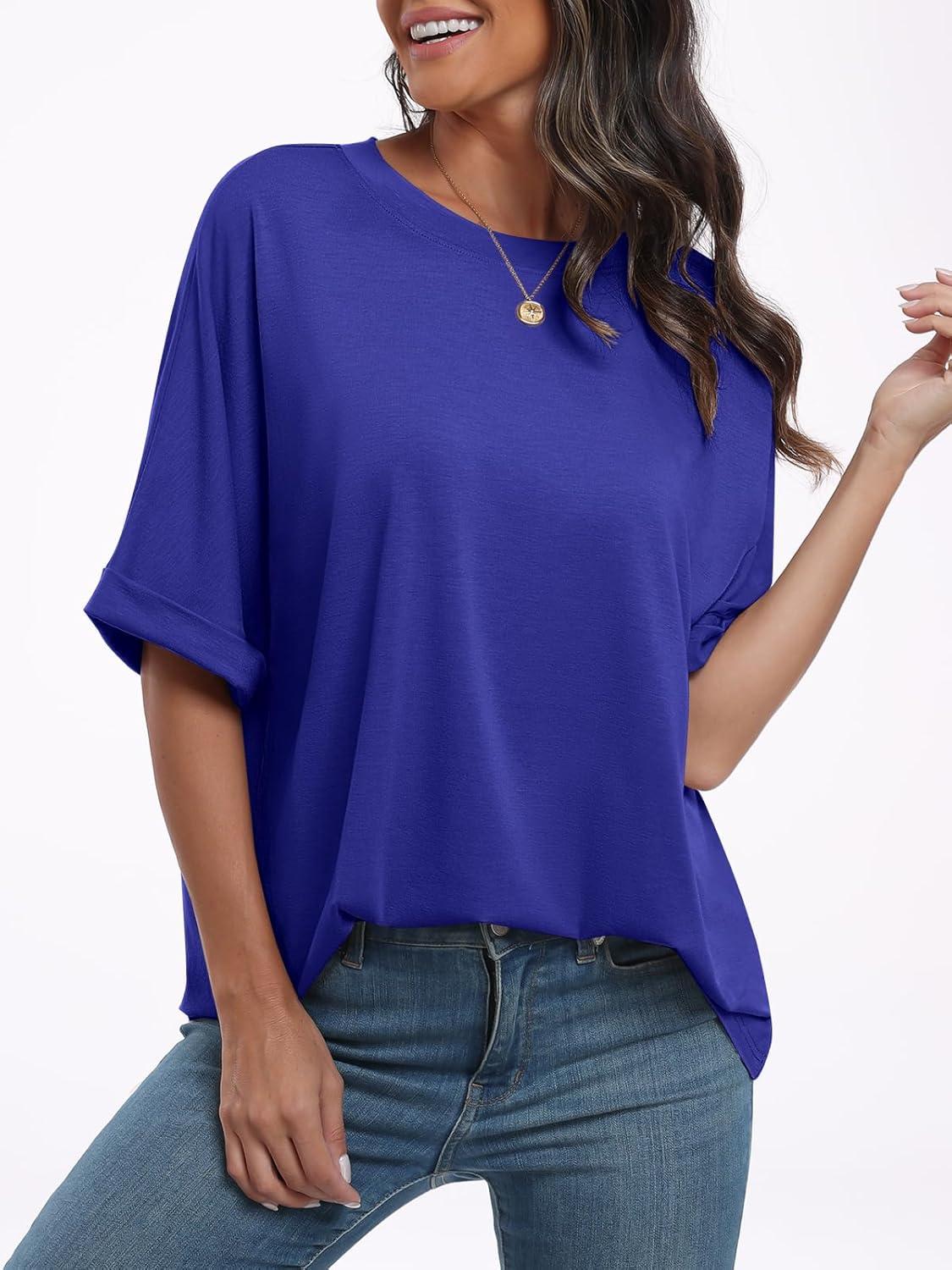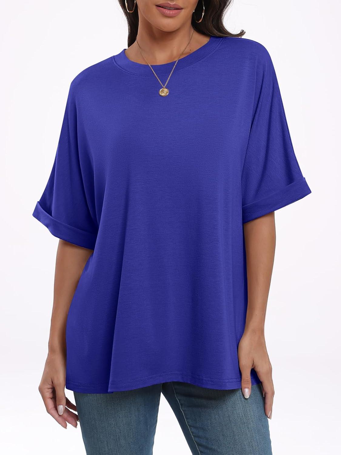 ANRABESS Womens Tops Oversized T Shirts Short Sleeve Crewneck Summer Casual Loose Basic Tee Shirt 2025 Trendy Fashion Clothes(Royal Blue)