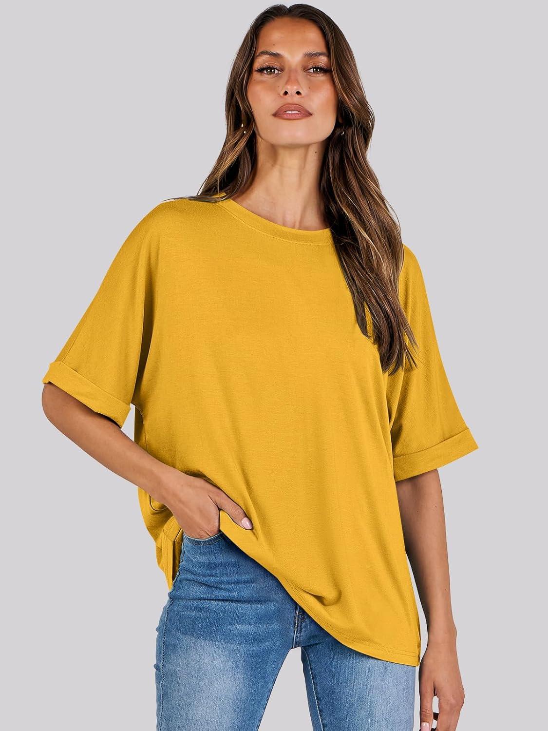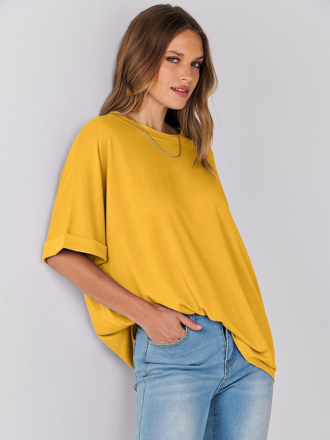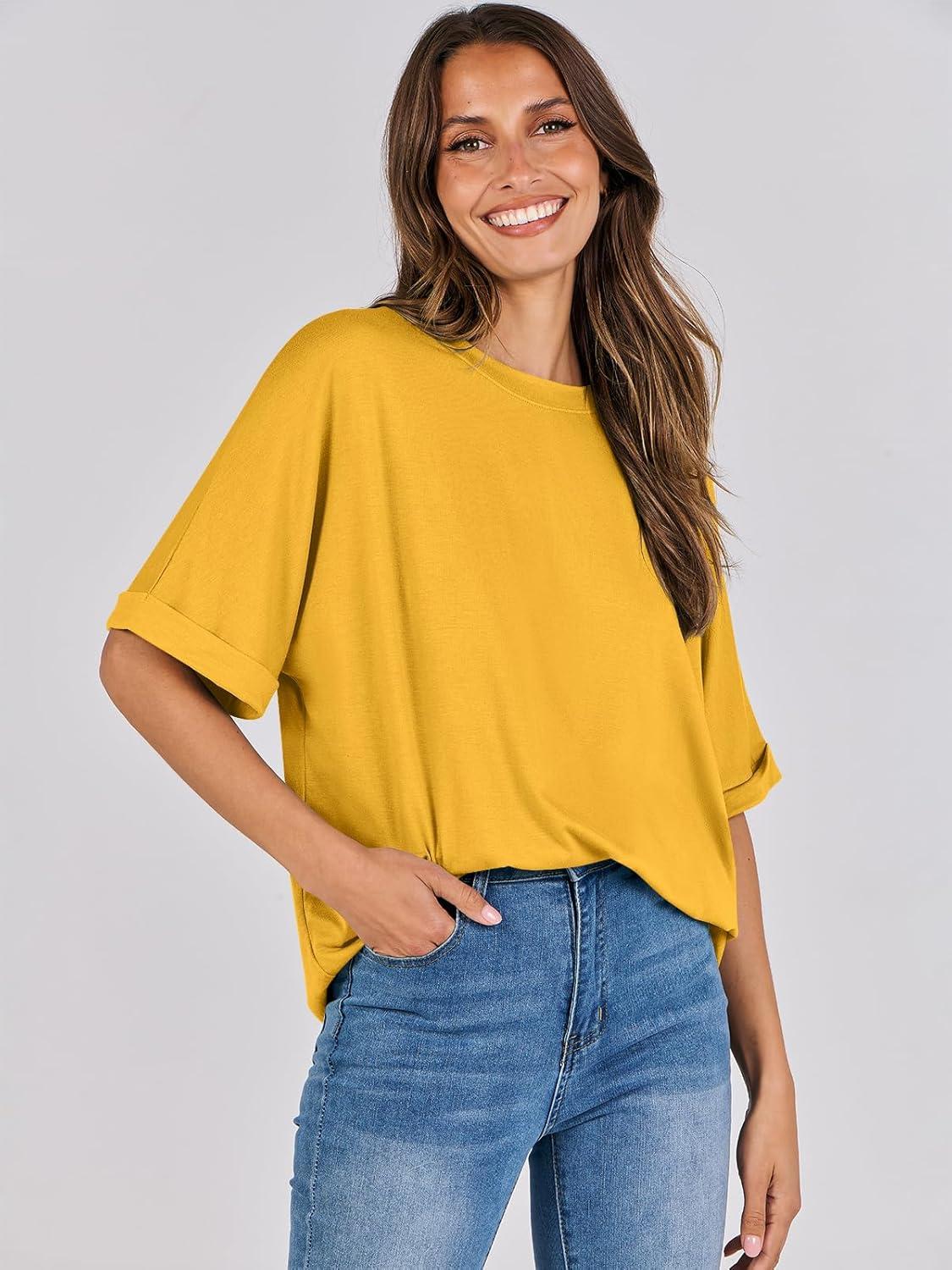 ANRABESS Womens Tops Oversized T Shirts Short Sleeve Crewneck Summer Casual Loose Basic Tee Shirt 2025 Trendy Fashion Clothes(Yellow)