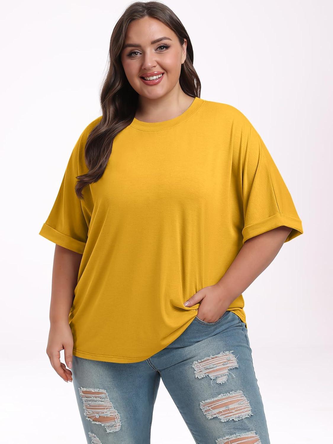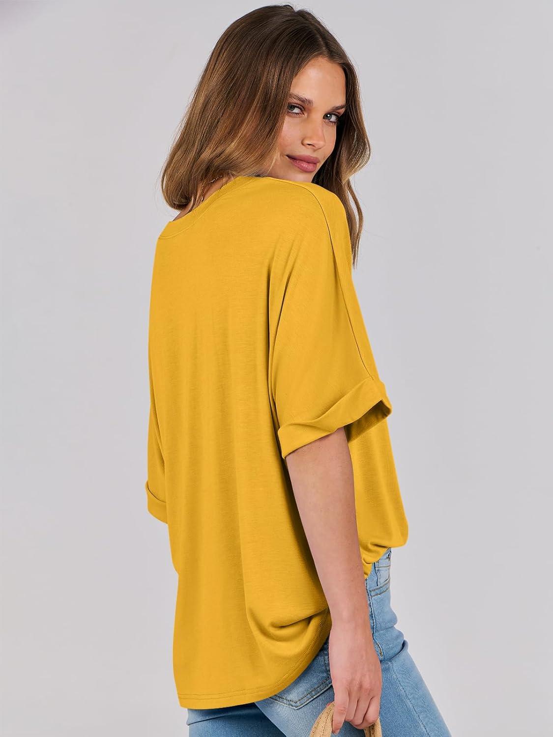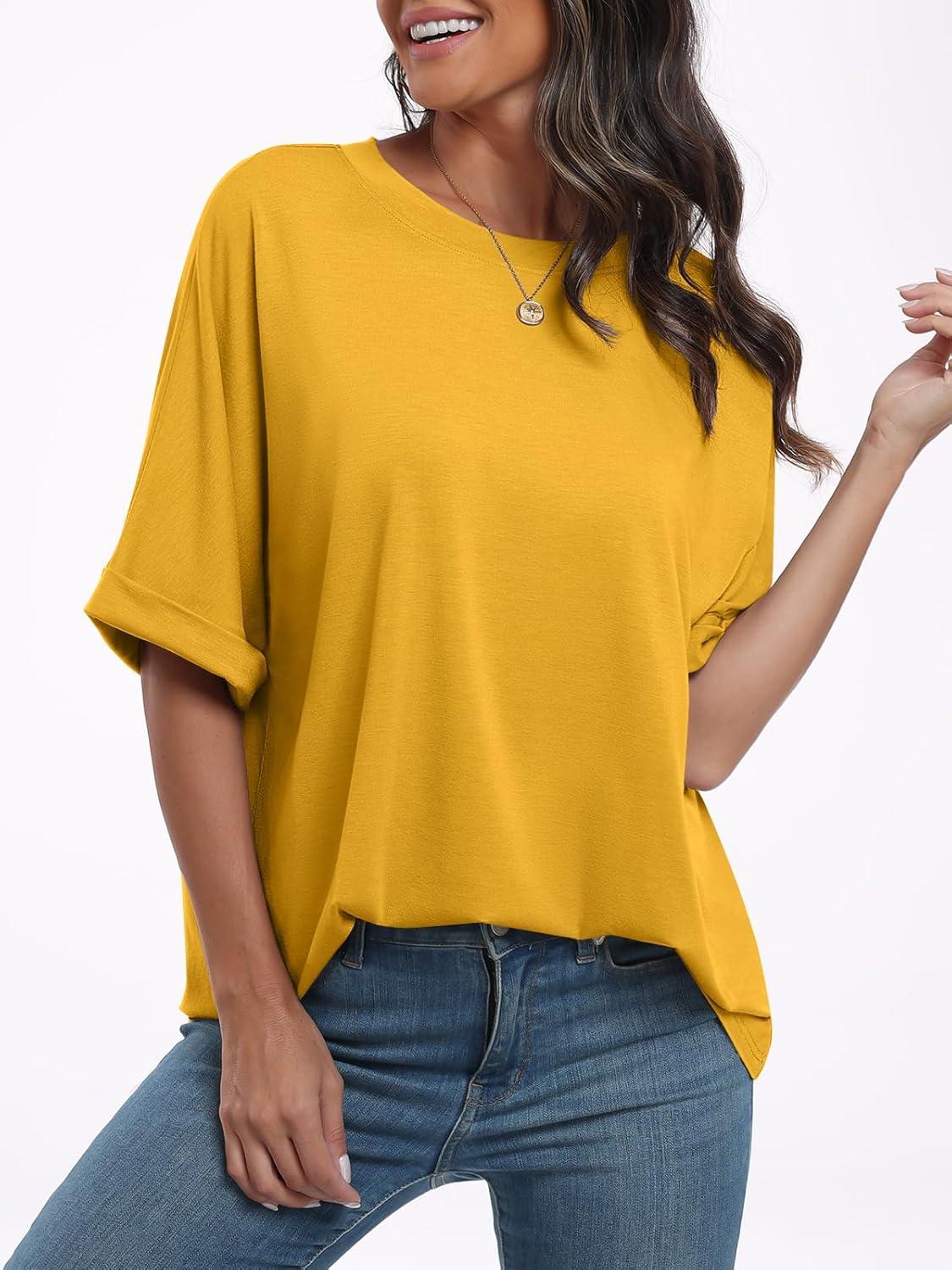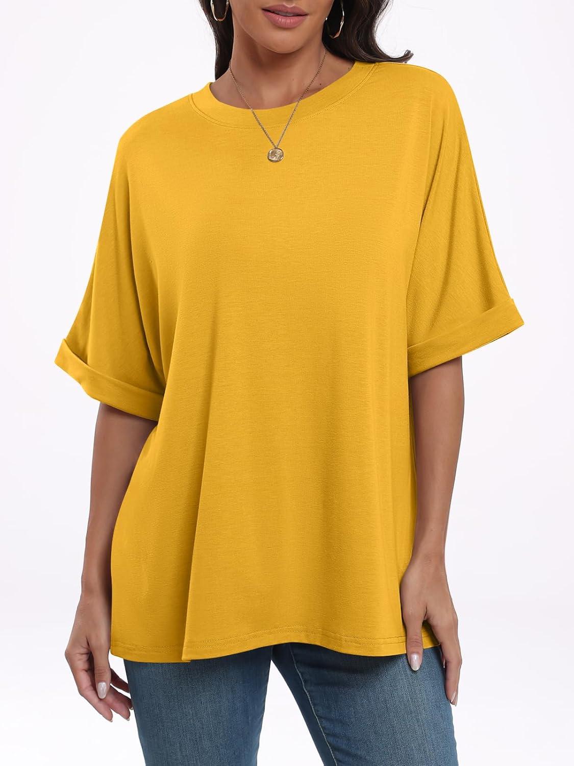 ANRABESS Womens Tops Oversized T Shirts Short Sleeve Crewneck Summer Casual Loose Basic Tee Shirt 2025 Trendy Fashion Clothes(Yellow)