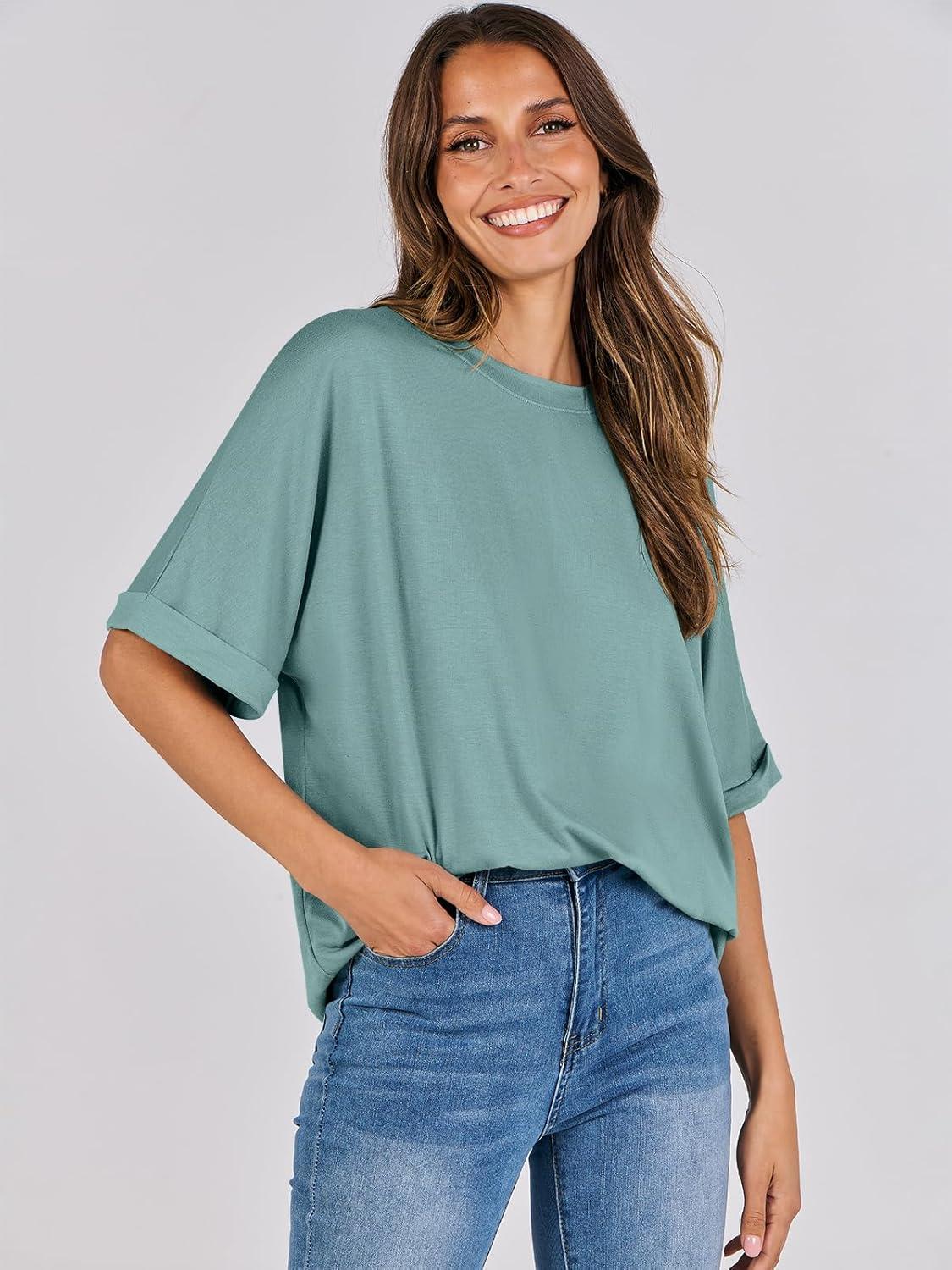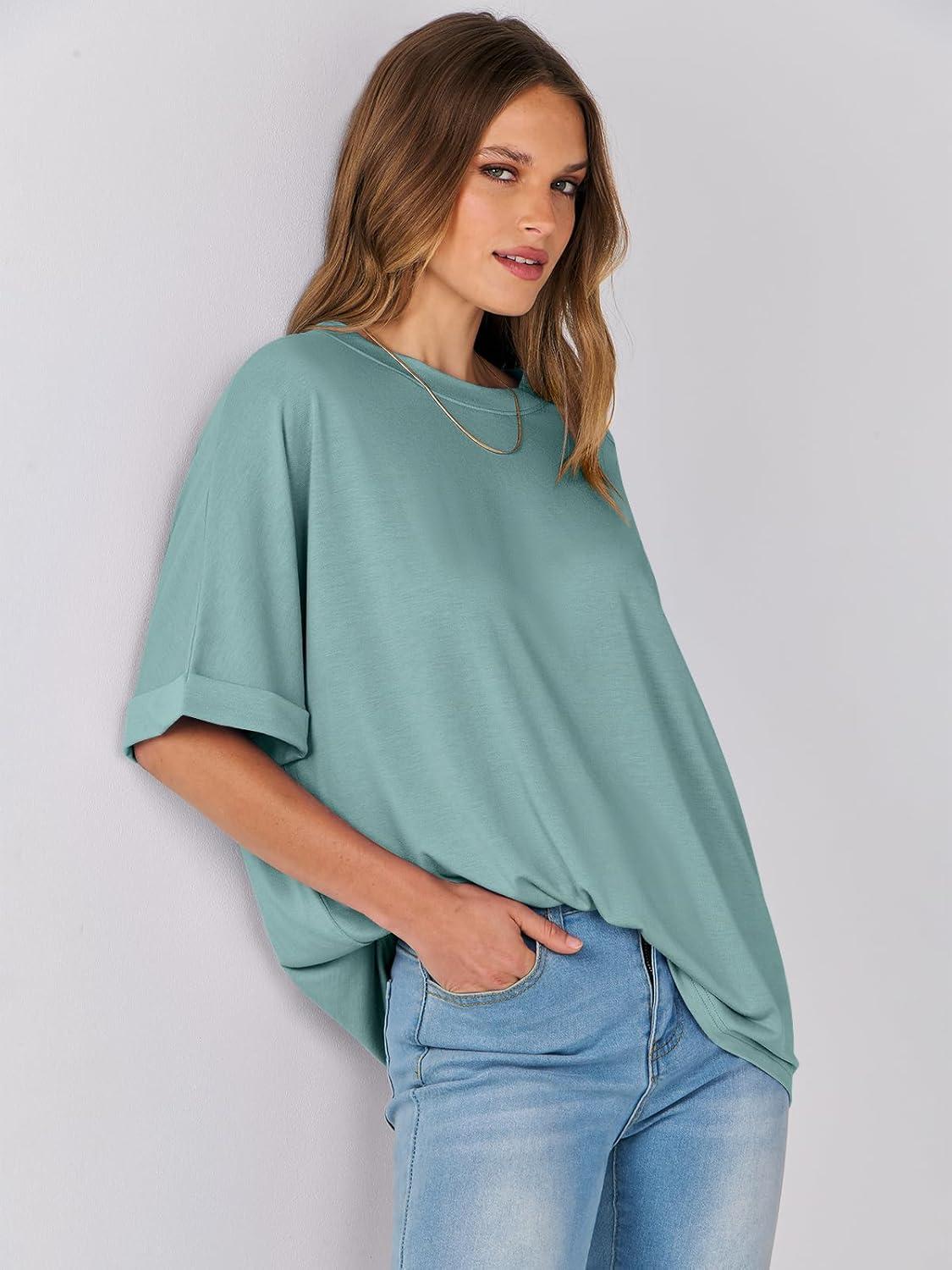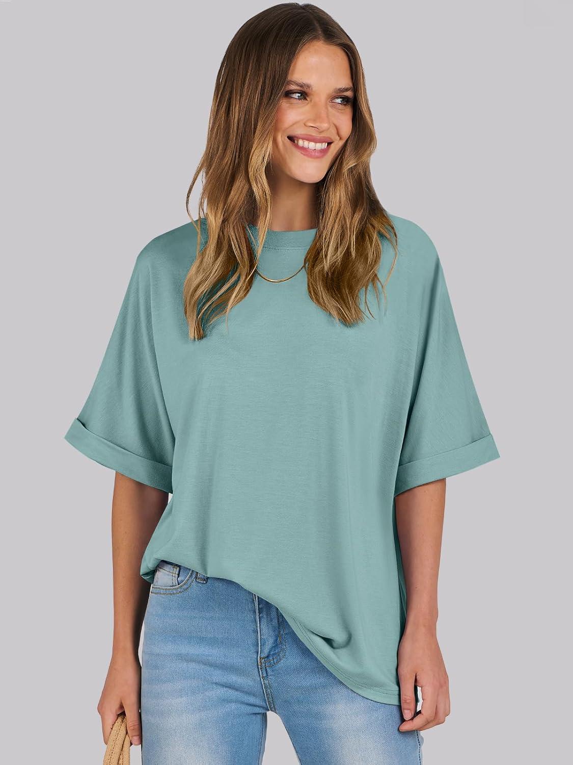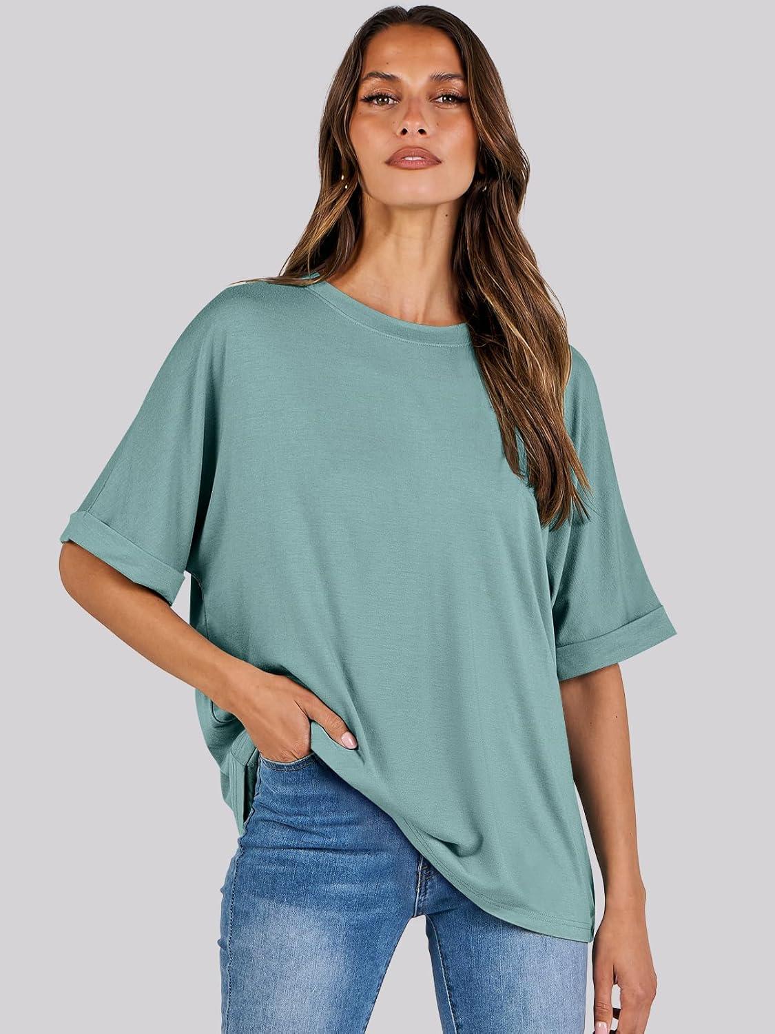 ANRABESS Womens Tops Oversized T Shirts Short Sleeve Crewneck Summer Casual Loose Basic Tee Shirt 2026 Trendy Fashion Clothes(Cadet Blue)