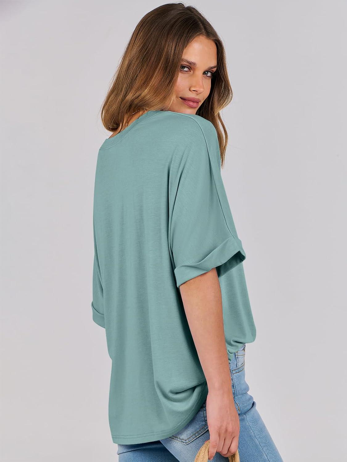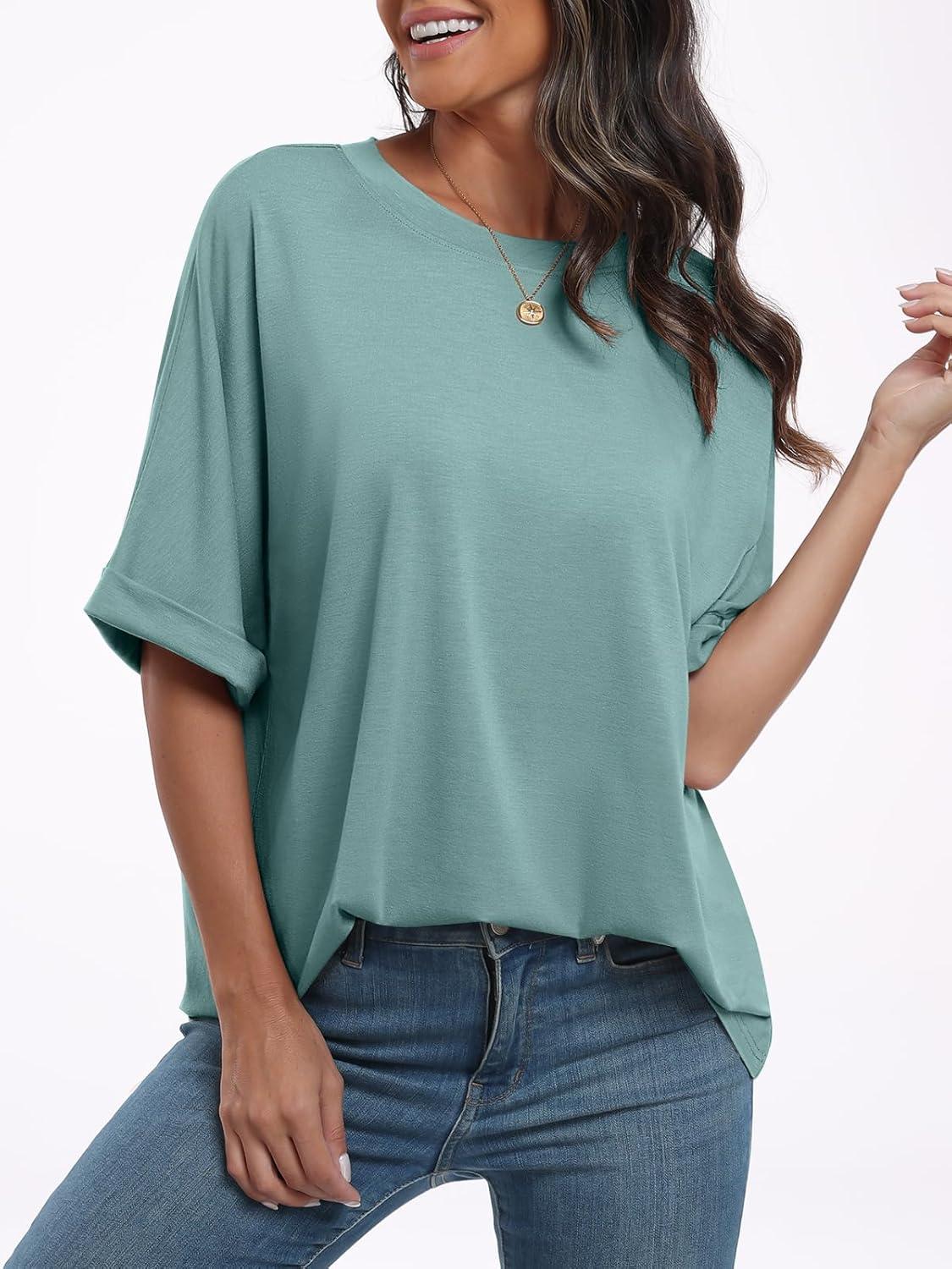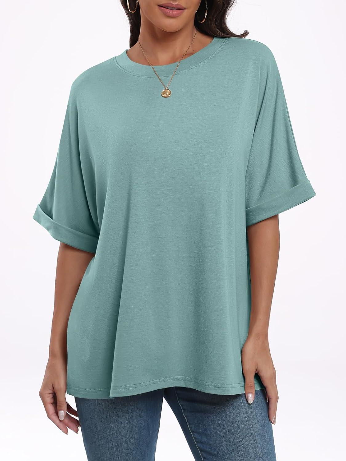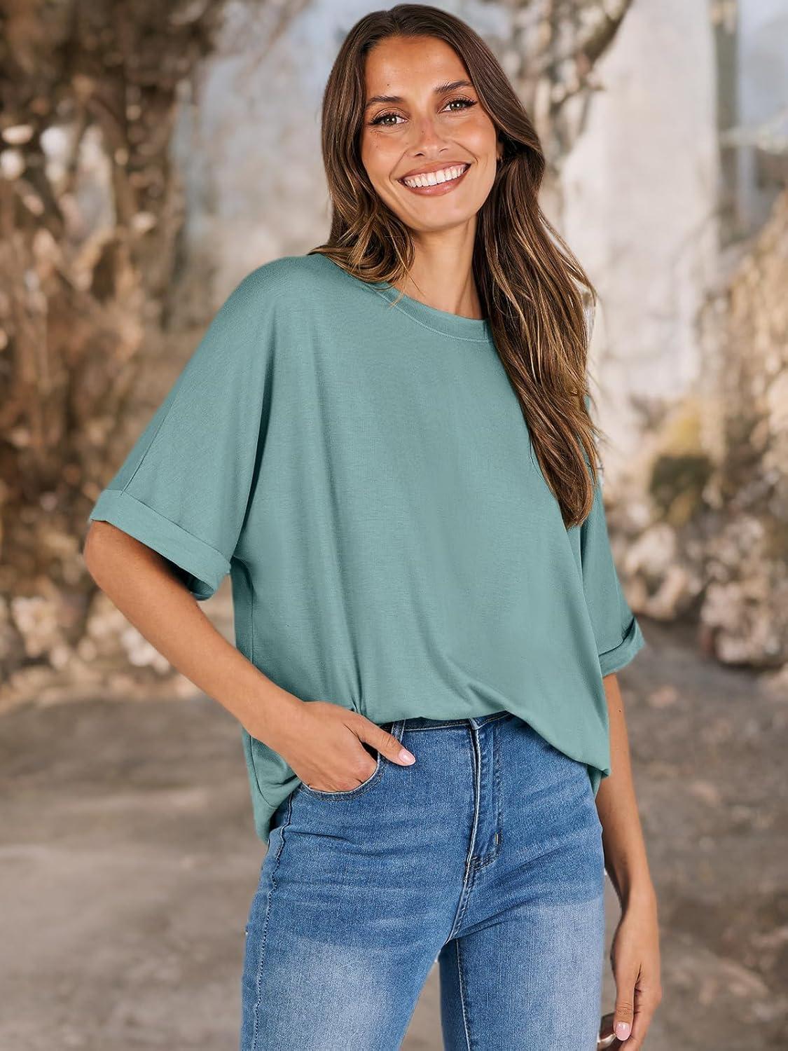 ANRABESS Womens Tops Oversized T Shirts Short Sleeve Crewneck Summer Casual Loose Basic Tee Shirt 2026 Trendy Fashion Clothes(Cadet Blue)