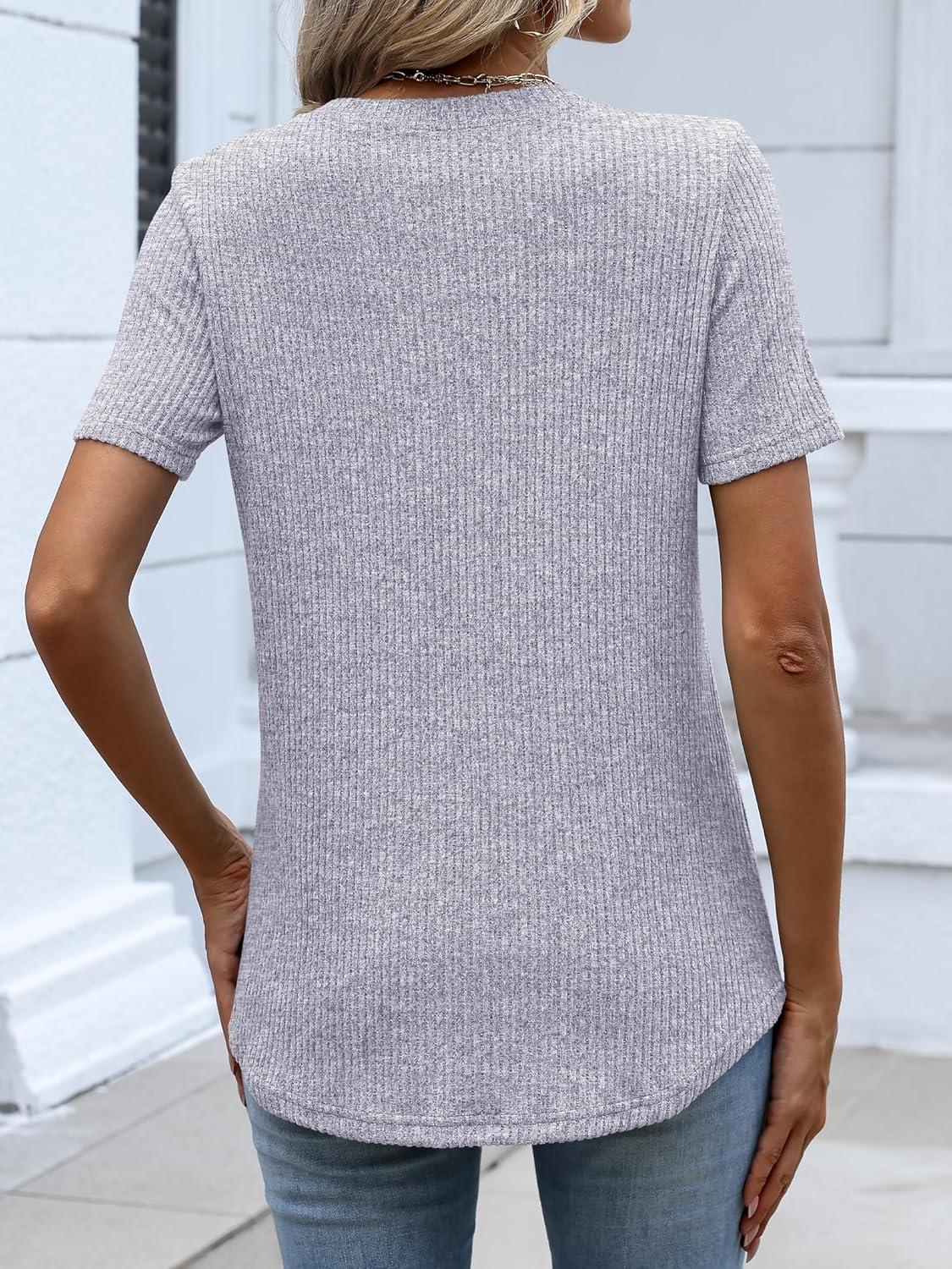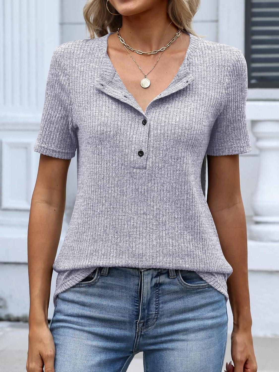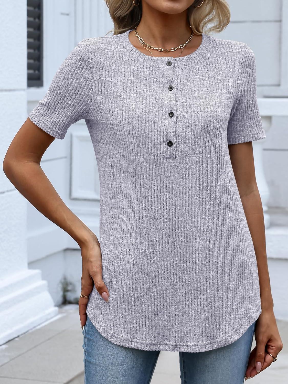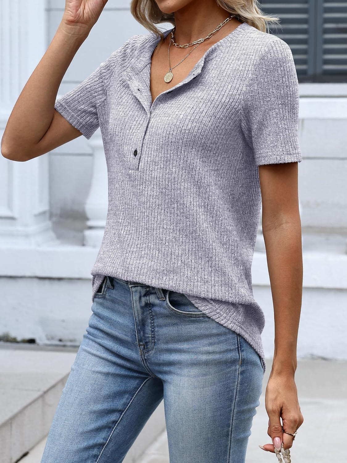 ANRABESS Womens Tops Short Sleeve Henley Shirts Dressy Casual Blouse Summer Cute Tshirt 2026 Spring Lightweight Tunic Sweater(Grey)
