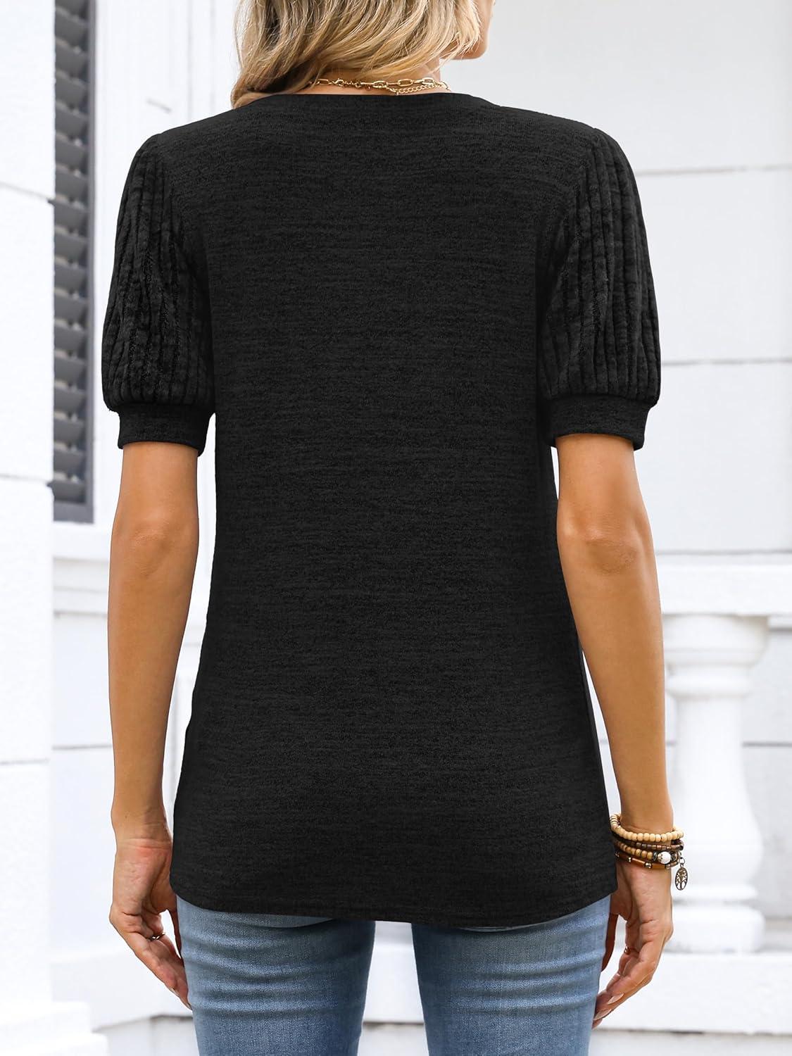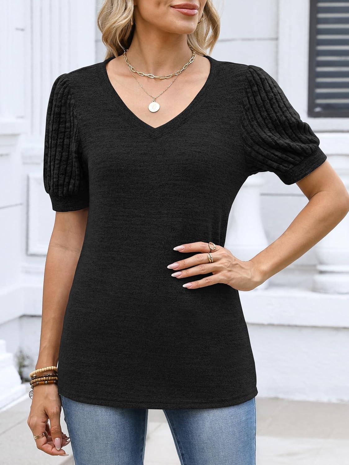 ANRABESS Womens Tops Short Sleeve Sweaters Dressy Casual V Neck Summer Tunic Blouses Cute Work Shirts 2026 Trendy Clothes(Black)