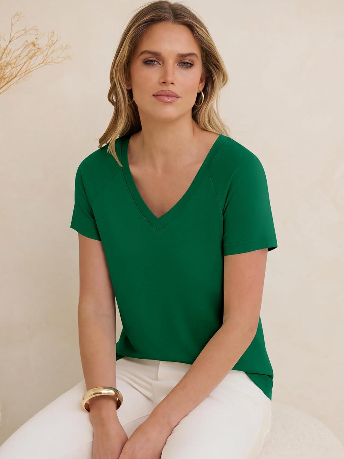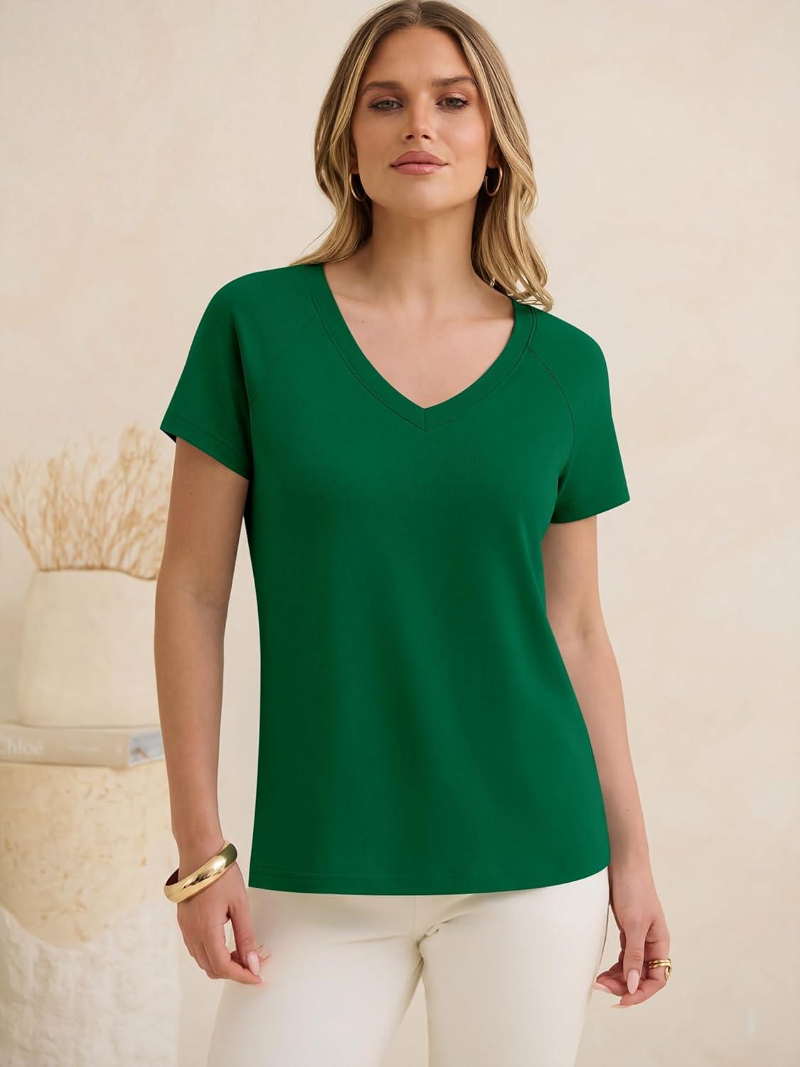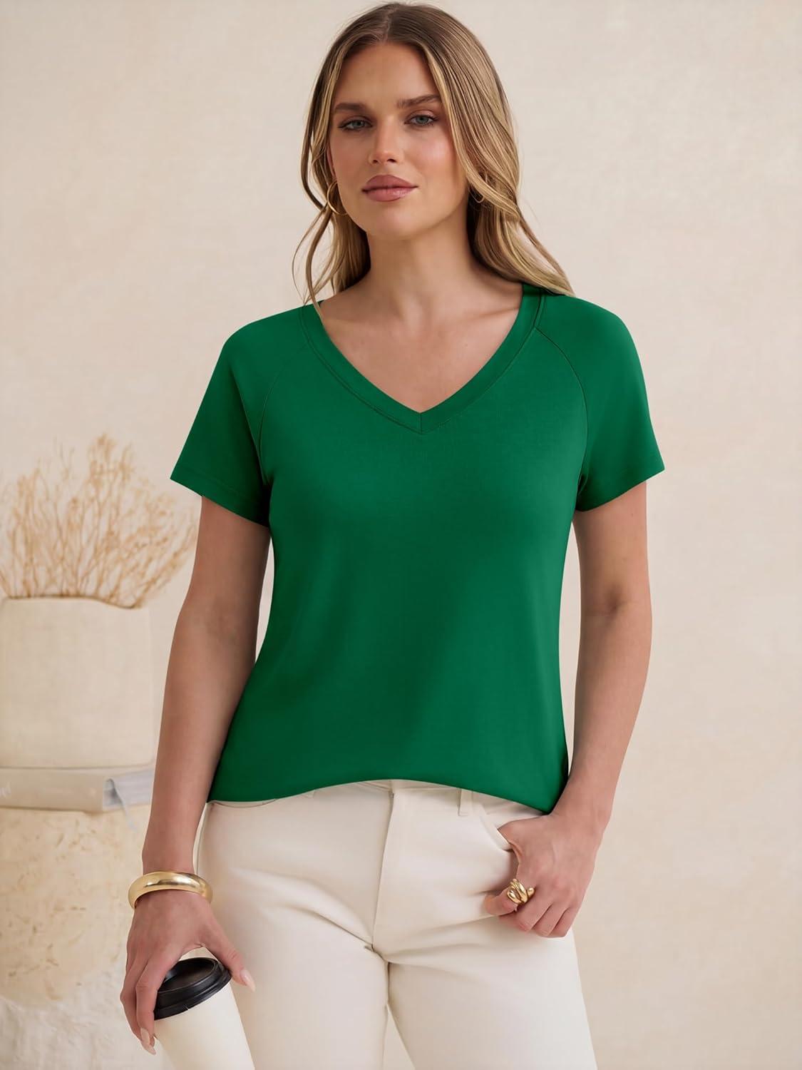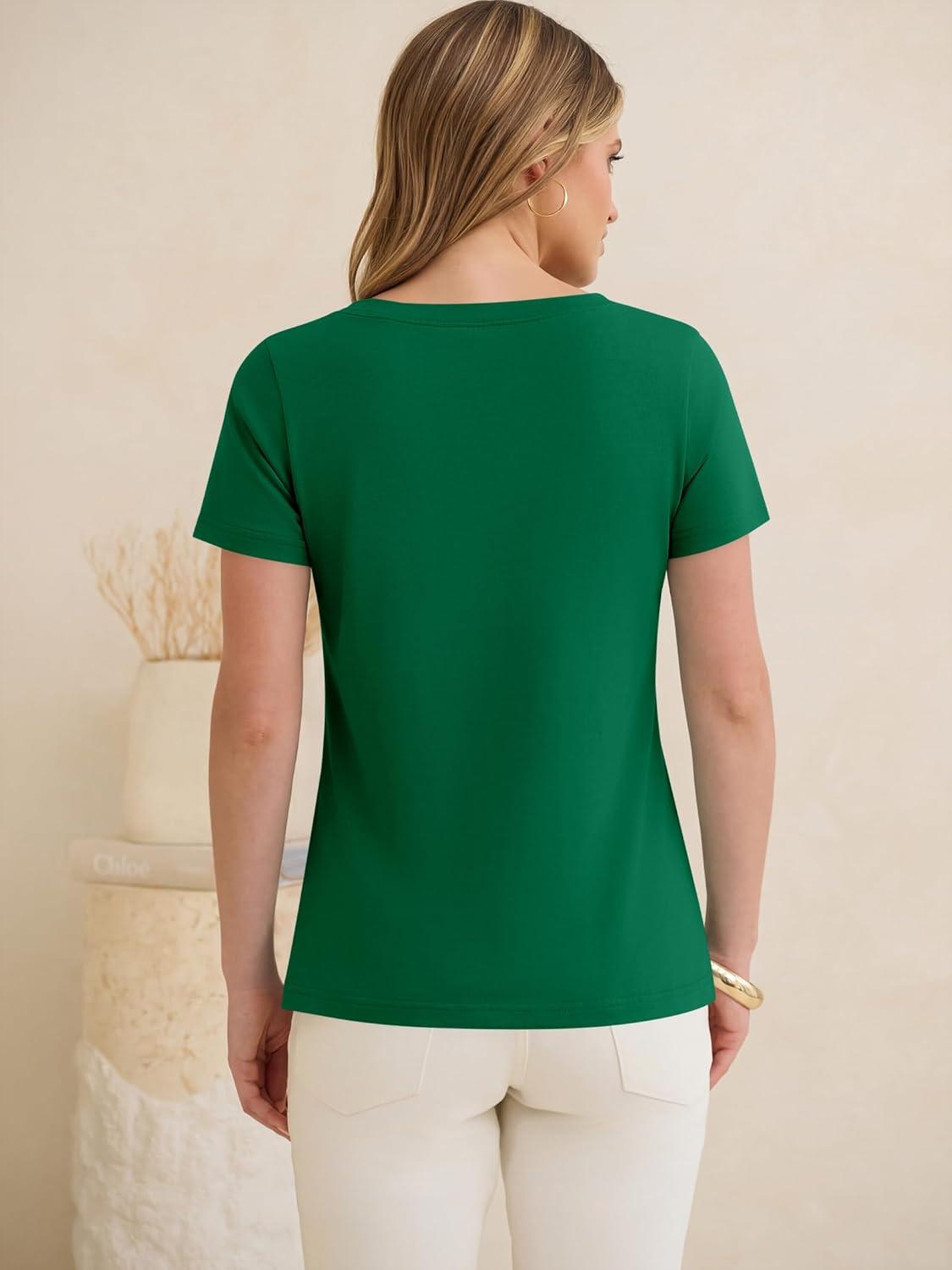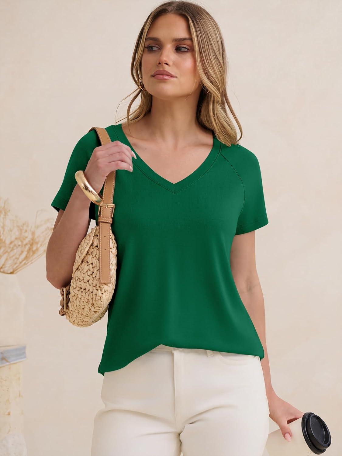 ANRABESS Womens Tops Short Sleeve V Neck Shirts Summer Basic Tee Trendy Cute Tshirts 2026 Spring Casual Outfits(Dark Green)