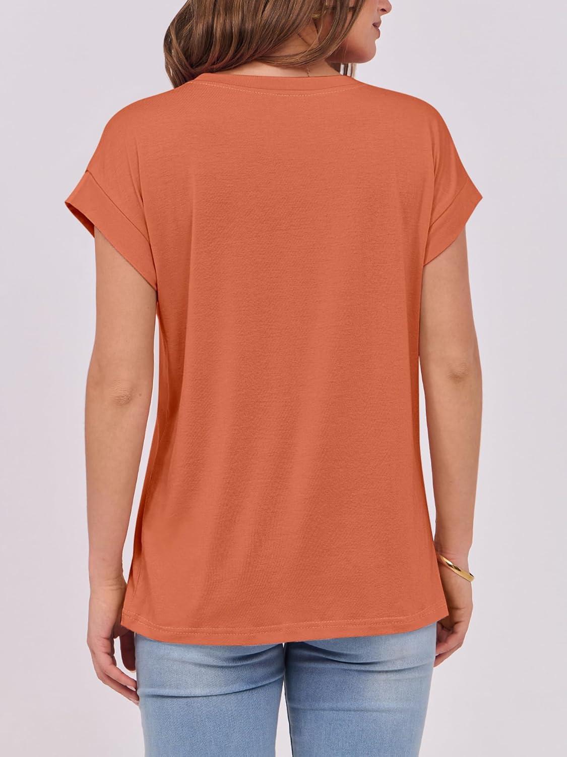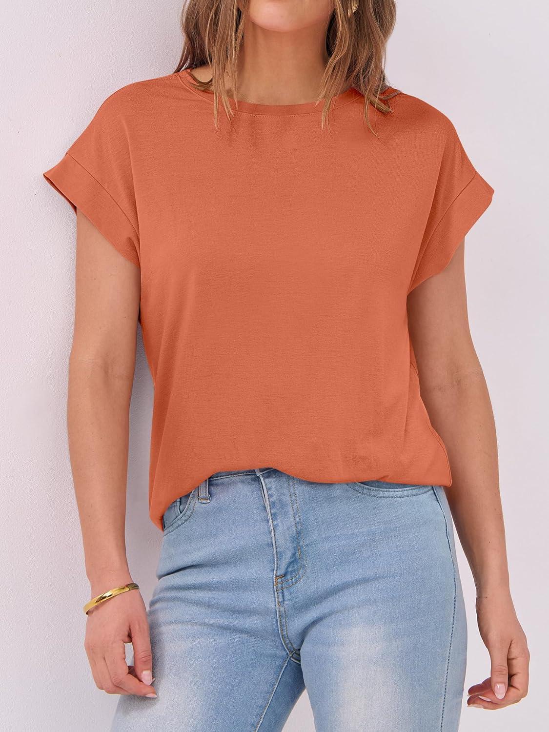ANRABESS Womens Tops Summer Cap Sleeve Basic Tee Shirts 2025 Trendy Loose Fit Casual Dressy Business Work Tshirts Clothes(Orange)