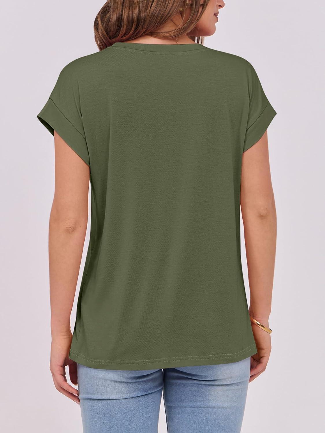 ANRABESS Womens Tops Summer Cap Sleeve Basic Tee Shirts 2026 Trendy Loose Fit Casual Dressy Business Work Tshirts Clothes(Army Green)