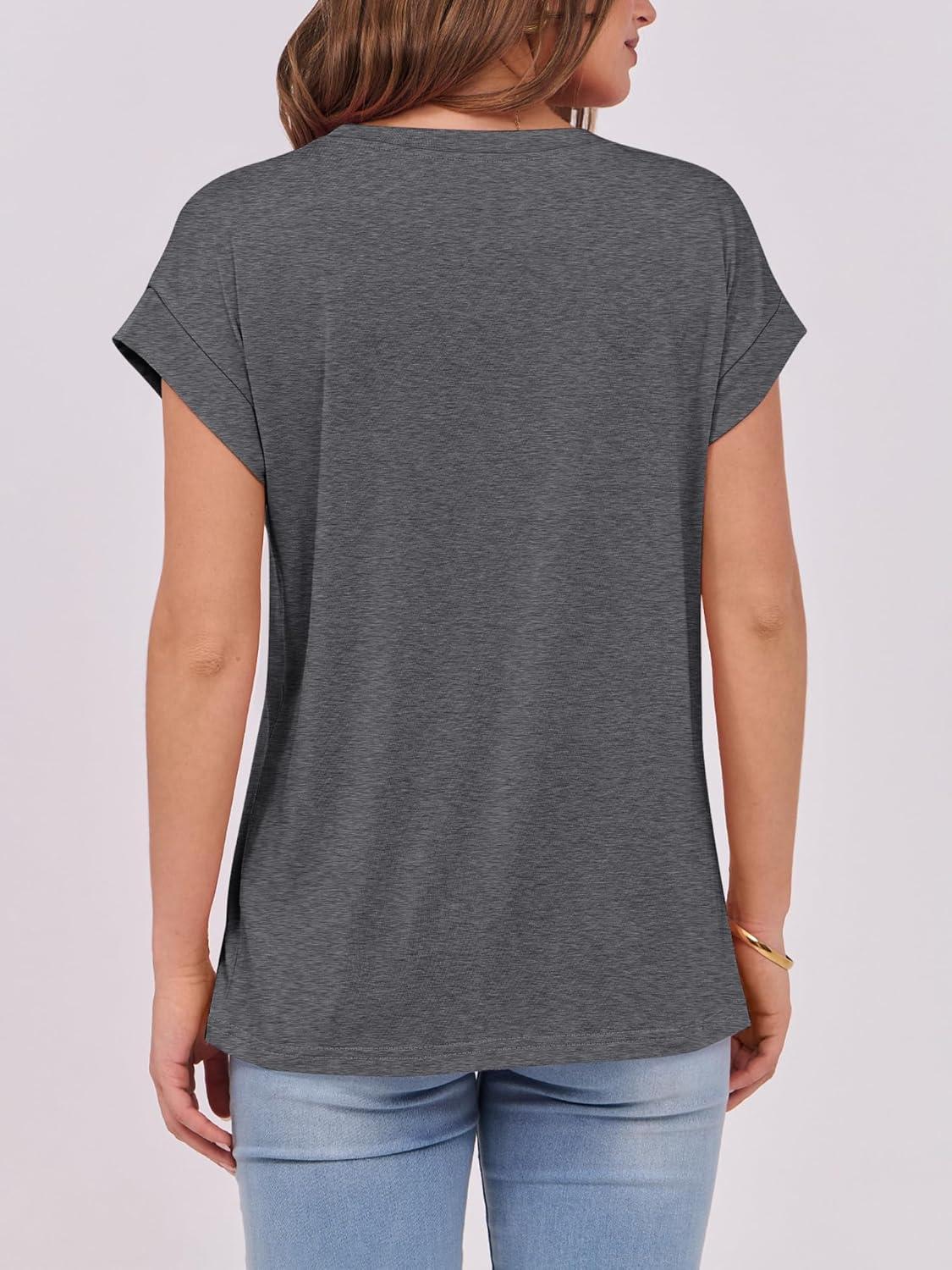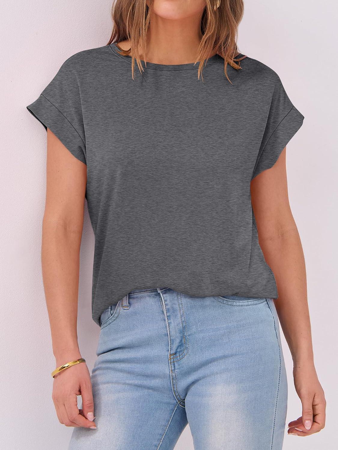 ANRABESS Womens Tops Summer Cap Sleeve Basic Tee Shirts 2026 Trendy Loose Fit Casual Dressy Business Work Tshirts Clothes(Dark Grey)