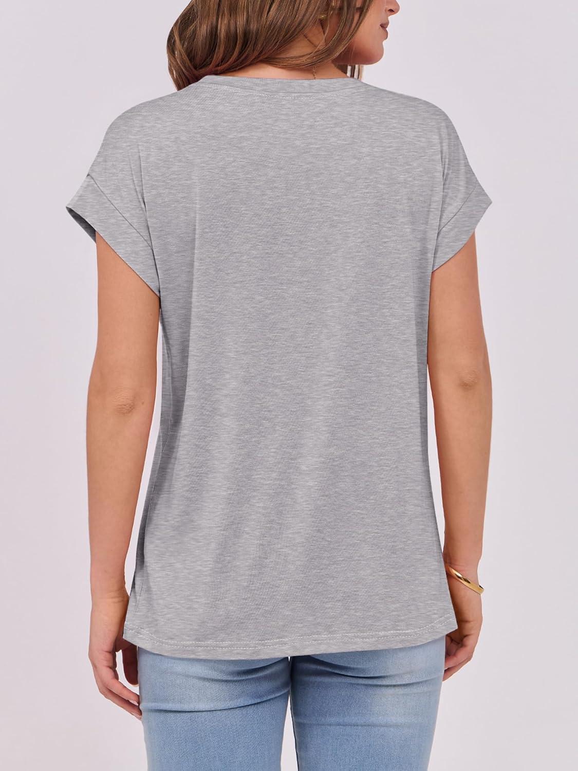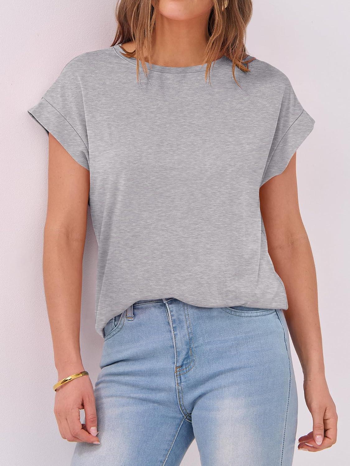 ANRABESS Womens Tops Summer Cap Sleeve Basic Tee Shirts 2026 Trendy Loose Fit Casual Dressy Business Work Tshirts Clothes(Grey)