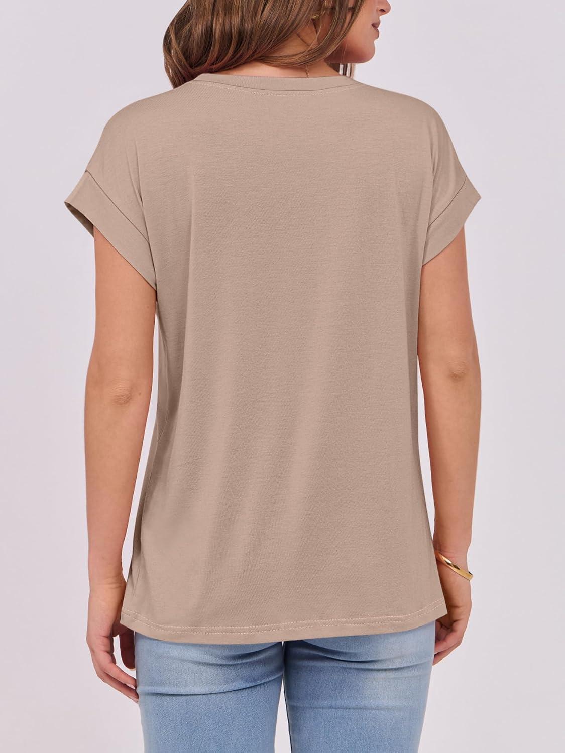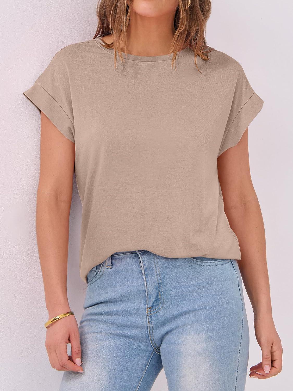 ANRABESS Womens Tops Summer Cap Sleeve Basic Tee Shirts 2026 Trendy Loose Fit Casual Dressy Business Work Tshirts Clothes(Khaki)