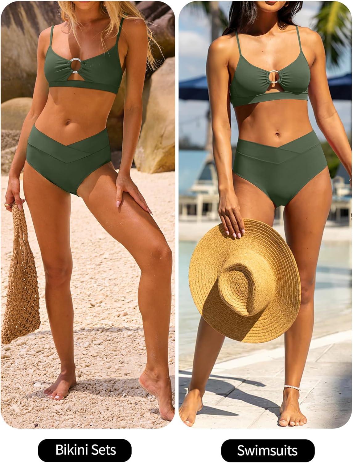 ANRABESS Women’s Triangle Bikini Sets O Ring Cut Out Two Piece Swimsuit Mid Rise Cute 2026 Summer Beach Cheeky Bathing Suits(Army Green)