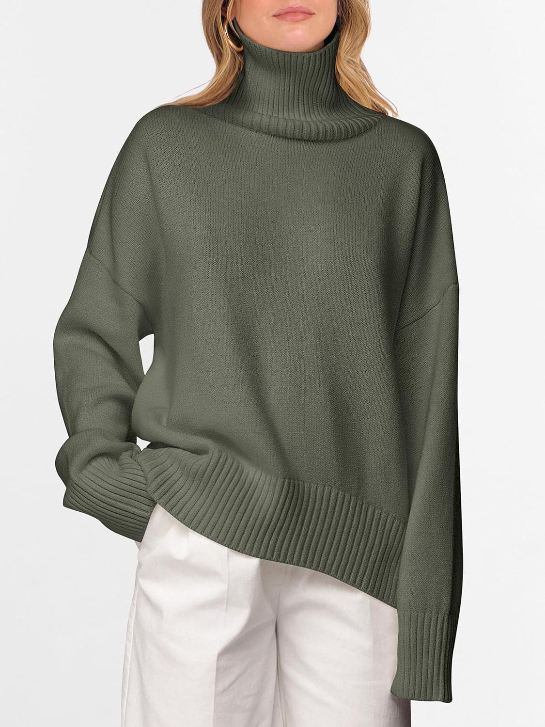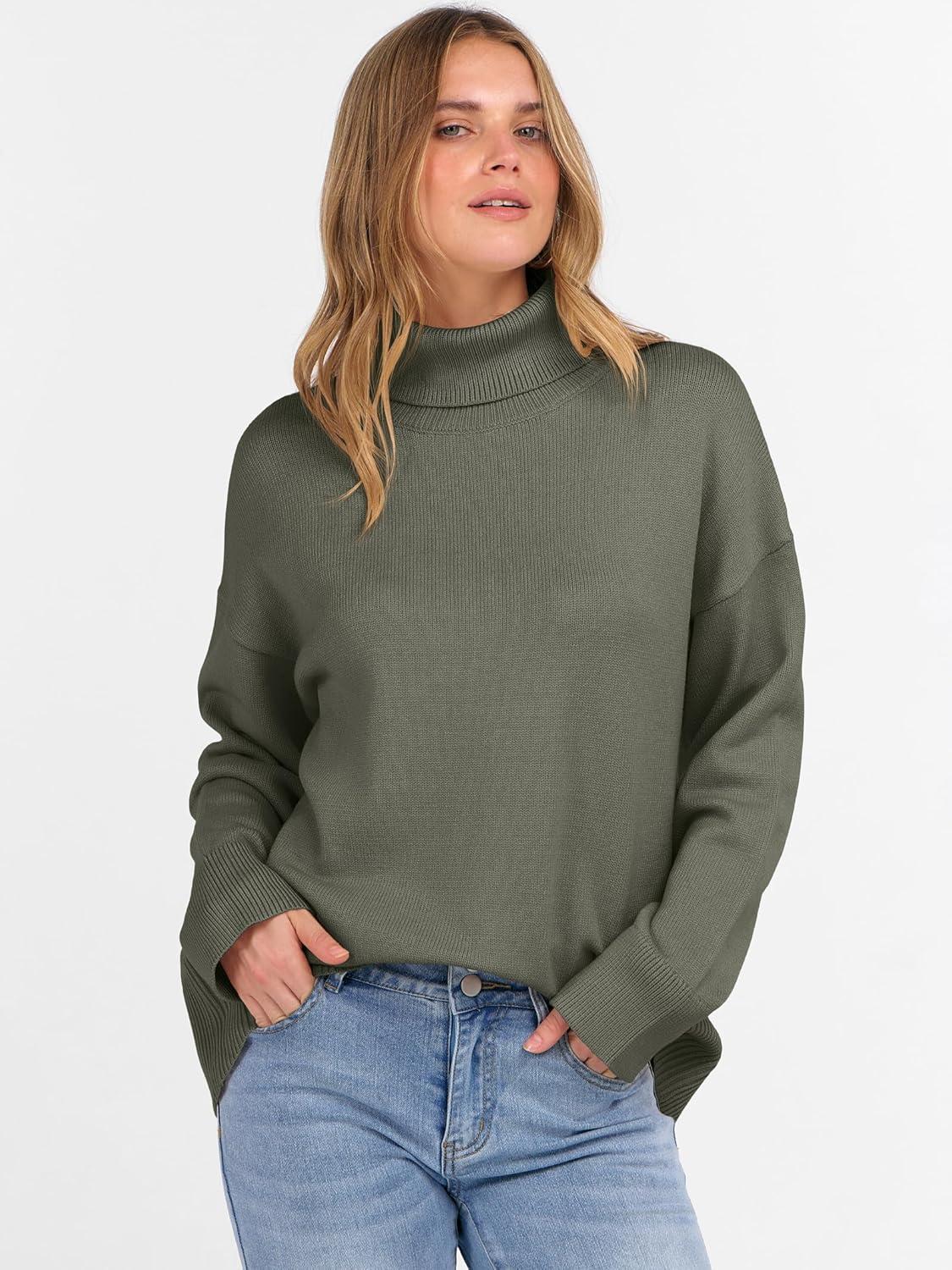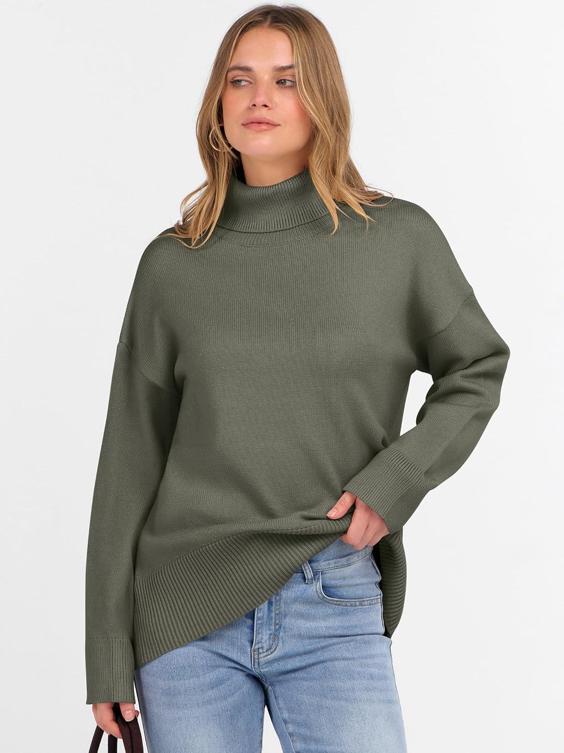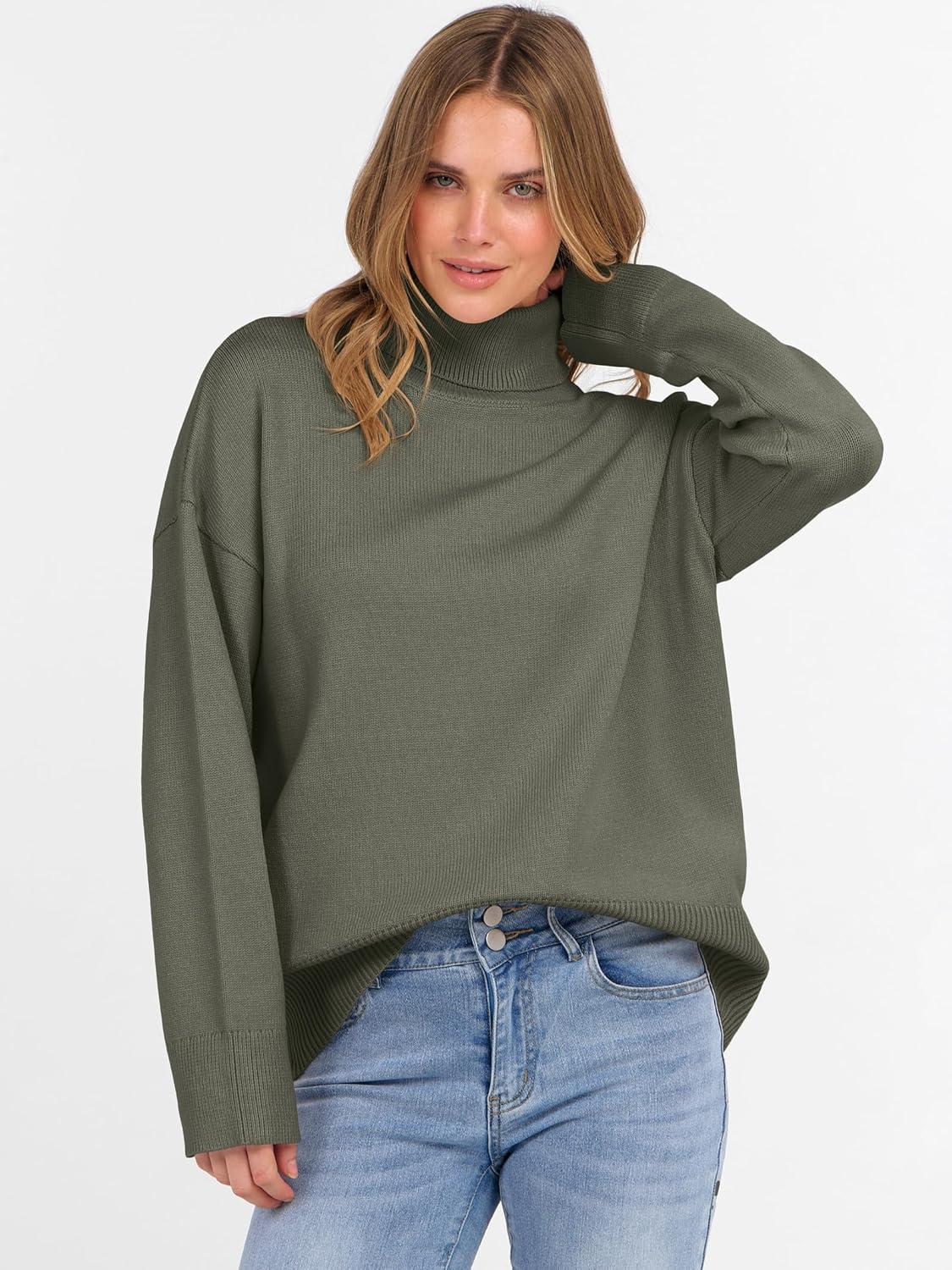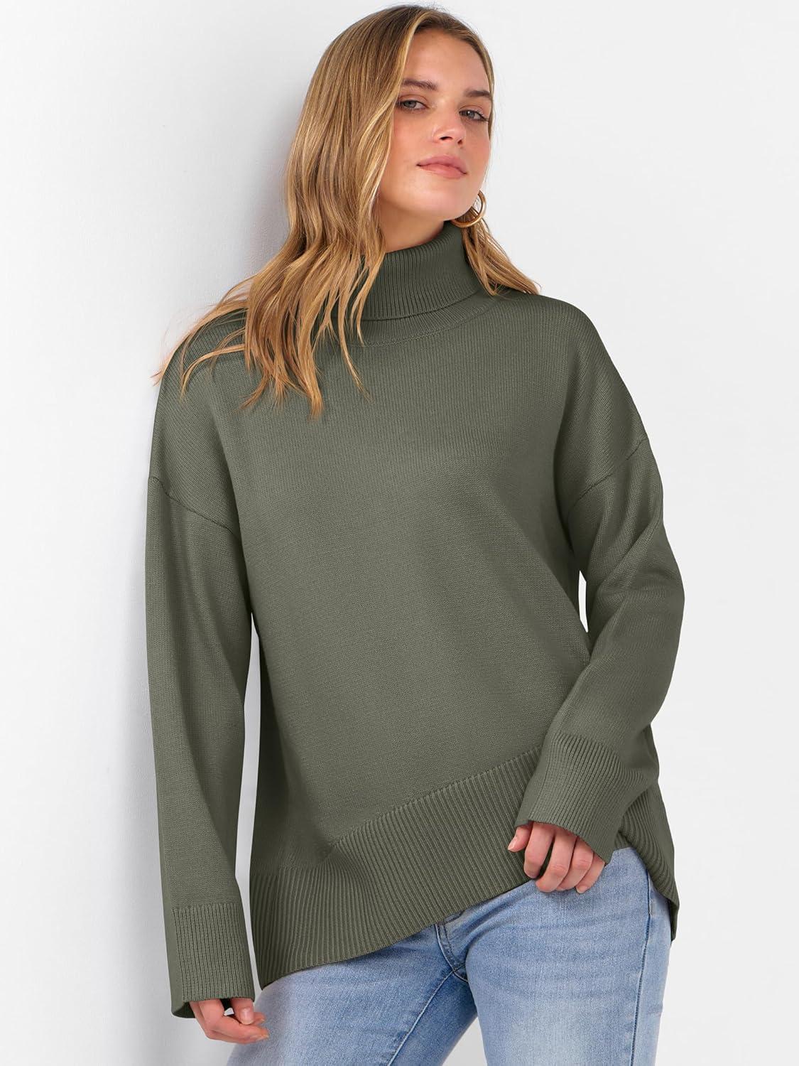 imageANRABESS Womens Turtleneck Sweaters Oversized Chunky Long Sleeve Knit High Low Hem Pullover Top 2025 Fall Winter FashionOlive Green