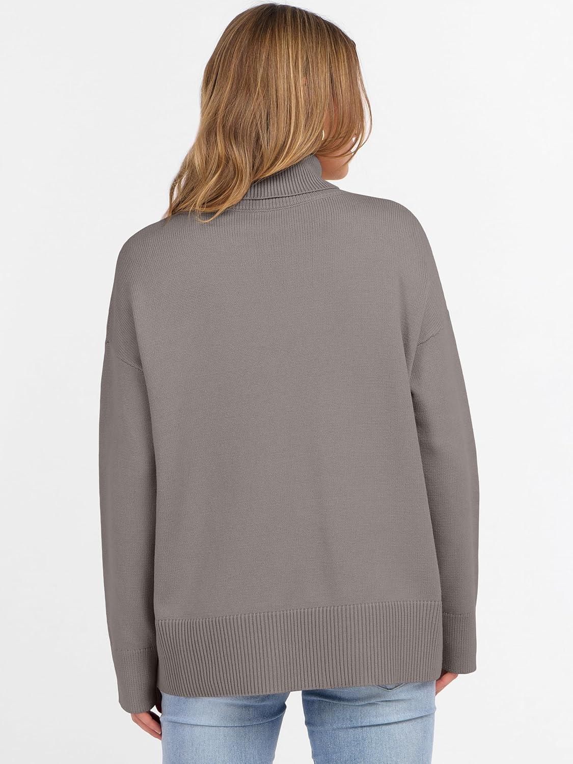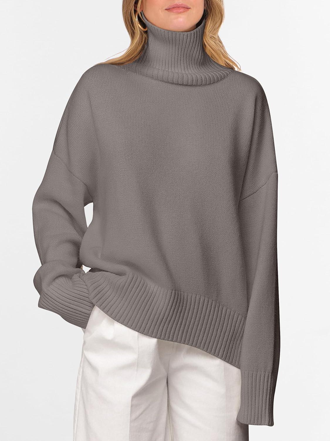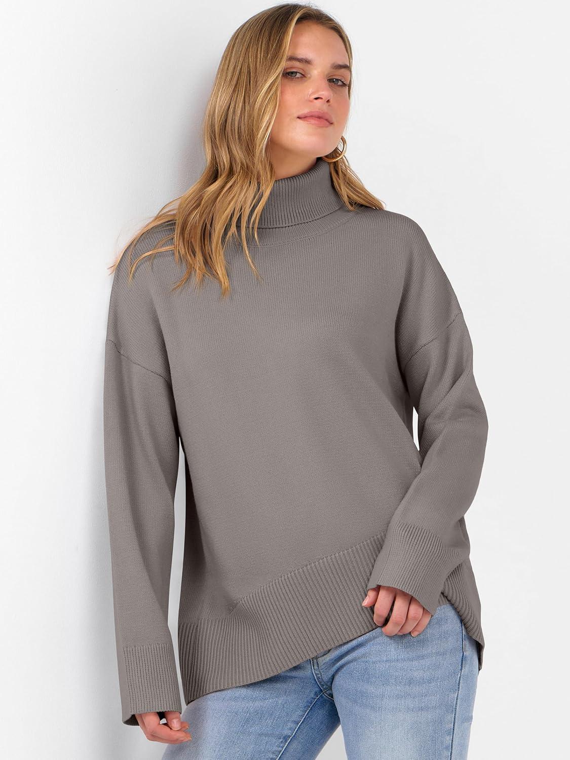 ANRABESS Womens Turtleneck Sweaters Oversized Chunky Long Sleeve Knit High Low Hem Pullover Top 2026 Fall Winter Fashion(Grey Khaki)