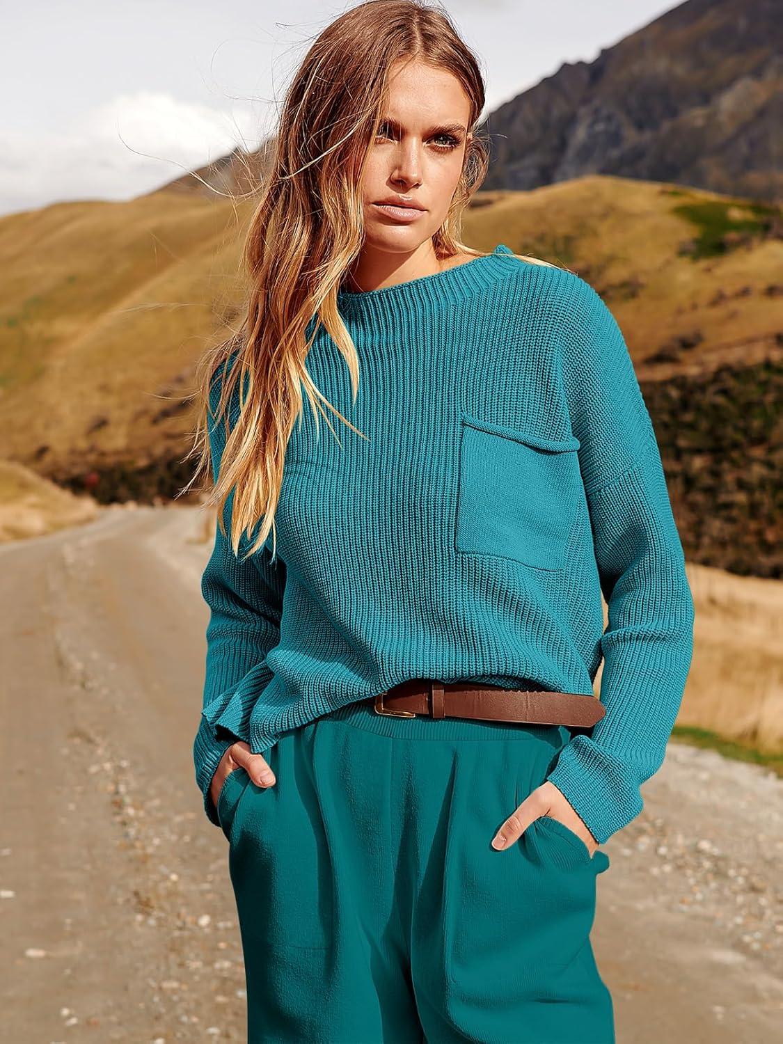 ANRABESS Women's Two Piece Outfits Long Sleeve Knit Top Fall Sweater Set Oversized Pants Tracksuit Lounge Sets(Deep Green)