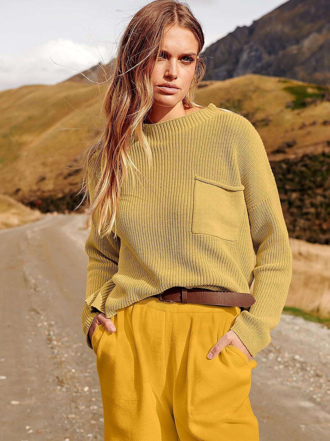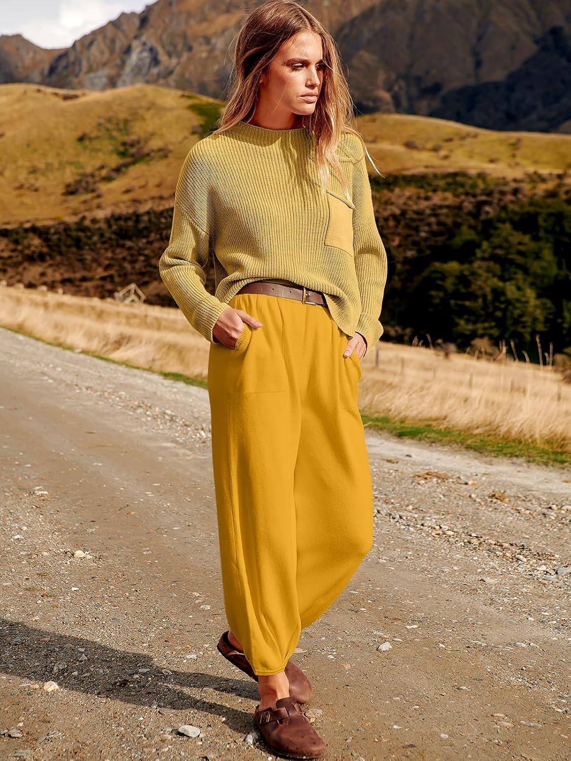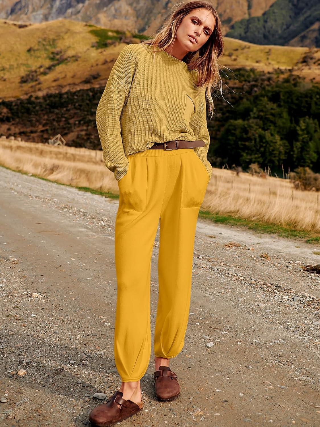 ANRABESS Women's Two Piece Outfits Long Sleeve Knit Top Fall Sweater Set Oversized Pants Tracksuit Lounge Sets(Yellow)