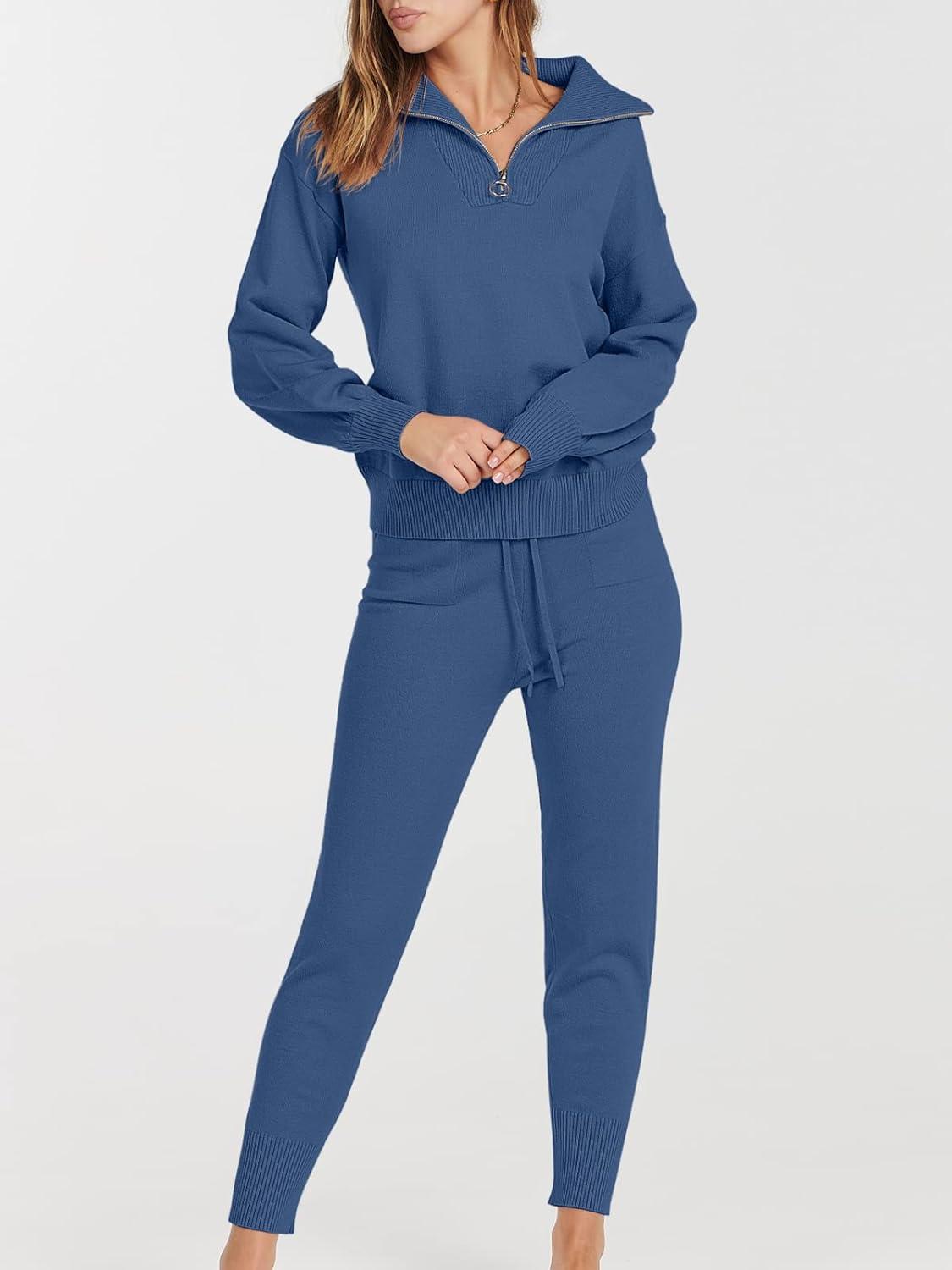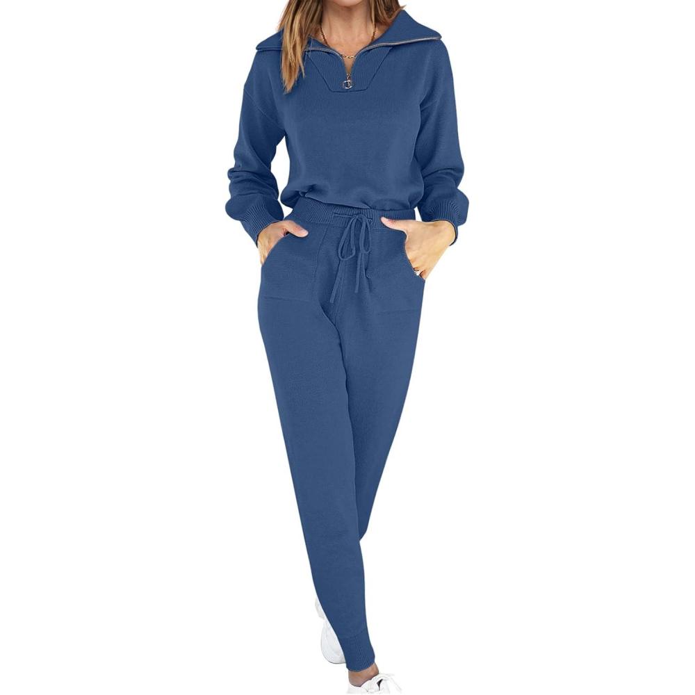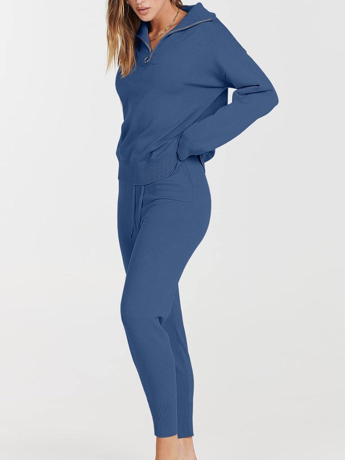 ANRABESS Women's Two Piece Outfits Sweater Lounge Sets Long Sleeve Zip Up Knit Pullover Jogger Pants Tracksuit Travel Outfits(Dark Blue)