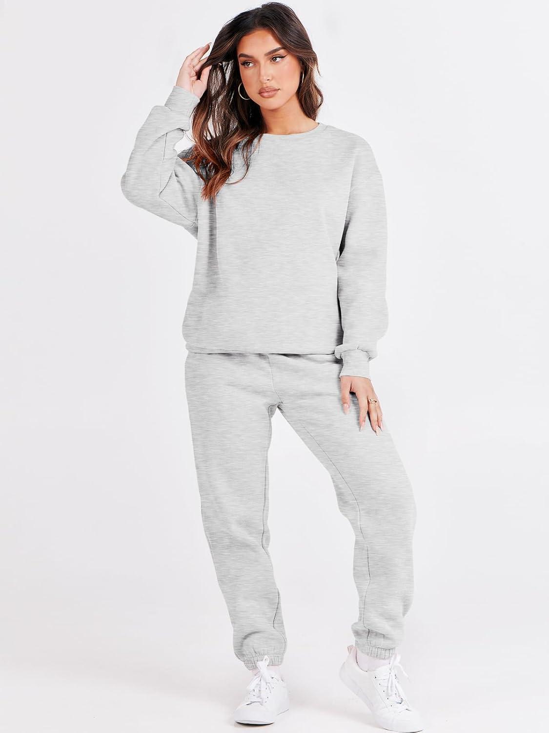 ANRABESS Women’s Two Piece Outfits Sweatsuit Lounge Set Long Sleeve Crewneck Sweatshirt Jogger Pants Tracksuit 2025 Fall Sets(Grey)