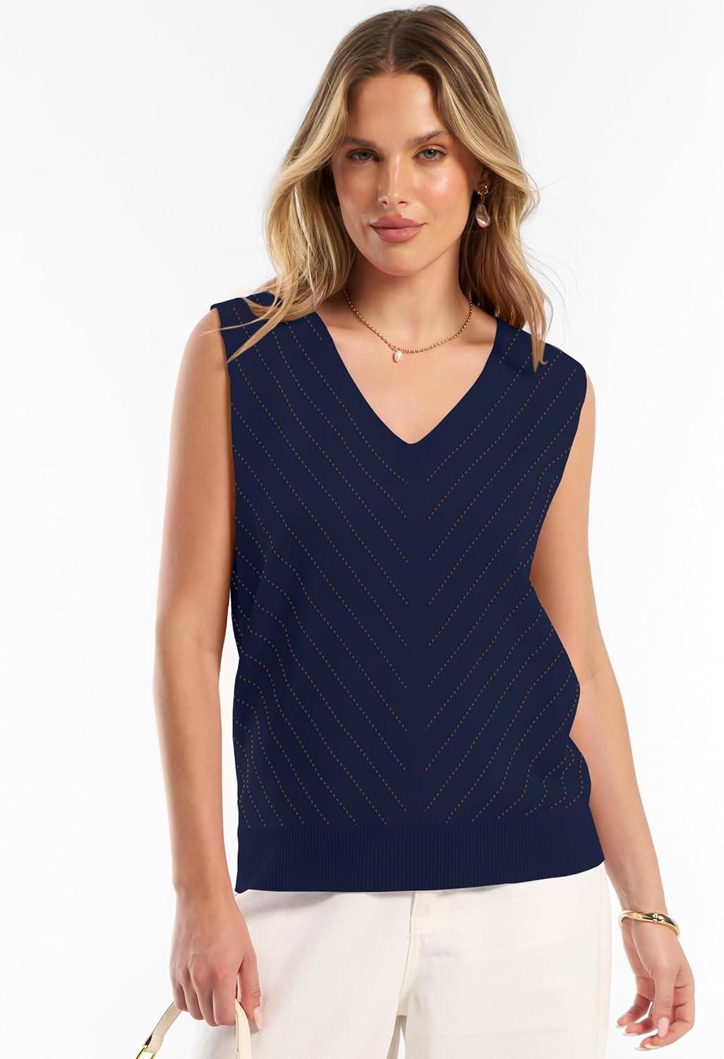 ANRABESS Womens V Neck Tank Tops Sleeveless Knit Summer Sweater Shirts 2026 Trendy Business Casual Dressy Work Outfits(Navy Blue)