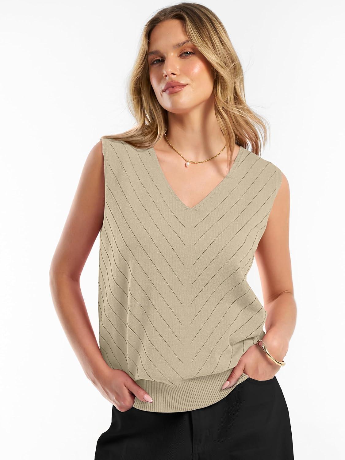 ANRABESS Womens V Neck Tank Tops Sleeveless Knit Summer Sweater Shirts 2026 Trendy Business Casual Dressy Work Outfits(Parchment Beige)