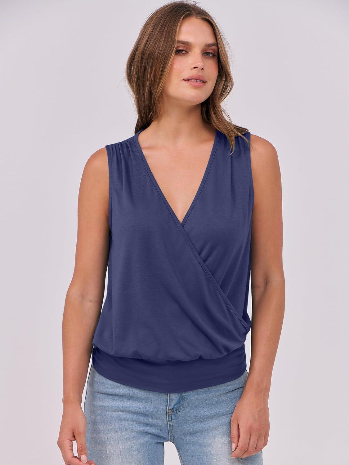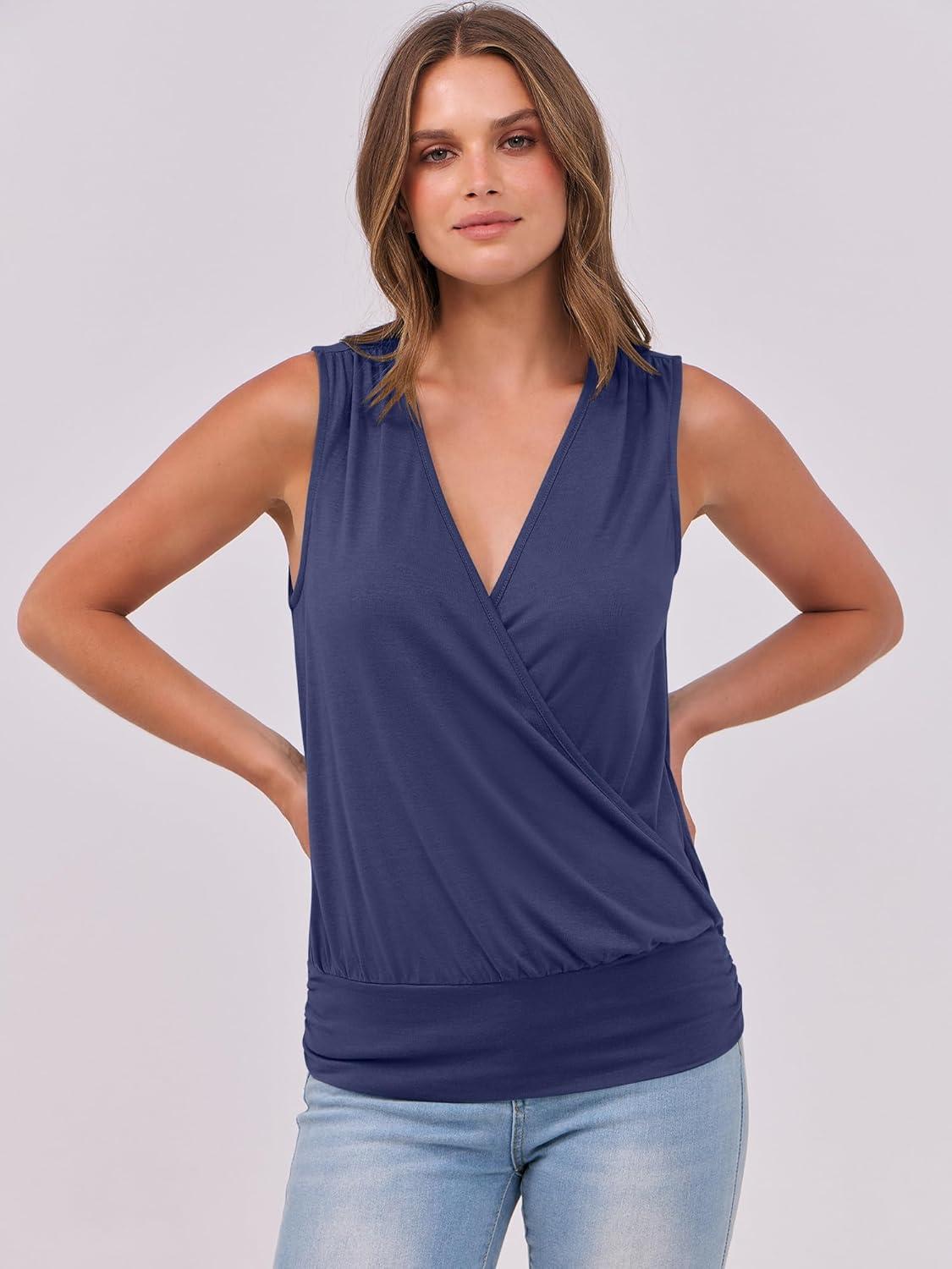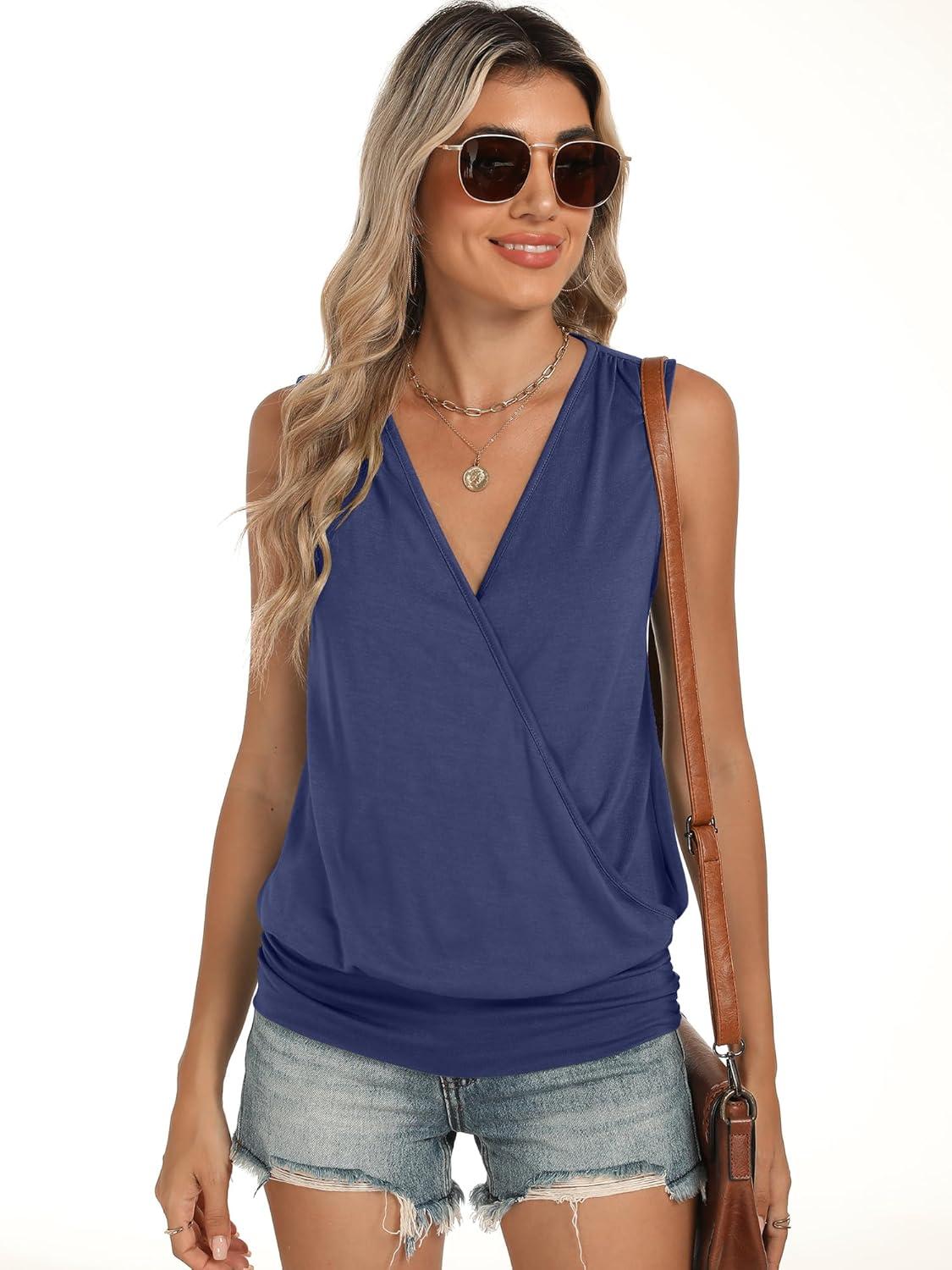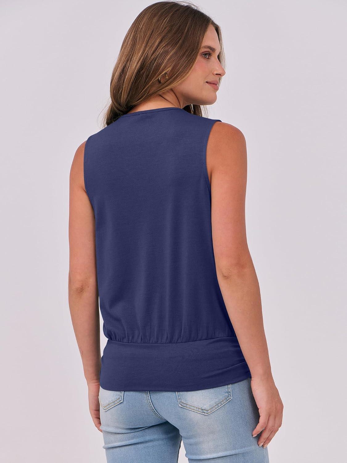 ANRABESS Womens V Neck Tank Tops Wrap Banded Hem Shirts Sleeveless Ruched Going Out Blouse 2026 Summer Fashion Clothing(Navy Blue)