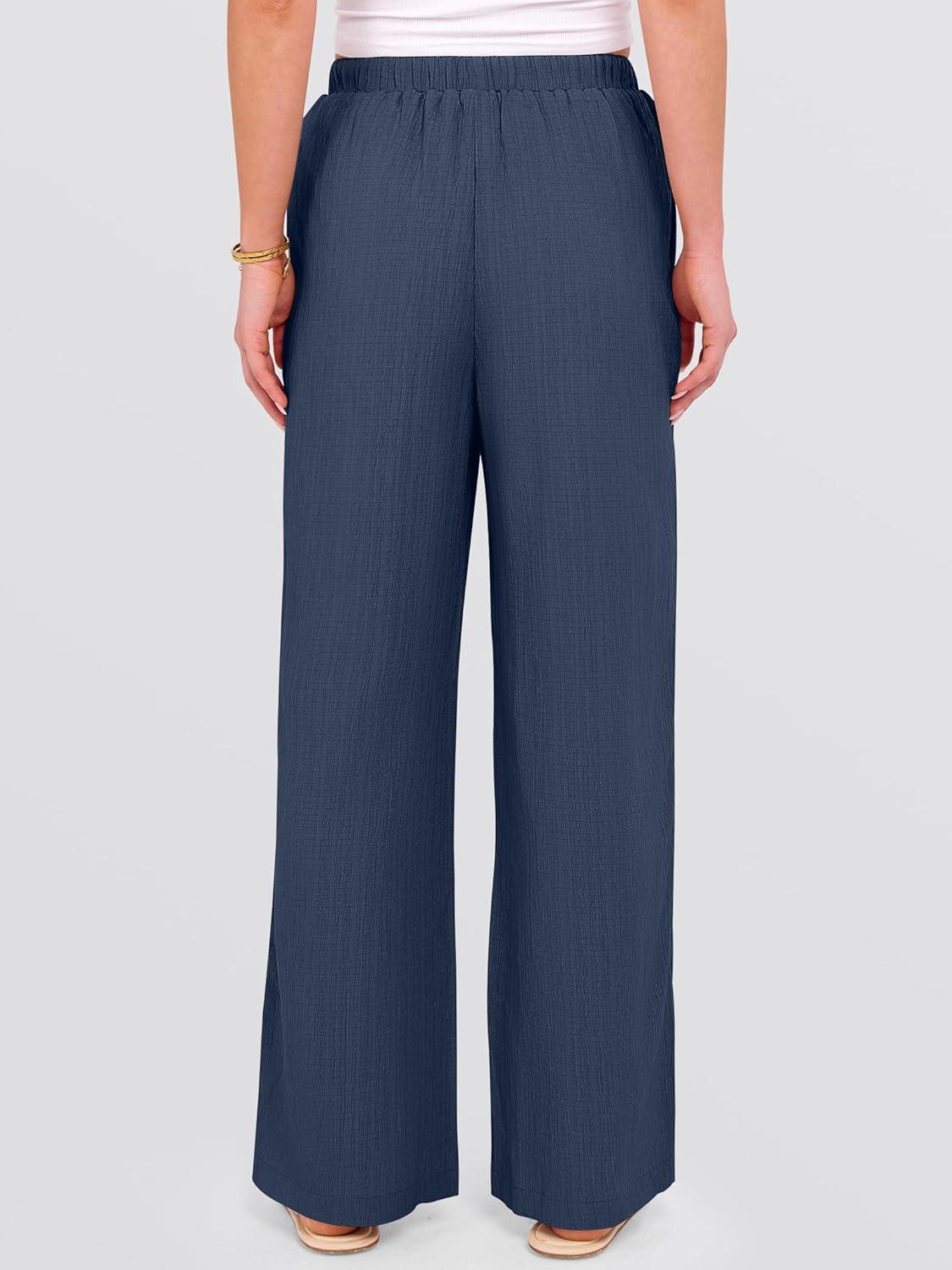 imageANRABESS Womens Wide Leg Beach Pants Elastic Waist Lightweight Casual Flowy Palazzo Lounge Trousers with PocketsNavy Blue