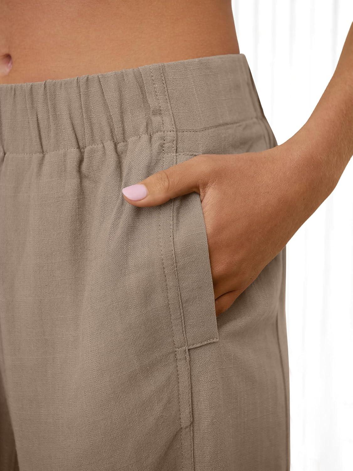 imageANRABESS Womens Wide Leg Linen Pants Summer Boho Casual Elastic Waist Long Lounge Travel Pants Trousers with PocketsLight Khaki
