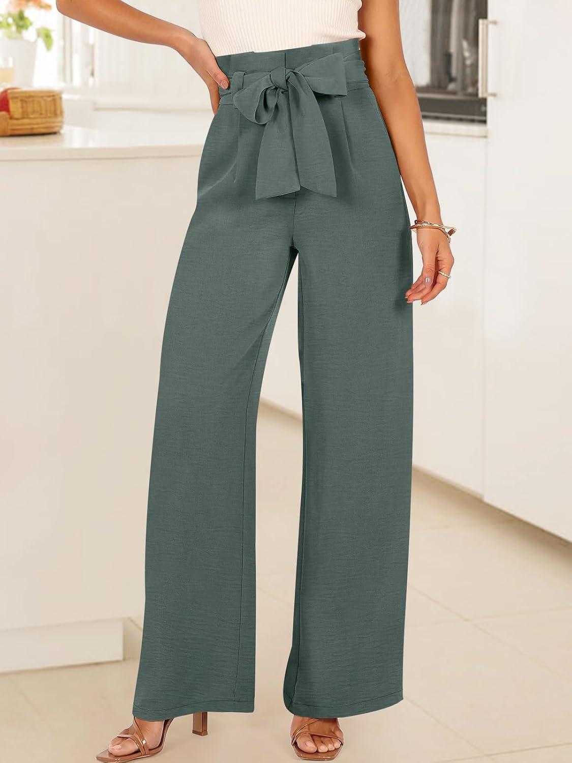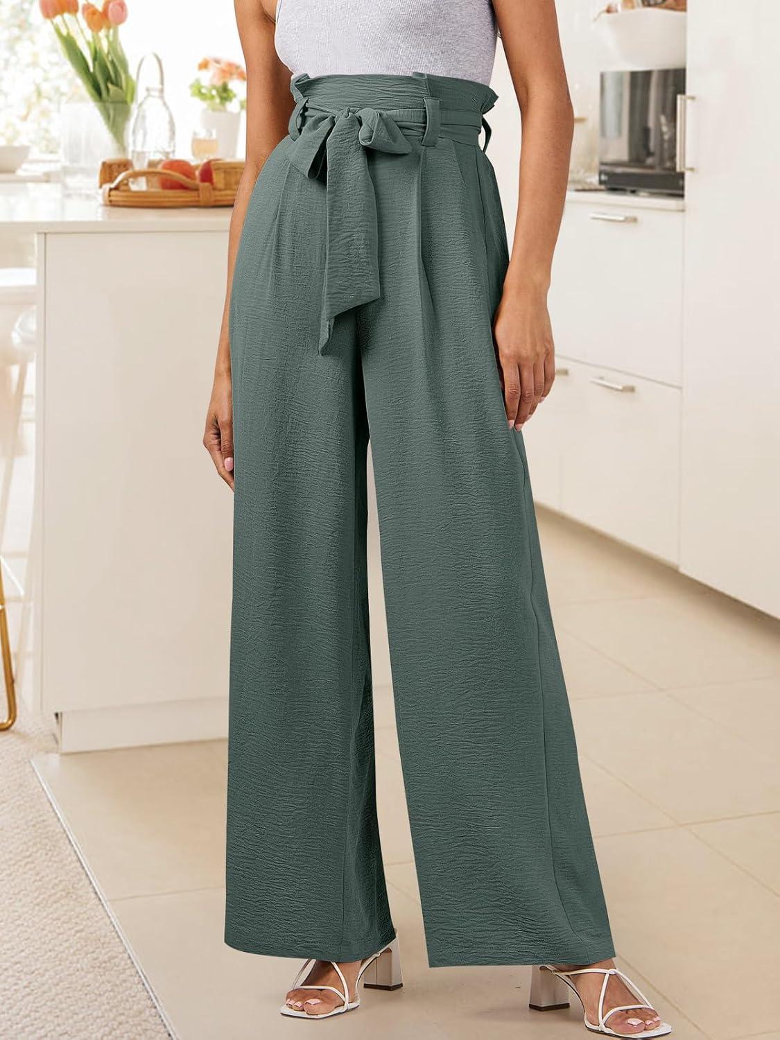 Be the first to review “ANRABESS Womens Wide Leg Palazzo Pants Belted High Waisted Business Casual Flowy Long Trousers with Pockets(Grey Green)”