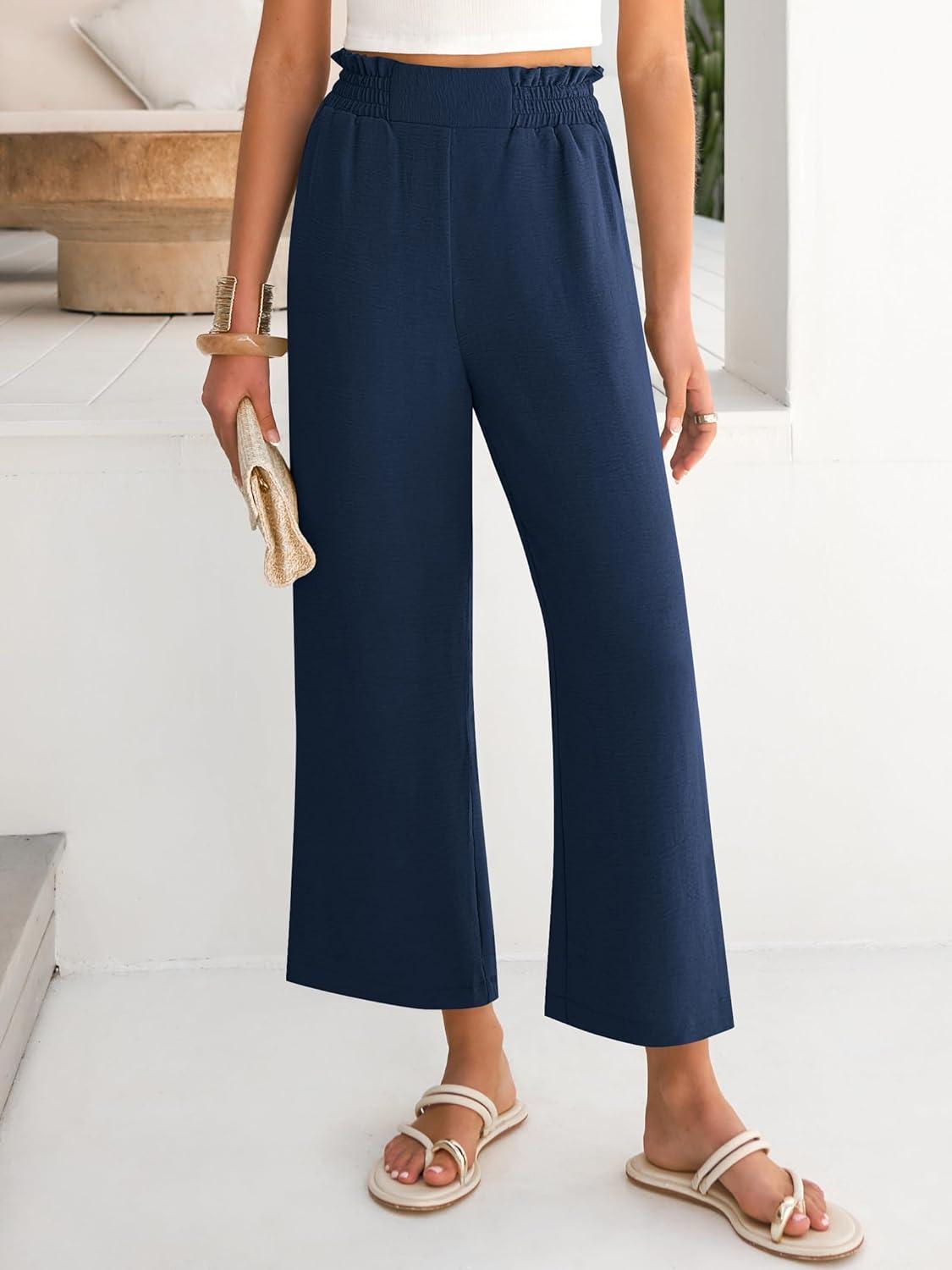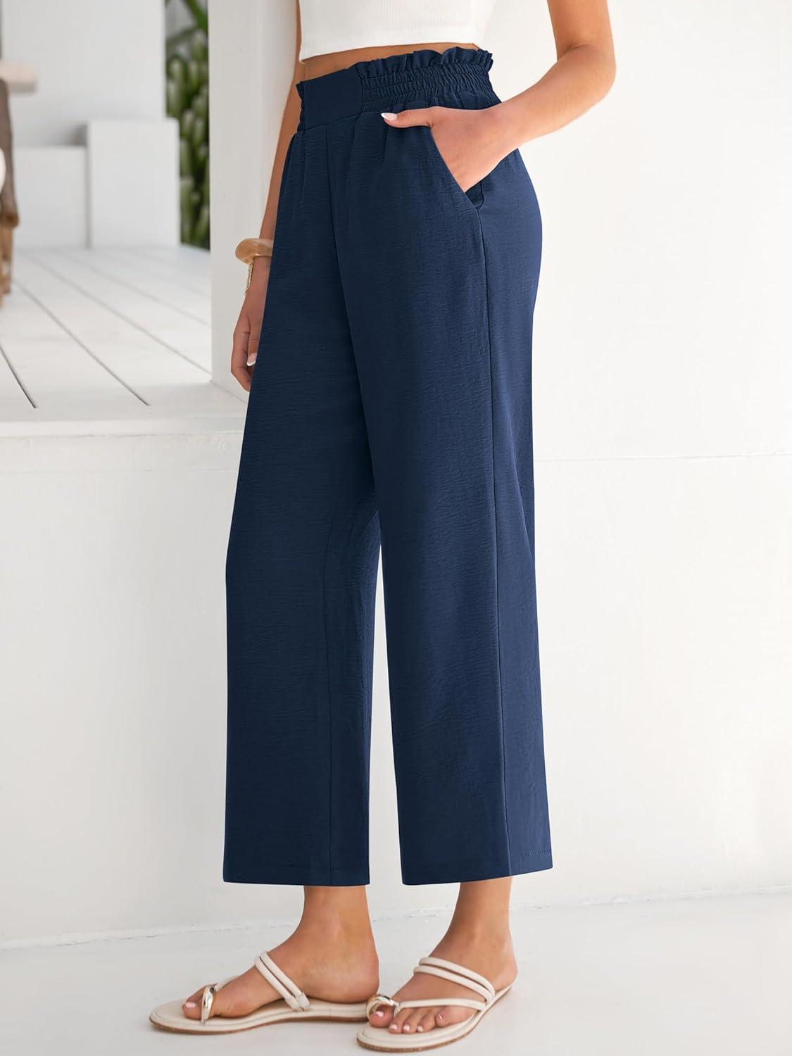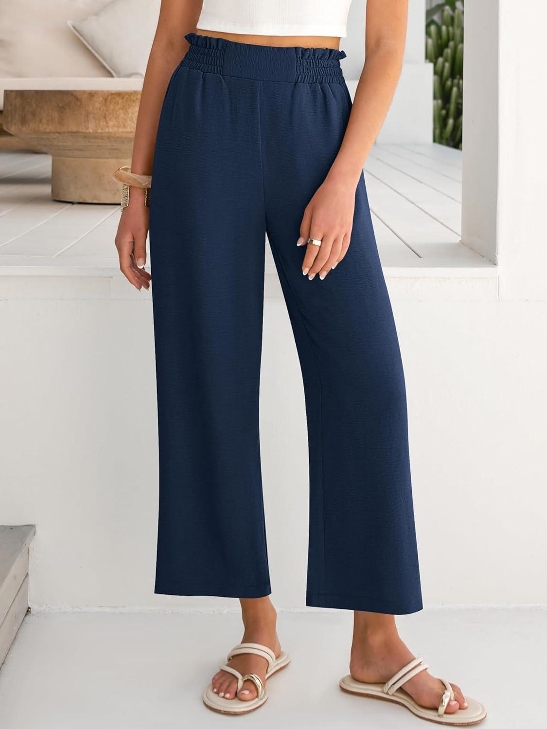 Be the first to review “ANRABESS Womens Wide Leg Palazzo Pants Summer Beach High Waisted Cropped Flowy Pants 2026 Work Casual Trousers with Pockets(Navy Blue)” Cancel reply