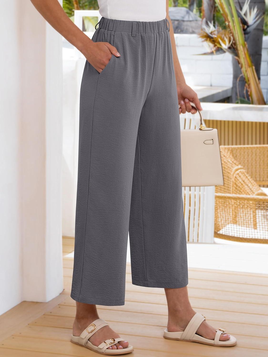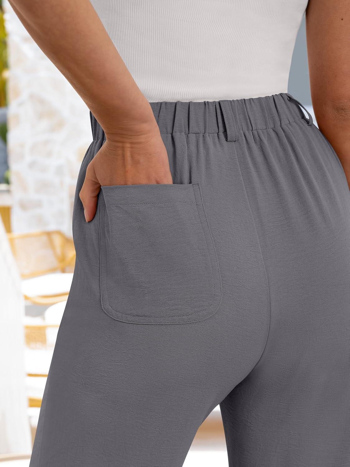 ANRABESS Womens Wide Leg Pants Summer Lounge Elastic Waist Palazzo Pants Lightweight Beach Vacation Trousers with Pockets(Dark Gray)